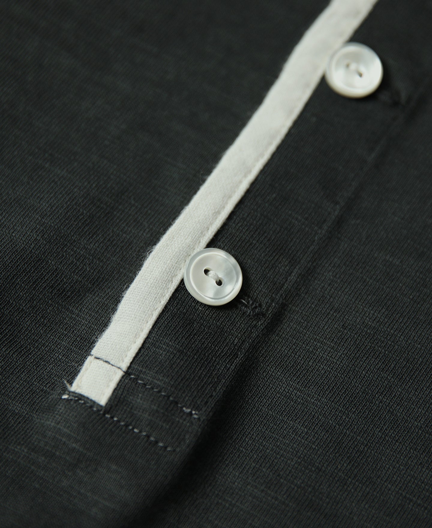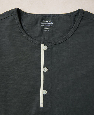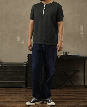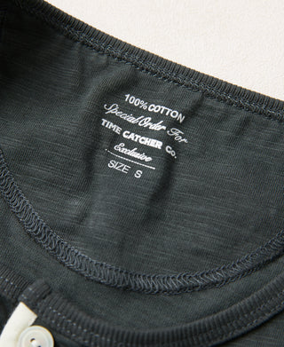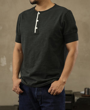 1900s 9.8 oz Slub Cotton Henley T-Shirt - Vintage Black