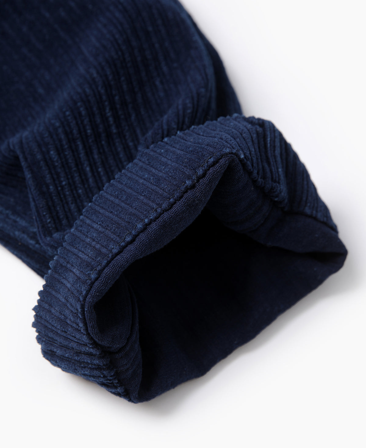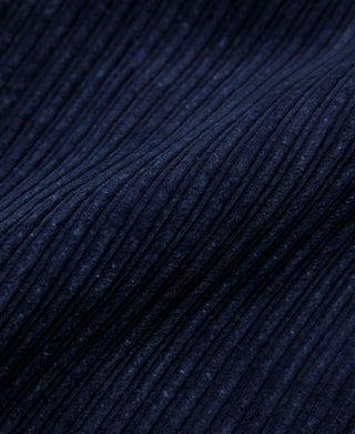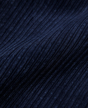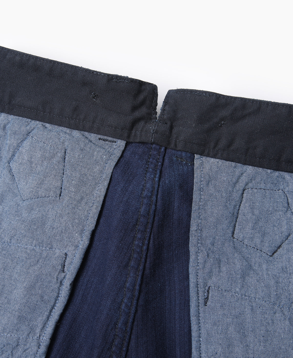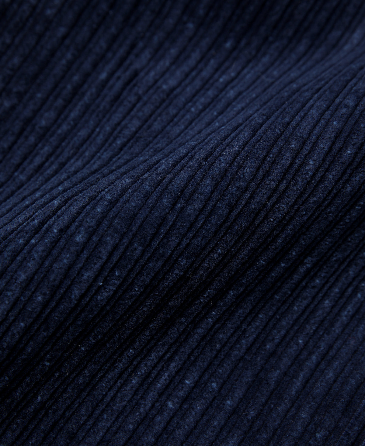 - Shell: 100% cotton, indigo-dyed thick and thin stripes corduroy fabric. Waist lining: 100% cotton, high-density cotton twill fabric. Pocket cloth: High-density chambray cloth.