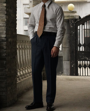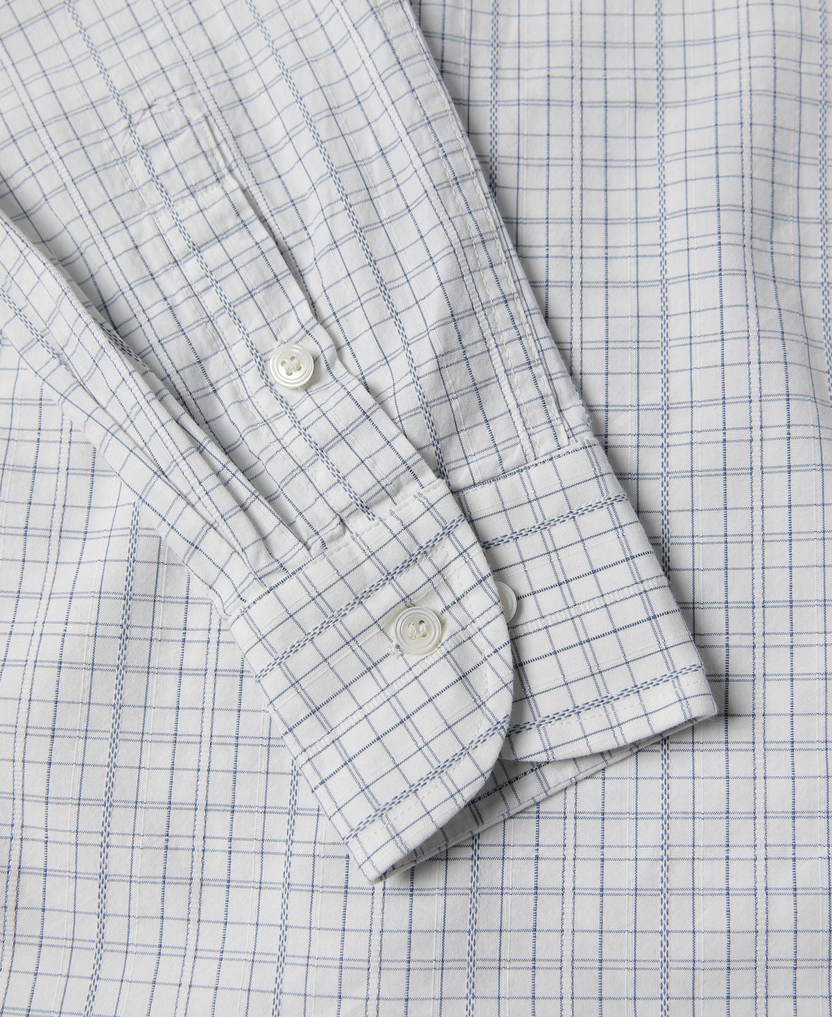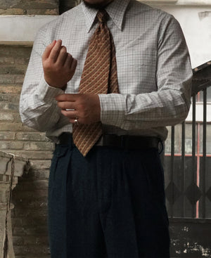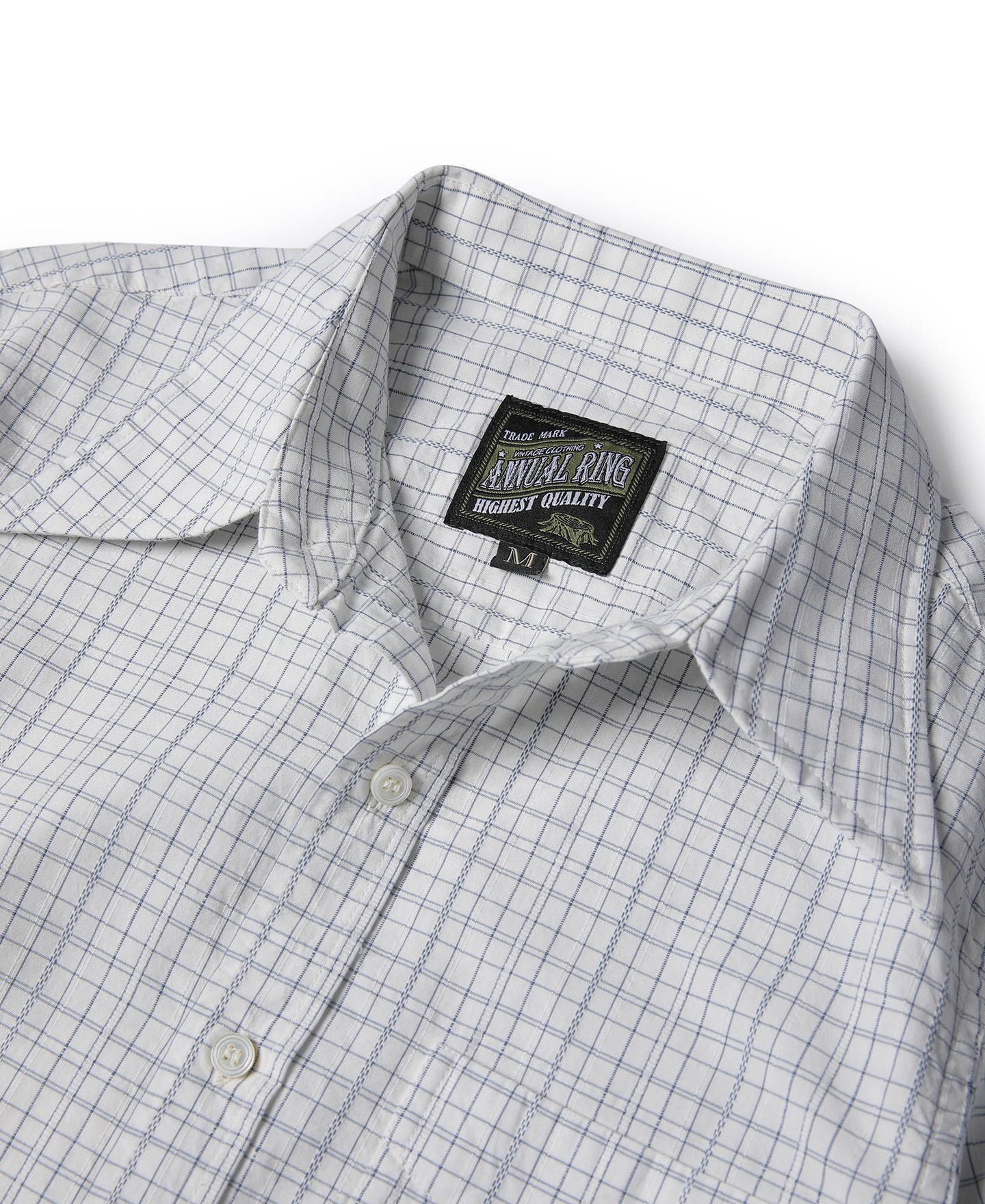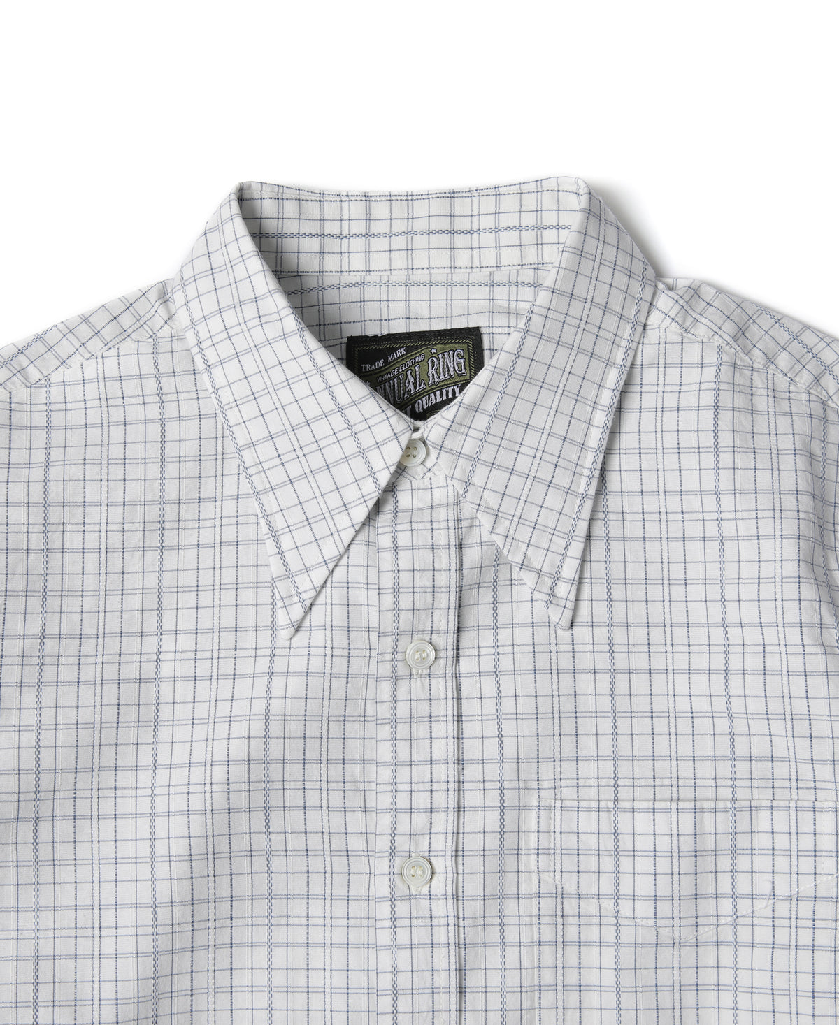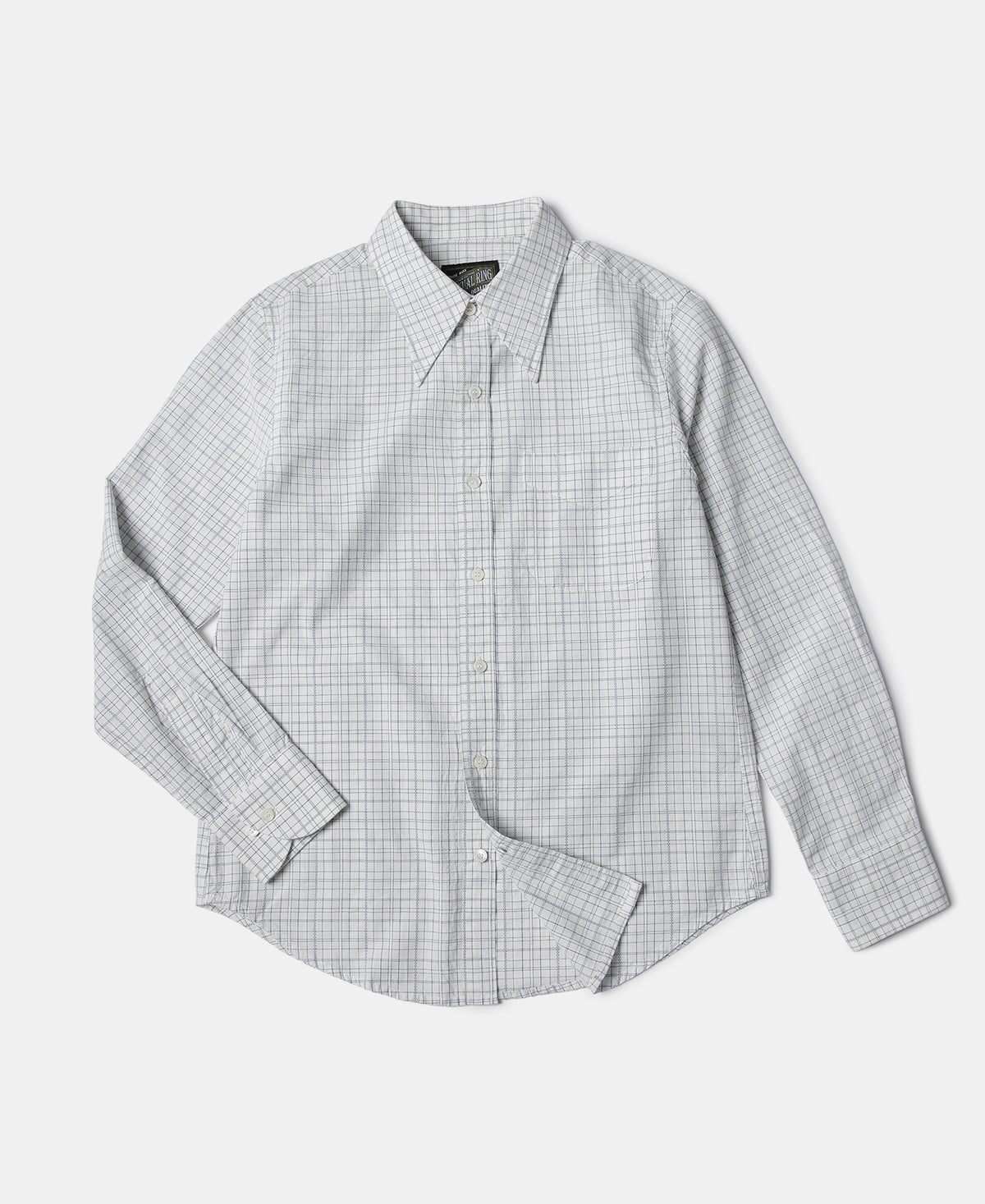 1930s Dobby Grid Check Spearpoint Collar Dress Shirt