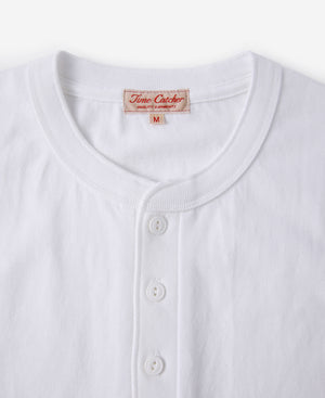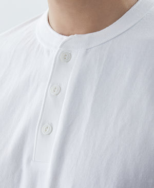 9.3 oz Cotton Tubular Henley T-Shirt - White
