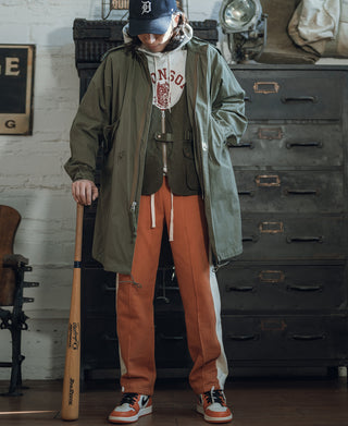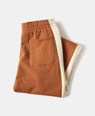 • Based on vintage sweatpants from the 1970s - 1980s. Made from 16.9 oz cotton-terry cloth in a classic straight-leg silhouette, they feature navy stripes at the sides, and have an elasticated waistband with adjustable drawstrings at the waistband and legs.