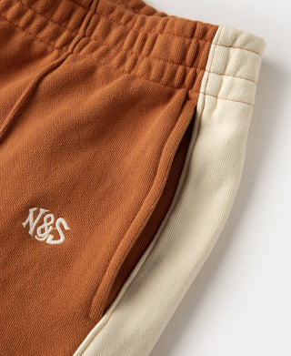 Based on vintage sweatpants from the 1970s - 1980s. Made from 16.9 oz cotton-terry cloth in a classic straight-leg silhouette, they feature navy stripes at the sides, and have an elasticated waistband with adjustable drawstrings at the waistband and legs.