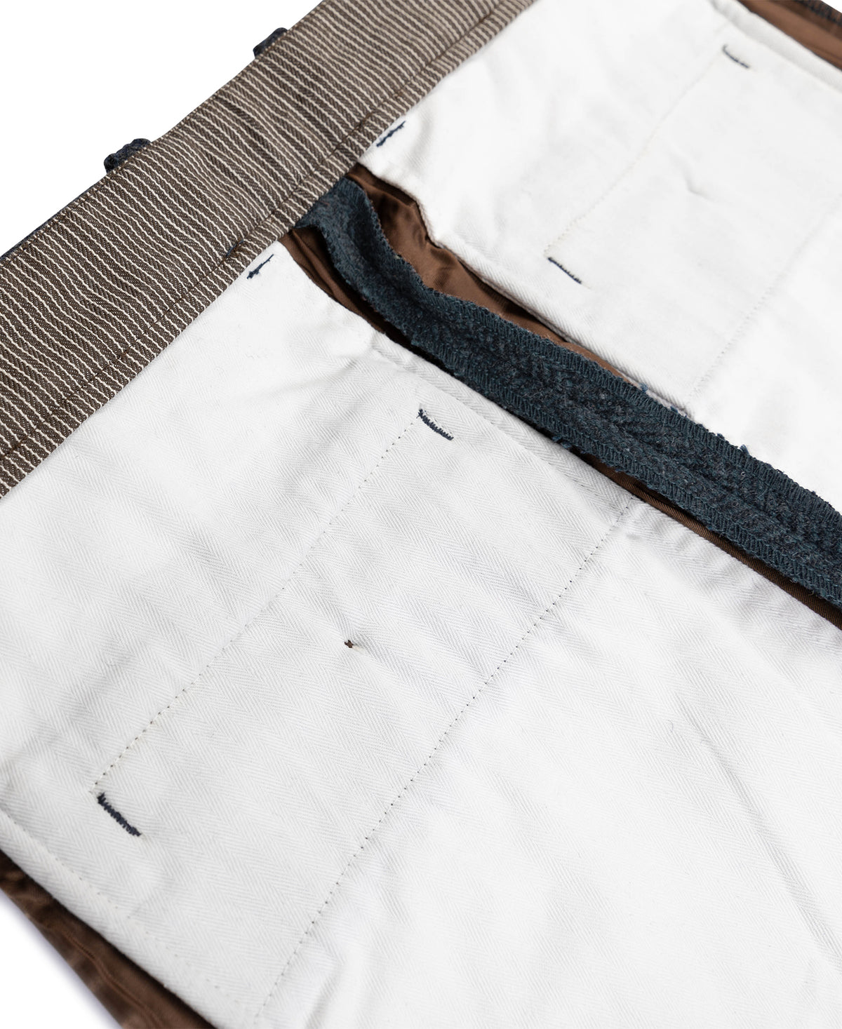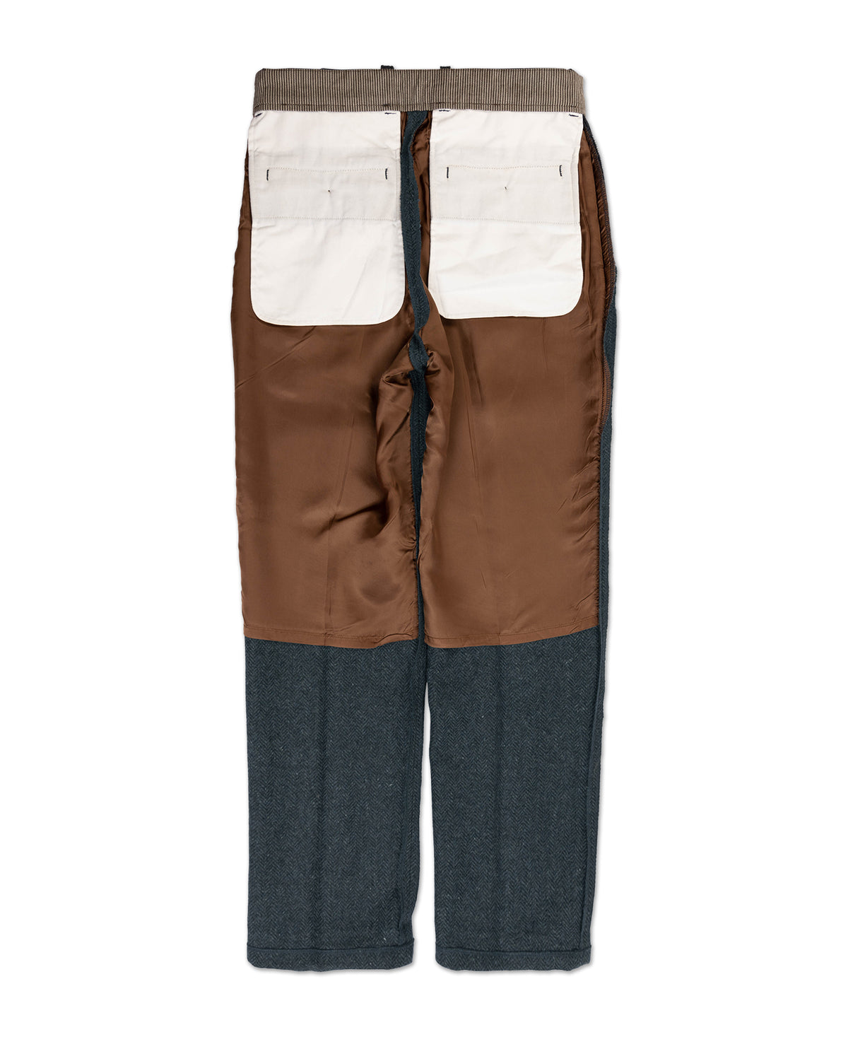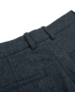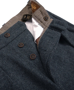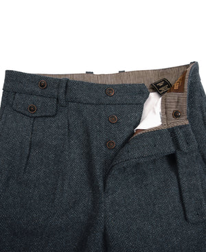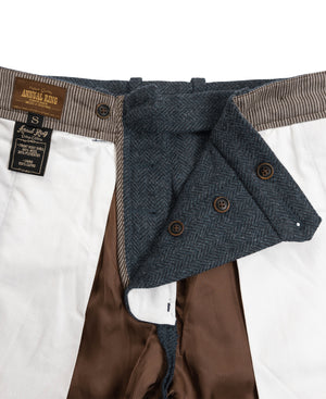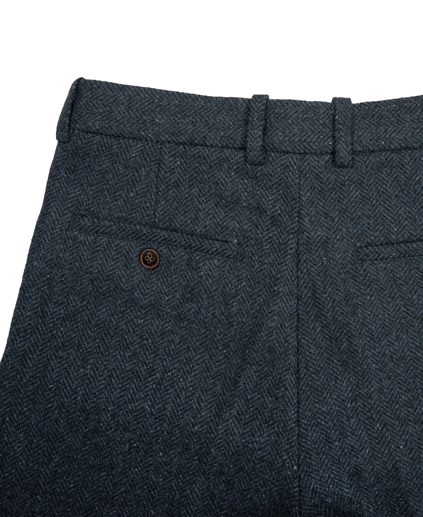 • These trousers are inspired by 1930s American style. Made from 100% wool tweed with a Japan Bemberg lining, they feature a yarn-dyed cotton waistband and cotton herringbone twill pocket lining.