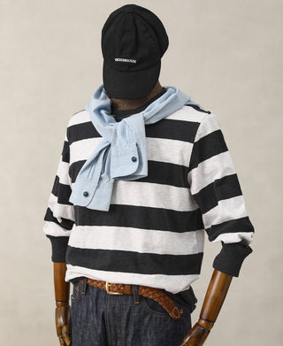 Inspired by those made in the 1950s, this long sleeve thick stripe tee is made from a 280 GSM heavyweight slub cotton jersey, breathable, soft and comfortable.This style of T-shirt was favored by American motorcycle riders in the middle of the last century.