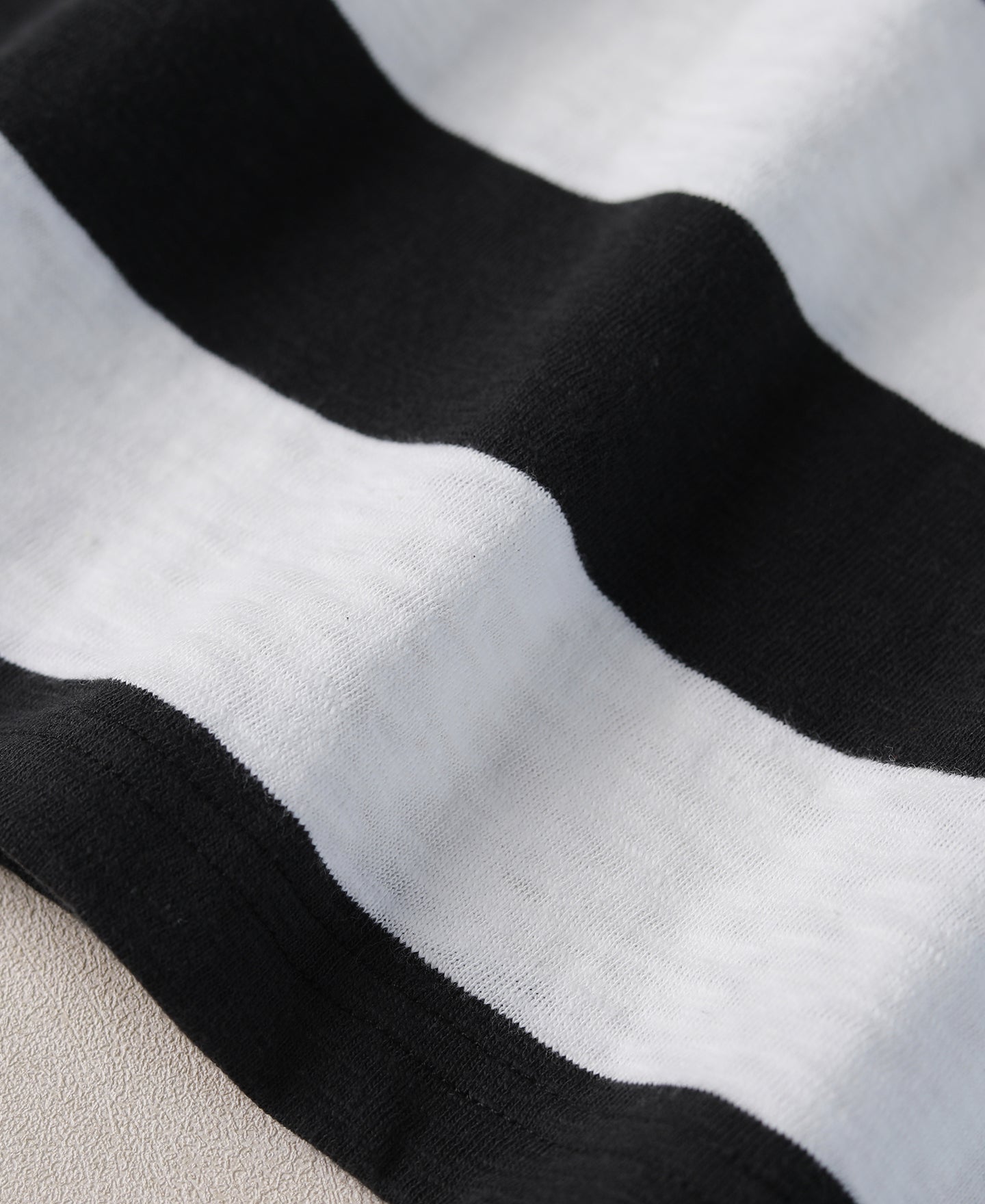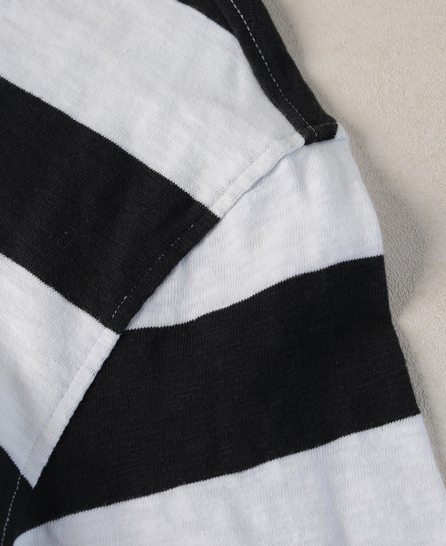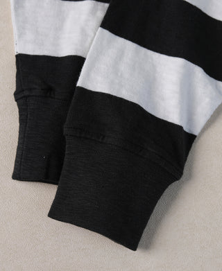 Slub Cotton Wide Striped Long Sleeve T-Shirt - Black/White