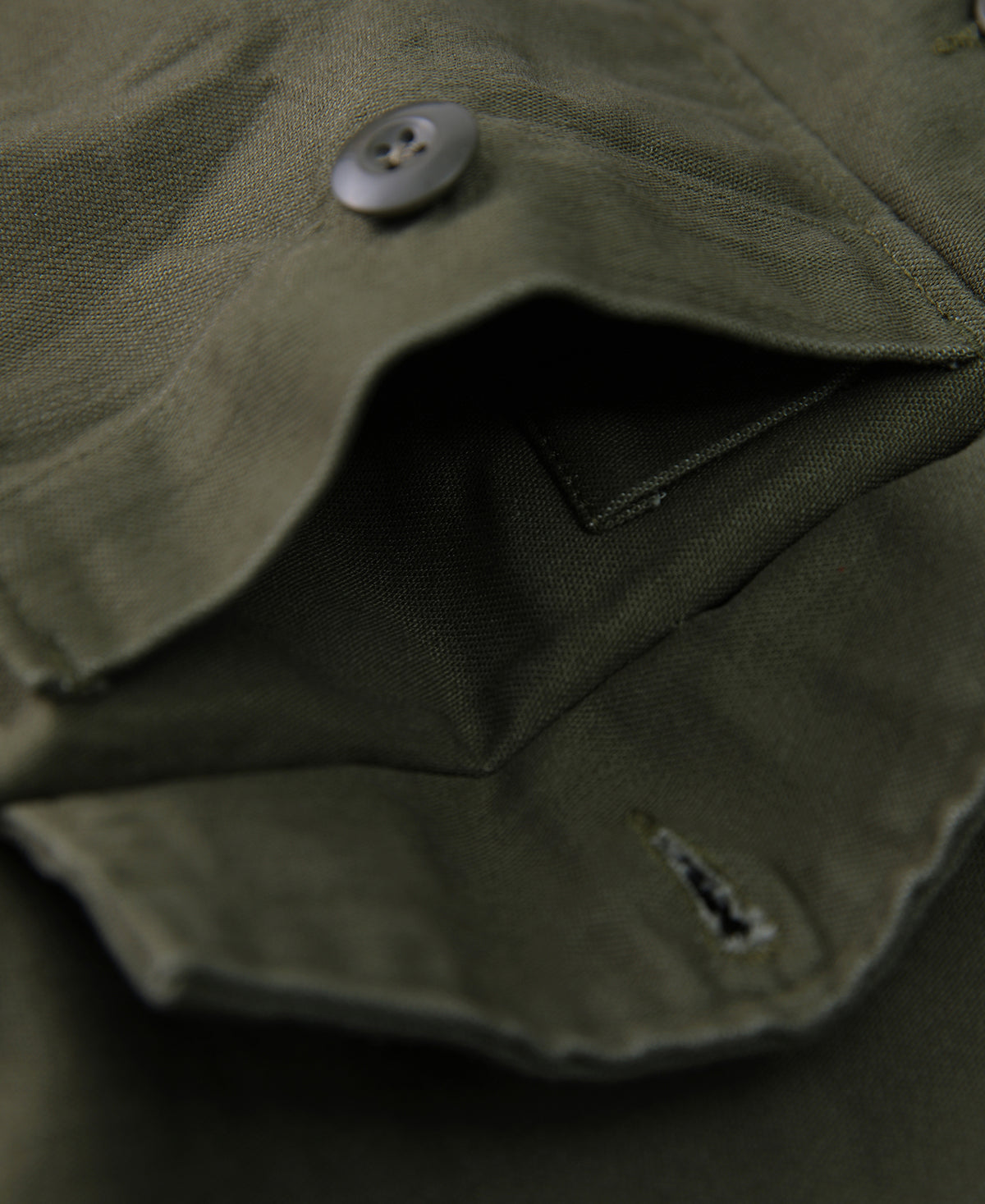 This shirt first appeared in 1952 as a follow-up to Herringbone twill (HBT)overalls. This version with sleeve forks was released between 1964-1975 and served for a long time. It is also the final evolution of the OG107 shirt.