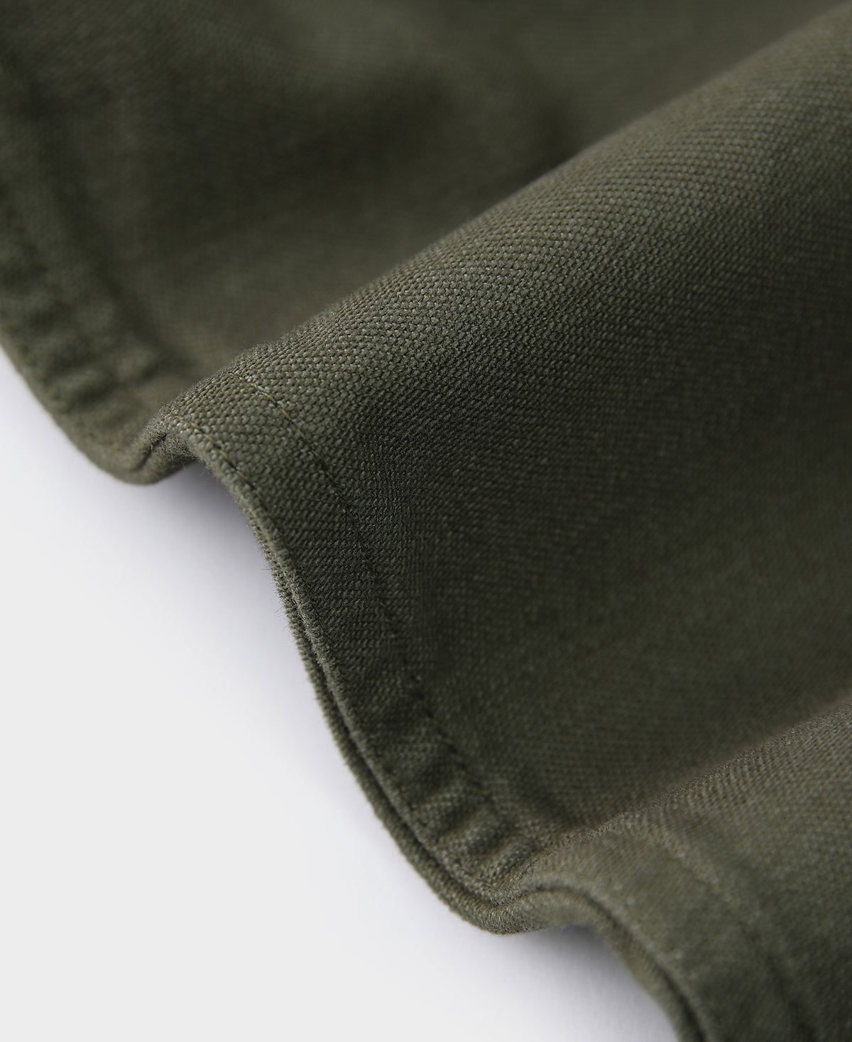 This shirt first appeared in 1952 as a follow-up to Herringbone twill (HBT) overalls. This version with sleeve forks was released between 1964-1975 and served for a long time. It is also the final evolution of the OG107 shirt. It is characterized by sleeve forks, pointed pockets, and a right-angle hem. The satin cotton fabric is still used. Although the OG507 after 1975 has the same appearance, it uses a cotton-polyester blended fabric.