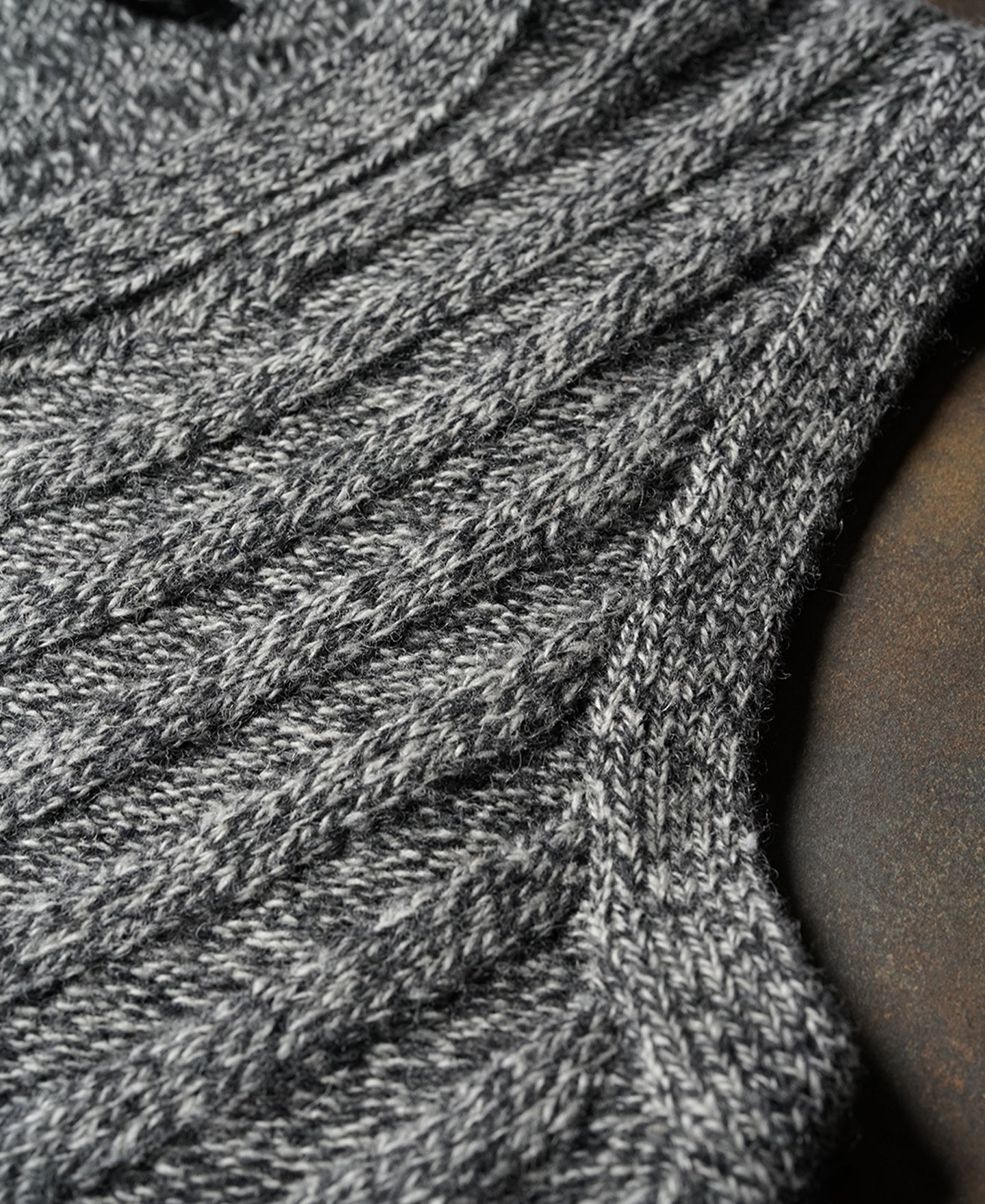 이 조끼는 셰틀랜드 울의 튼튼하고 거친 매력을 그대로 간직하고 있으며, 이러한 특성이 이 조끼를 오랫동안 매력적으로 만들어줍니다.