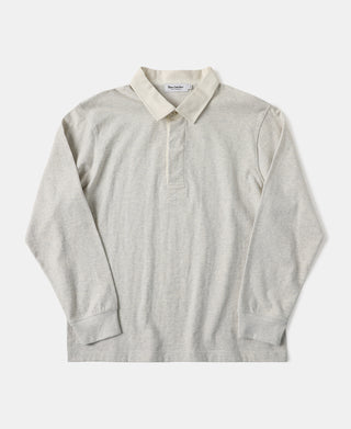 Slub Cotton Long Sleeve Knit Polo - Oatmeal