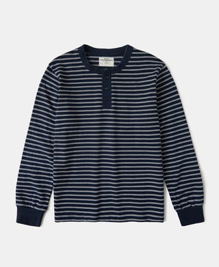 빈티지 긴팔 헨리 셔츠 - 네이비