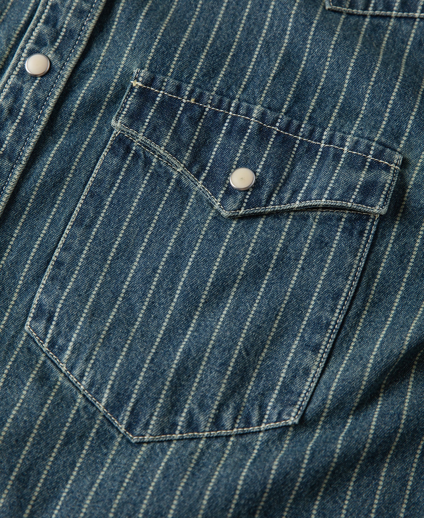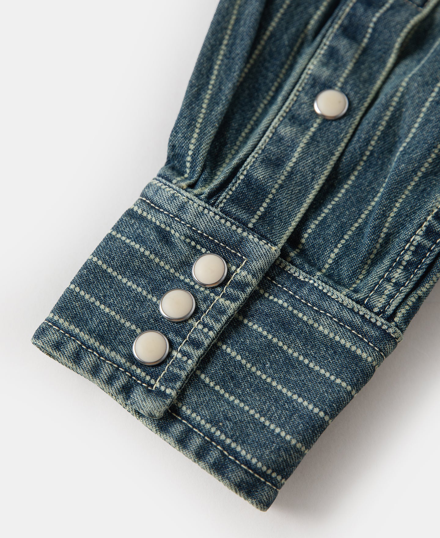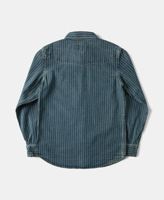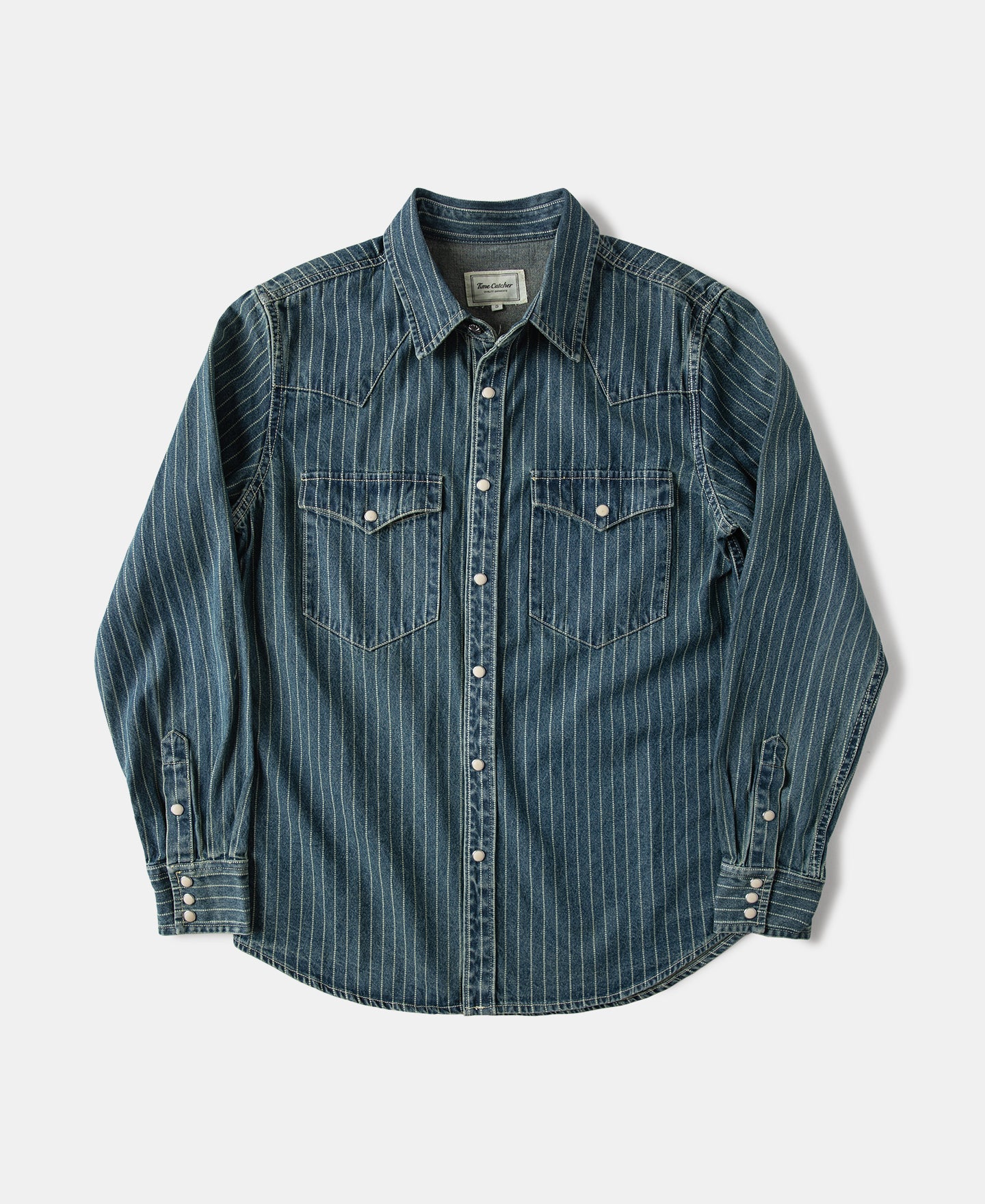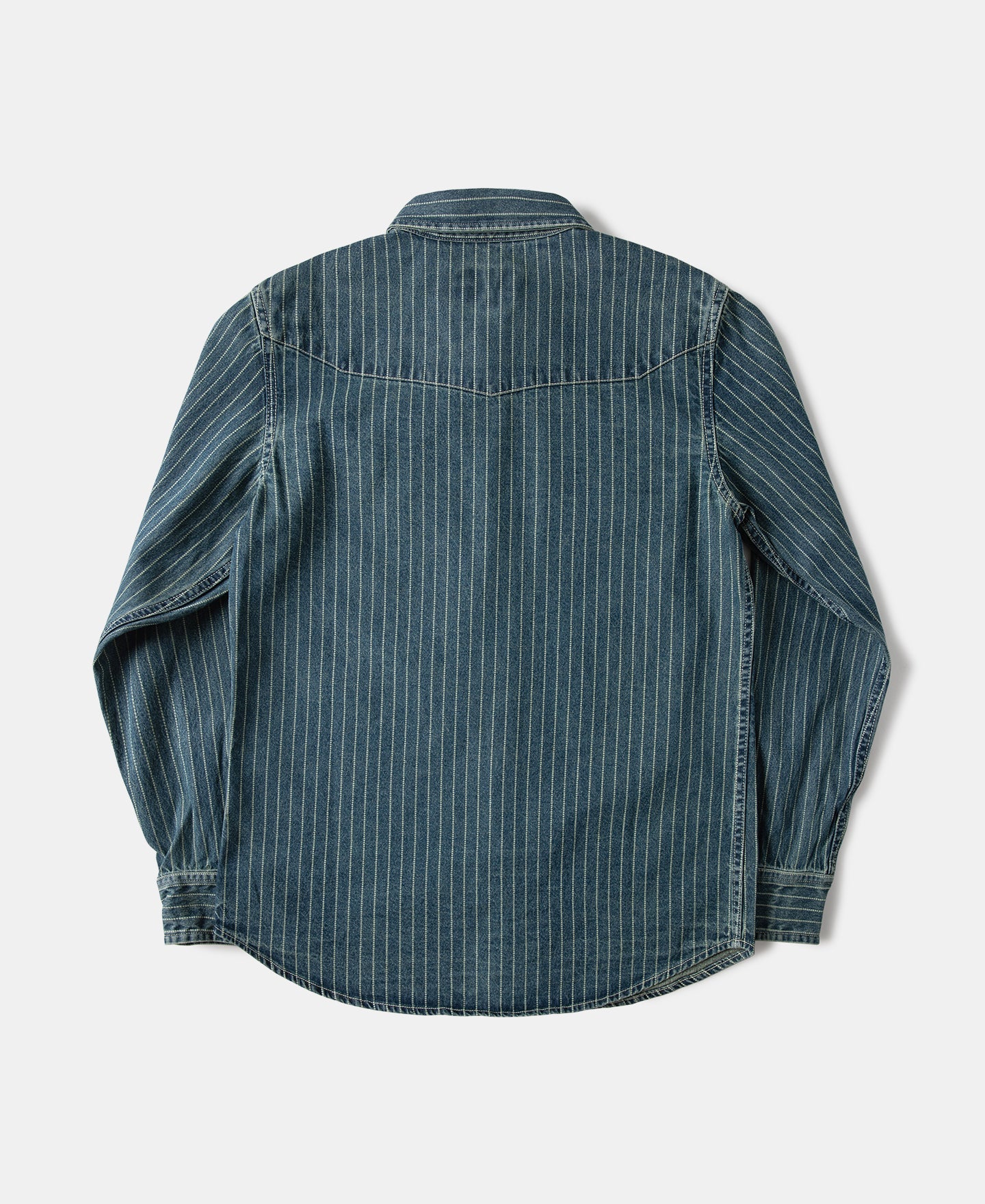 슬림핏 와바시 스트라이프 인디고 웨스턴 셔츠