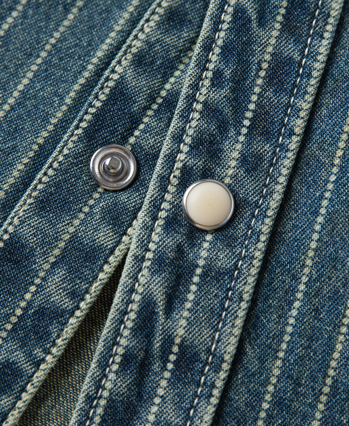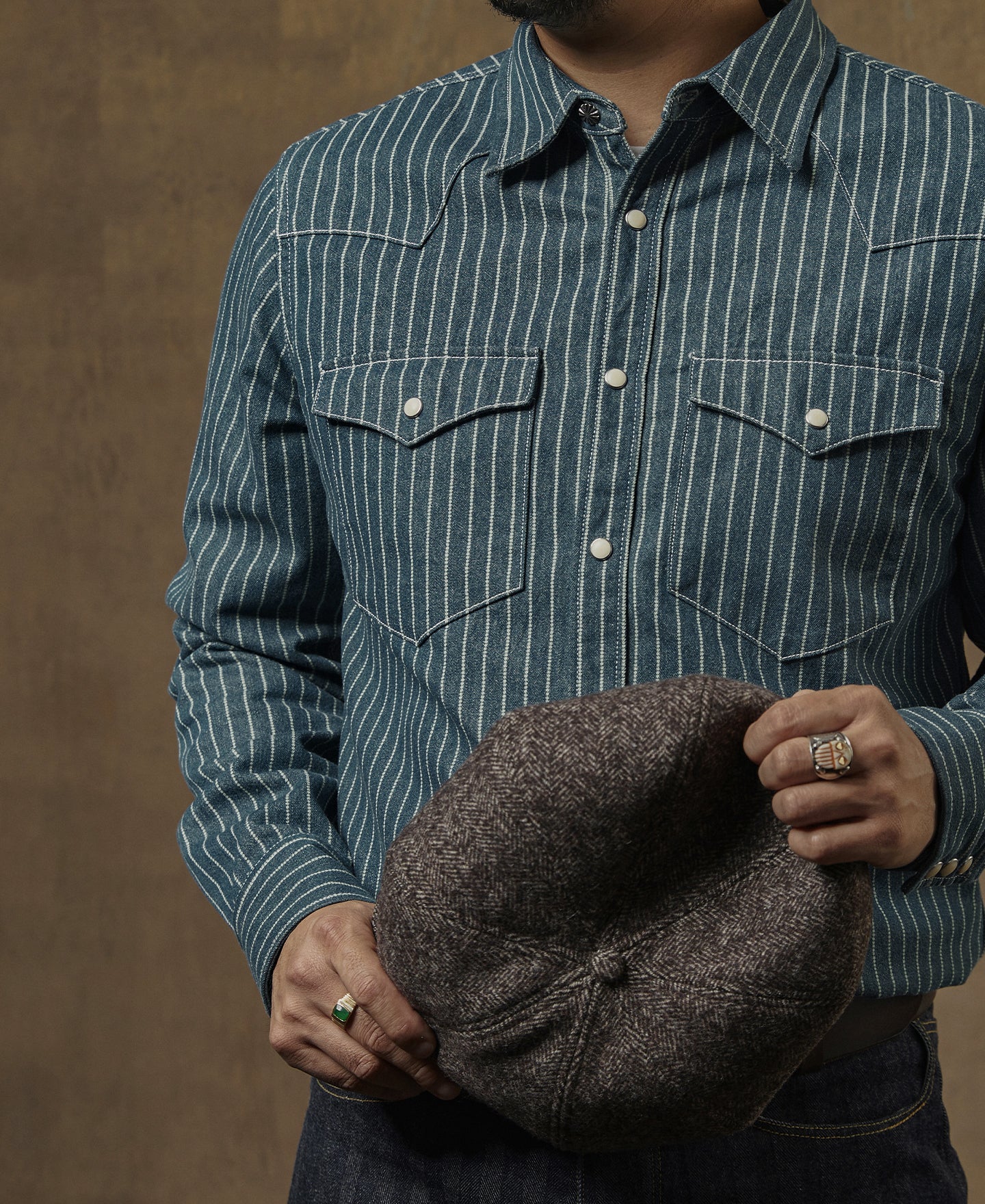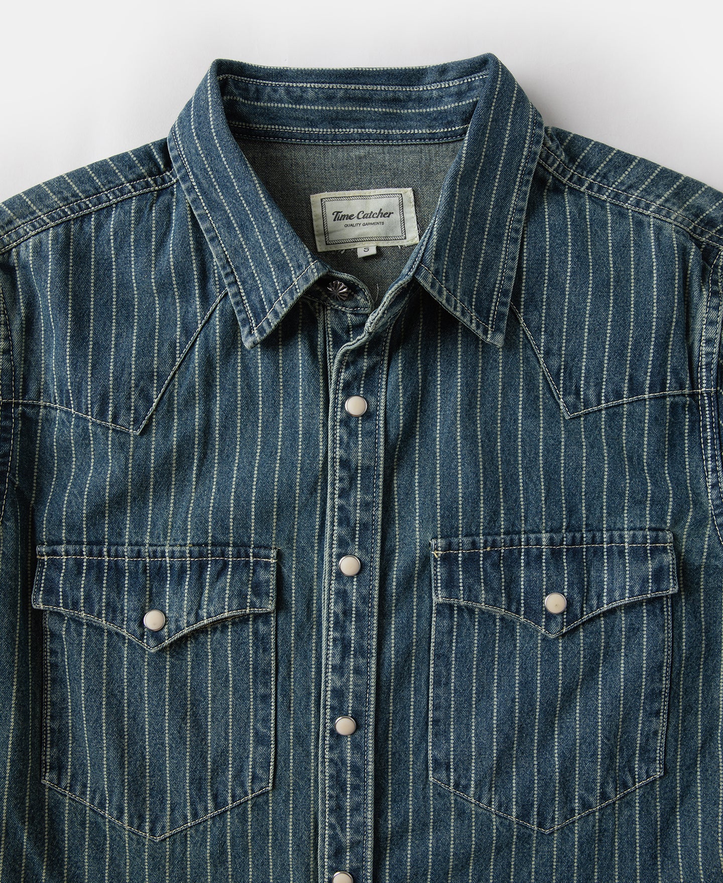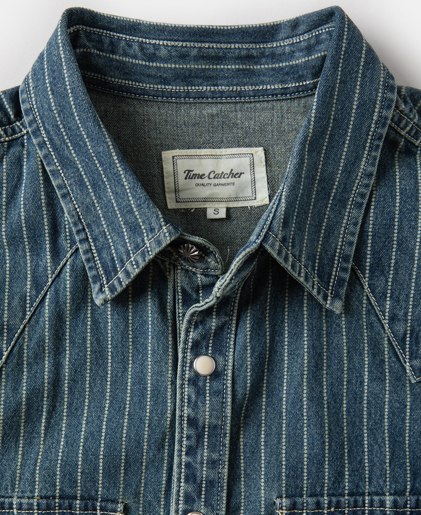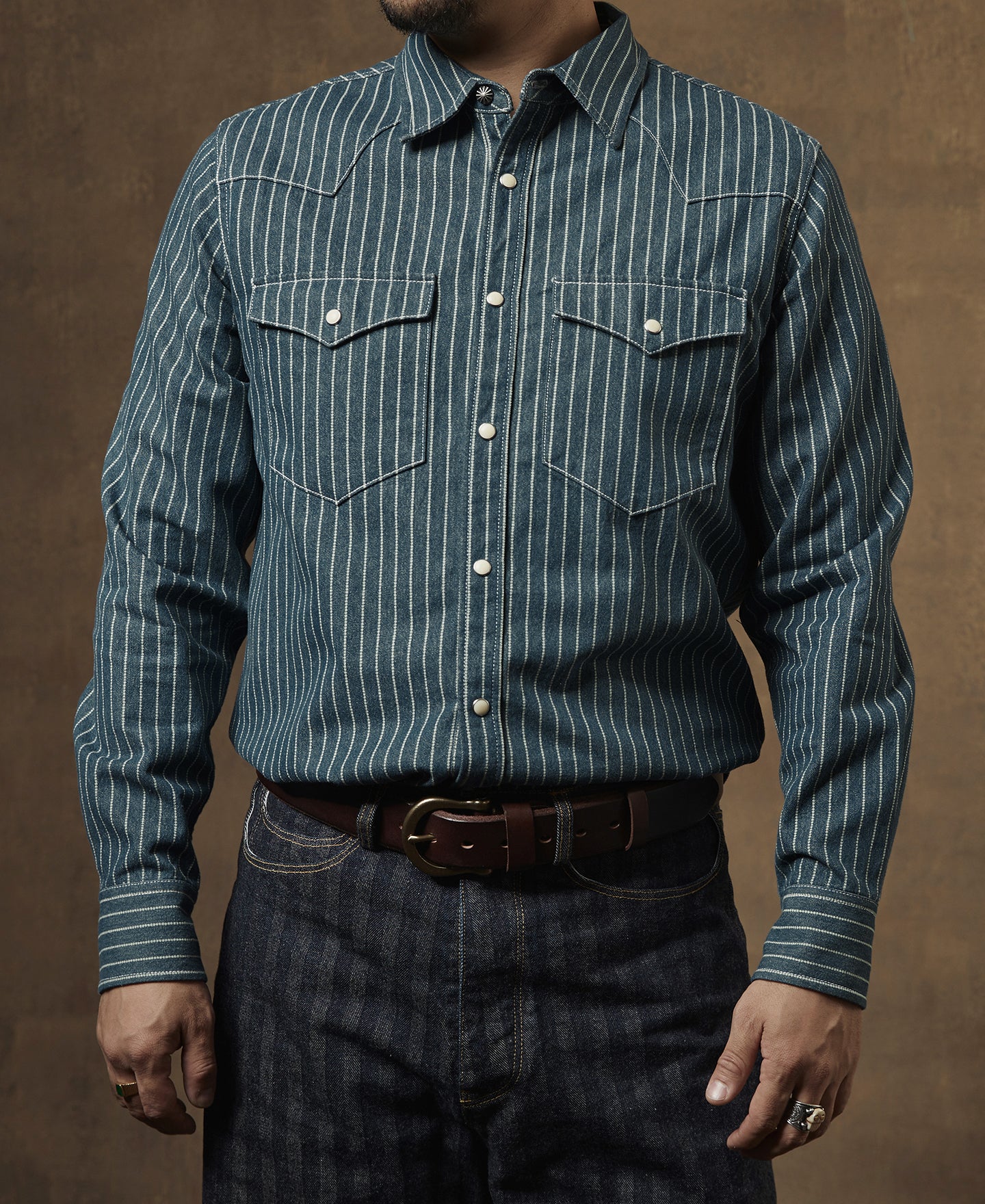 슬림핏 와바시 스트라이프 인디고 웨스턴 셔츠
