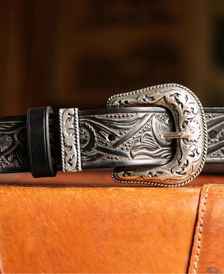 아라베스크 조각 벨트 - 블랙
