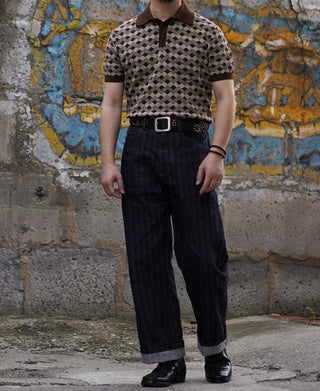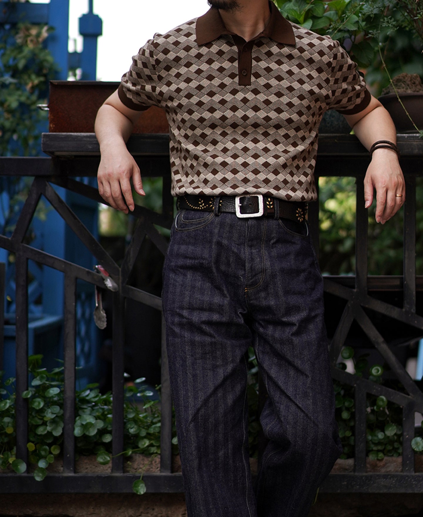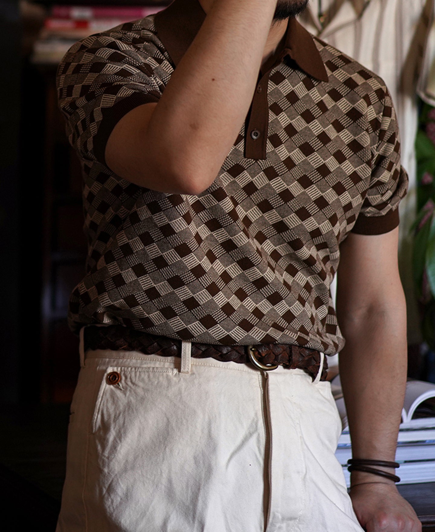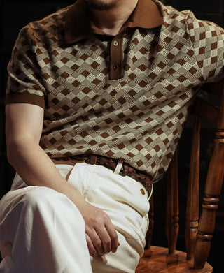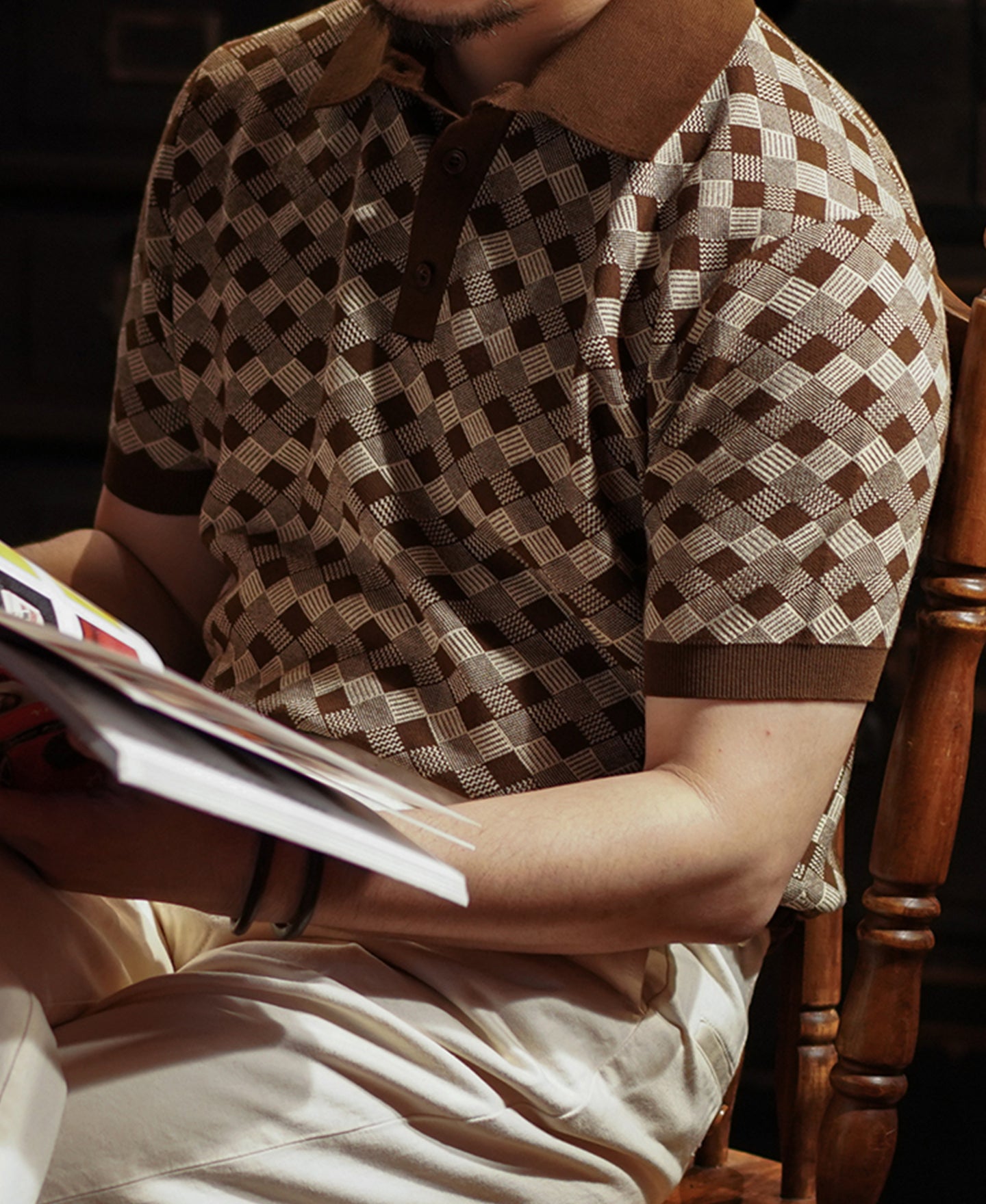 다이아몬드 패턴 레트로 니트 폴로셔츠