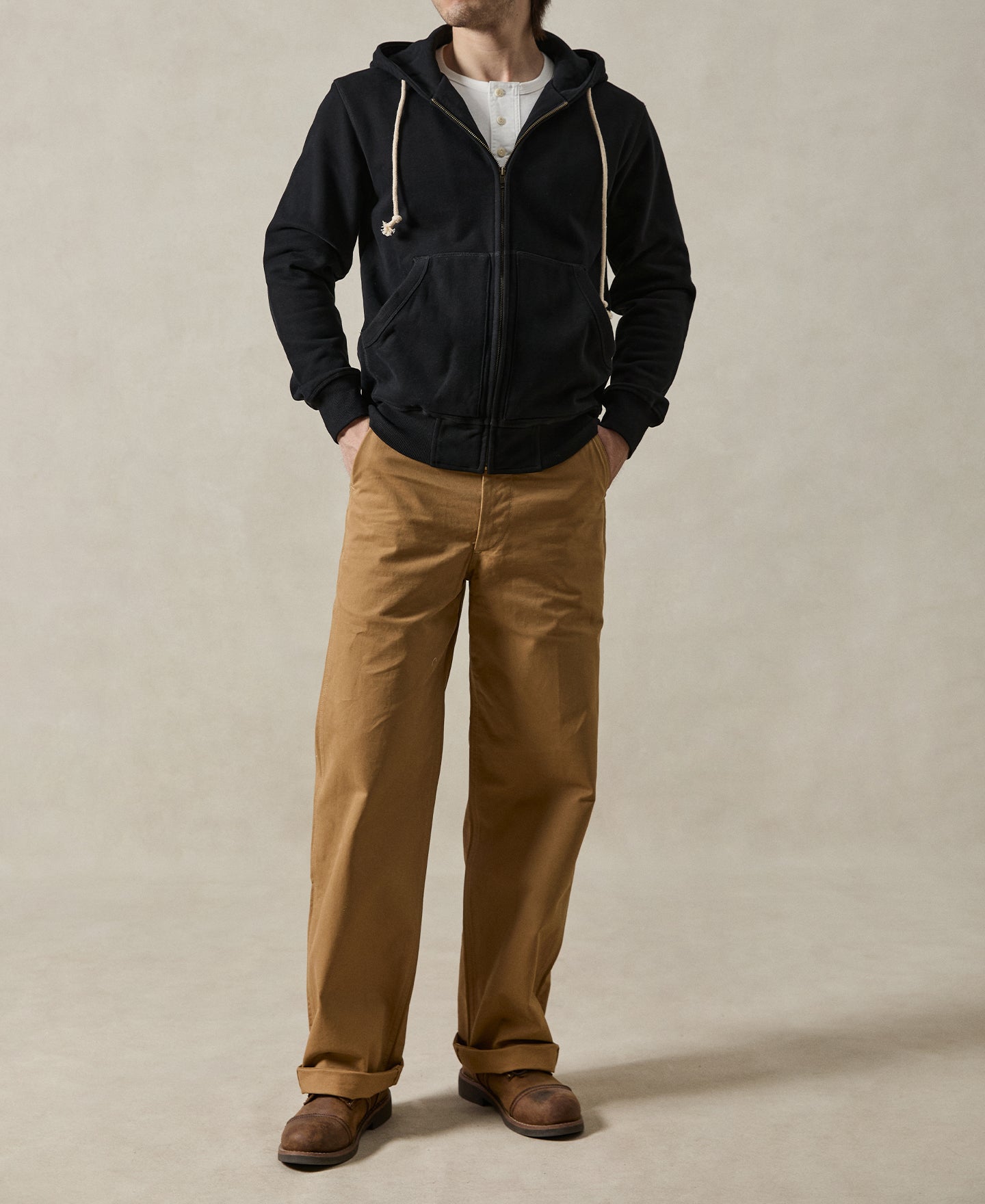 500g의 고중량 테리 소재로 제작된 이 집업 후디는 내구성과 구조적인 구조로 제작되었습니다. 촘촘한 원단은 루프백 안감으로 통기성이 뛰어나 플리스 소재에서 흔히 발생하는 털 빠짐을 방지합니다. 후드는 이중 구조로 보강되어 형태와 커버력을 높였습니다. 전체적으로 노출된 스티칭은 견고하고 실용적인 느낌을 주며, 골지 트리밍 포켓은 기능성과 디테일을 모두 더해줍니다.