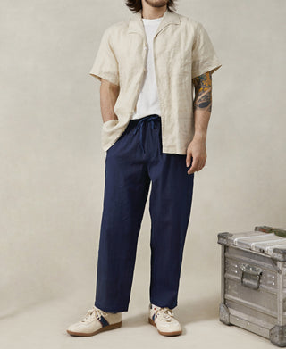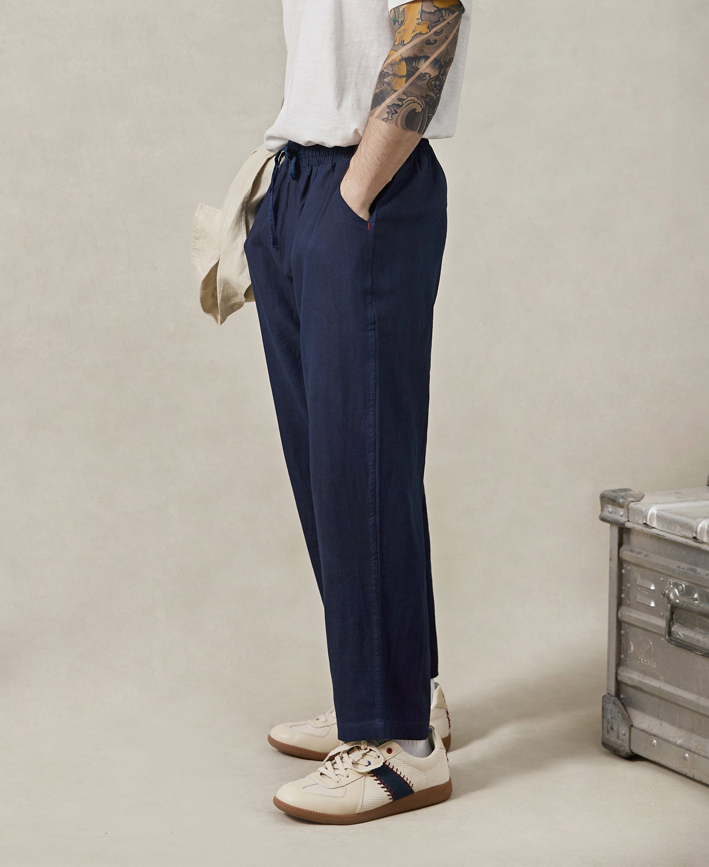 탄력있는 끈이 달린 허리, 느슨한 테이퍼드 핏, 슬럽 소재로 제작되었습니다.