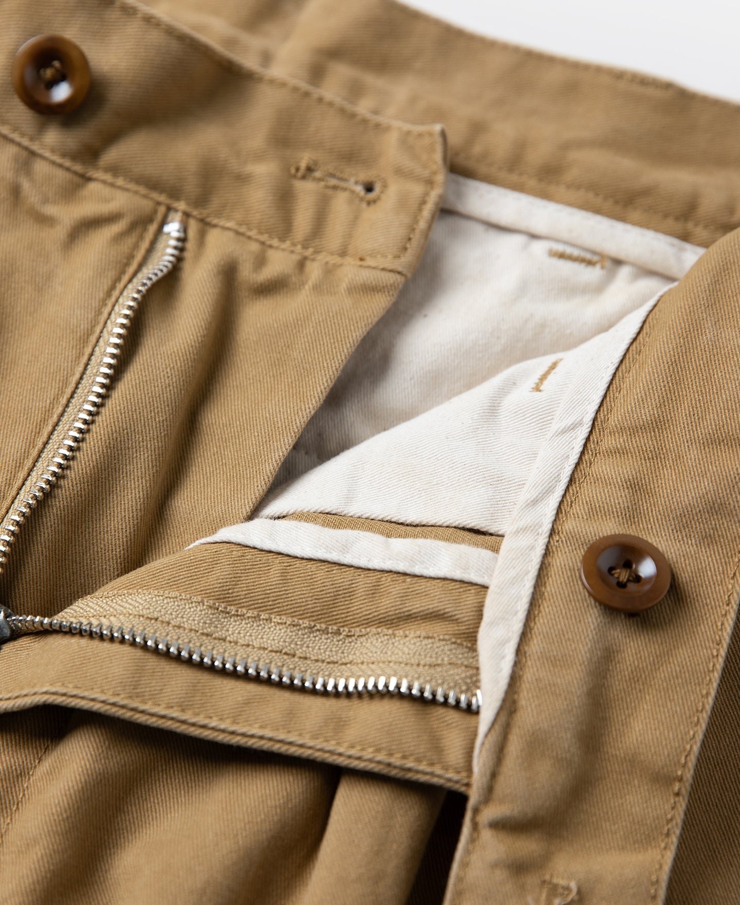 1930's IVY 스타일 더블 플리츠 치노 팬츠 - 옐로우
