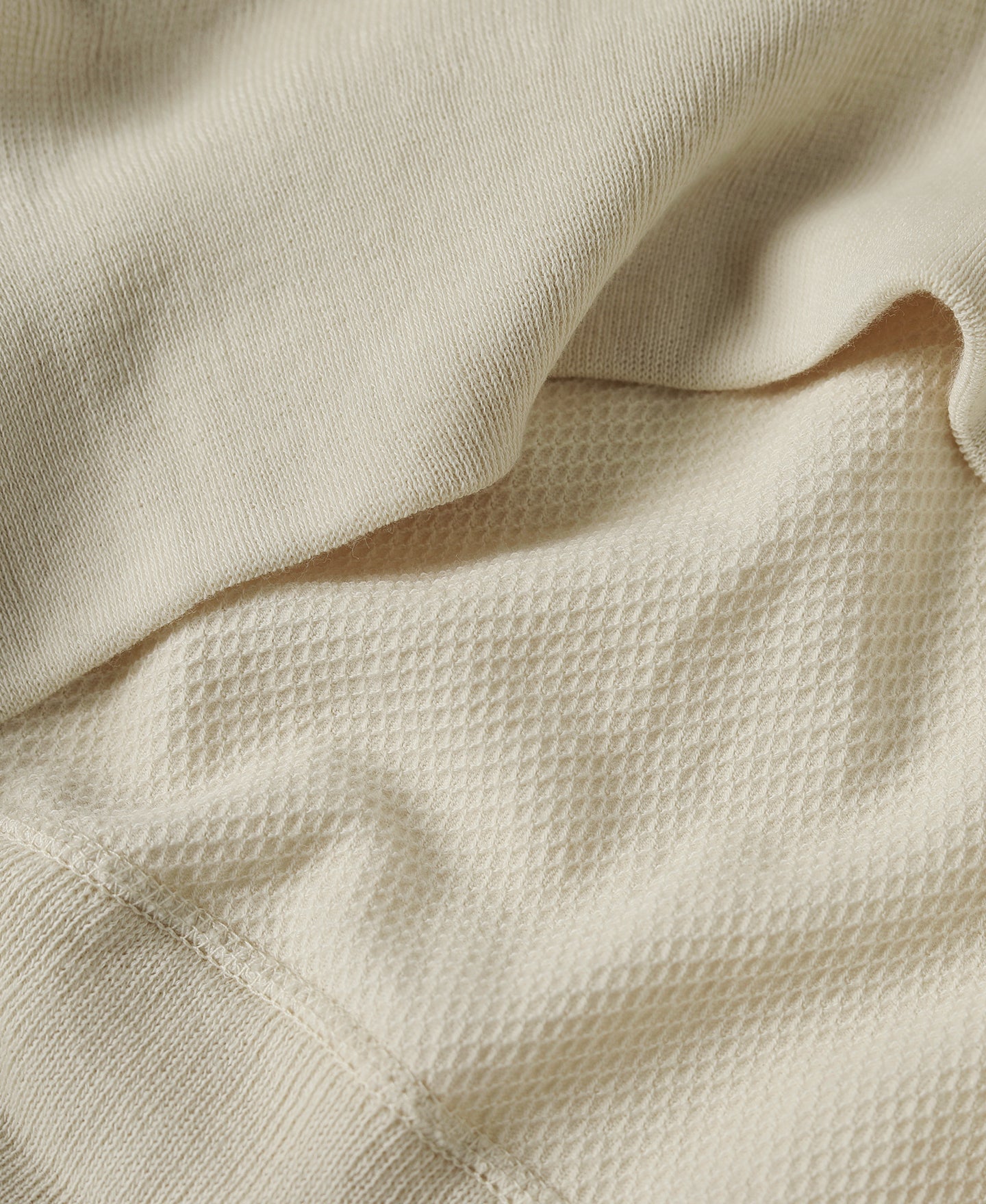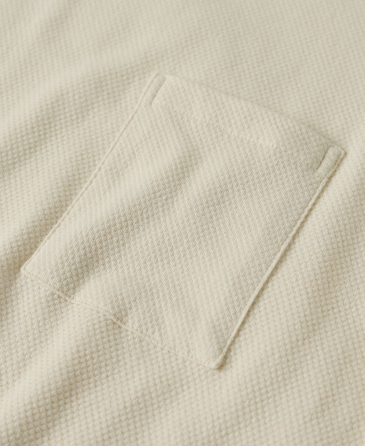 • 와플 패브릭은 벌집 패브릭이라고도 불리며, 표면의 모양 때문에 와플과 비슷한 질감에서 이름을 따왔습니다. 엇갈리고 위사 실이 패브릭에 규칙적인 작은 정사각형 융기와 움푹 들어간 부분을 형성하여 융기된 질감을 만드는 것이 특징입니다.