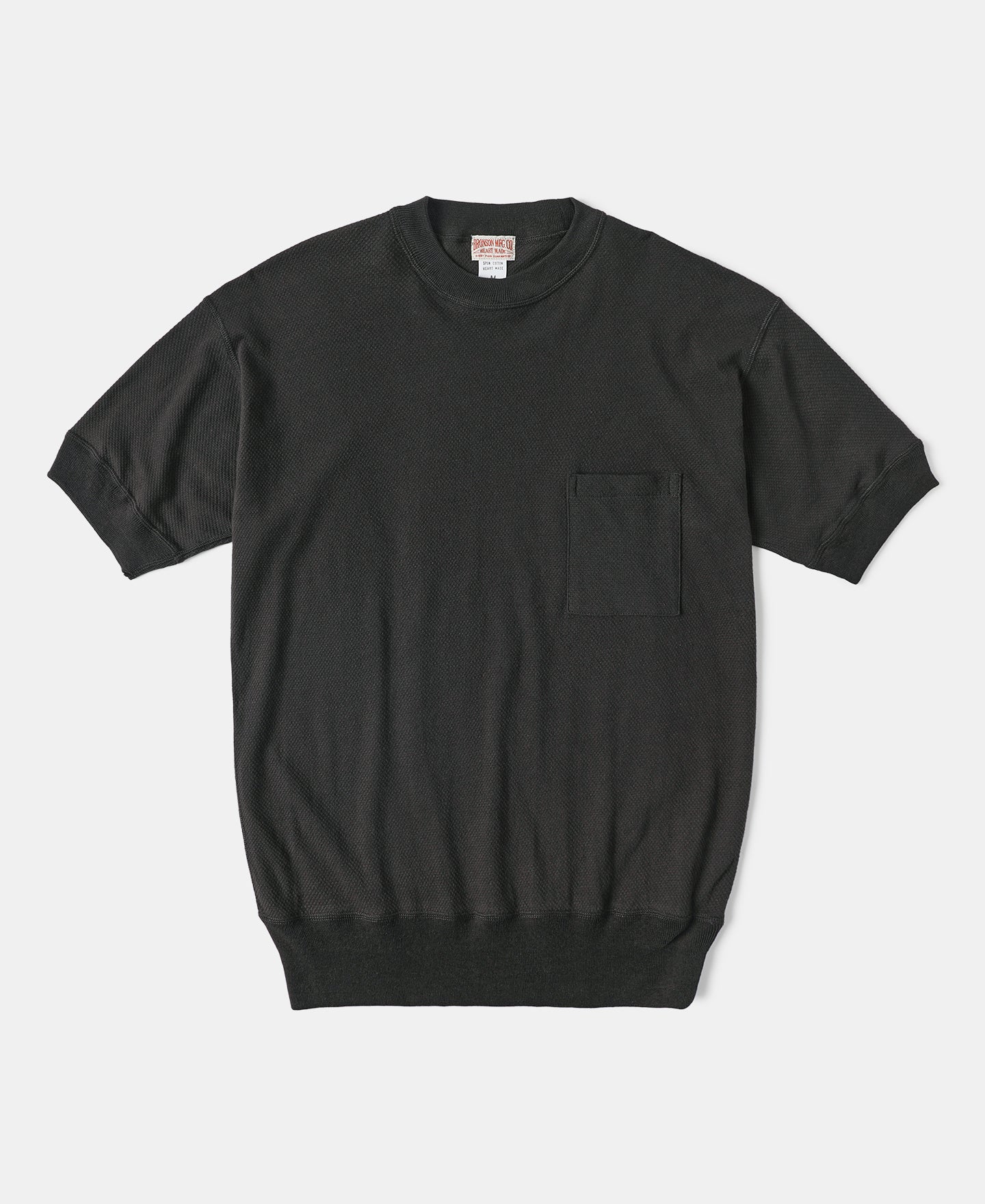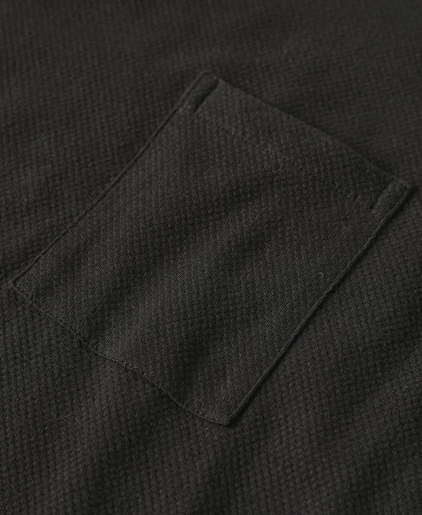 와플 니트 패턴 포켓 티셔츠 - 블랙