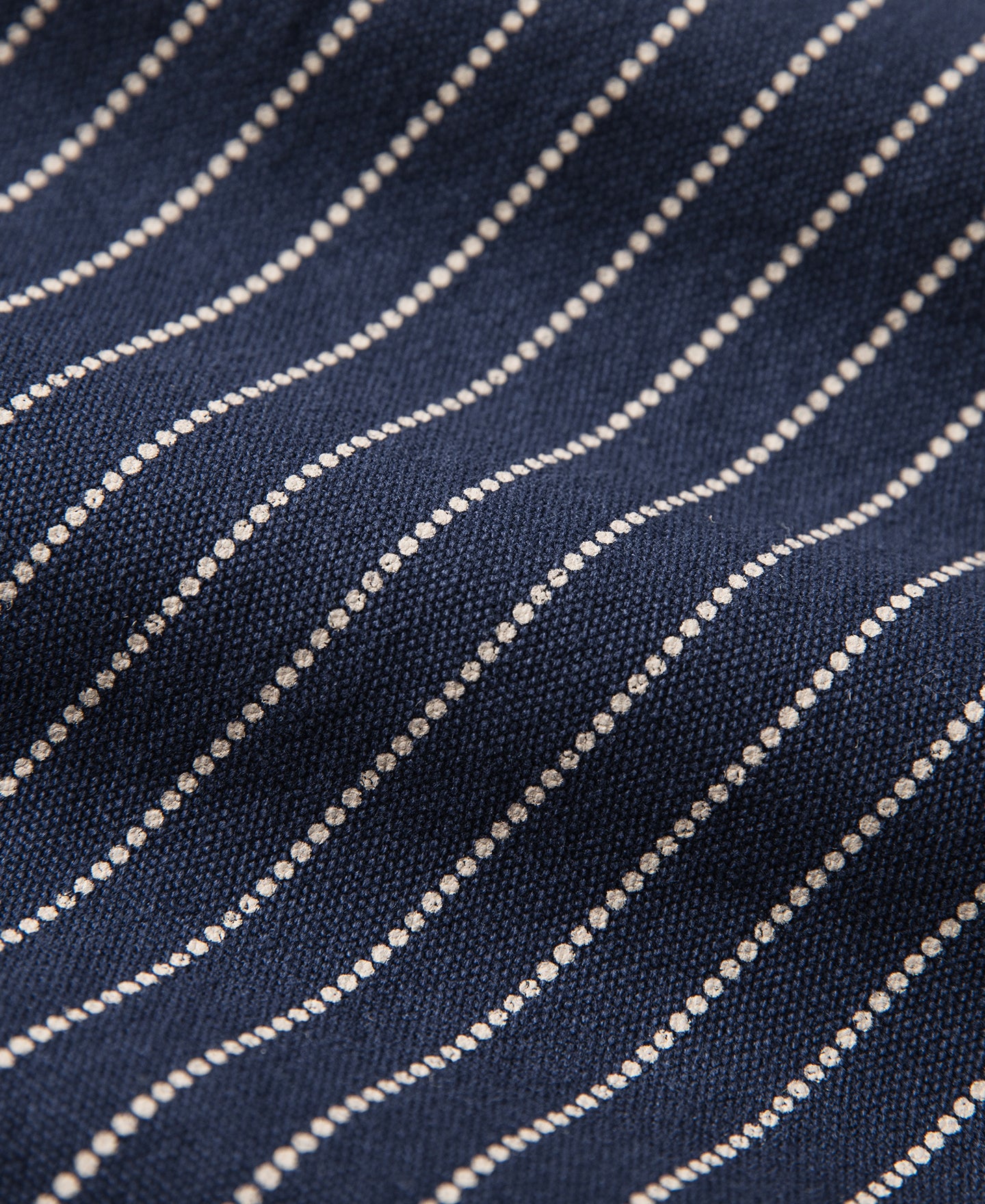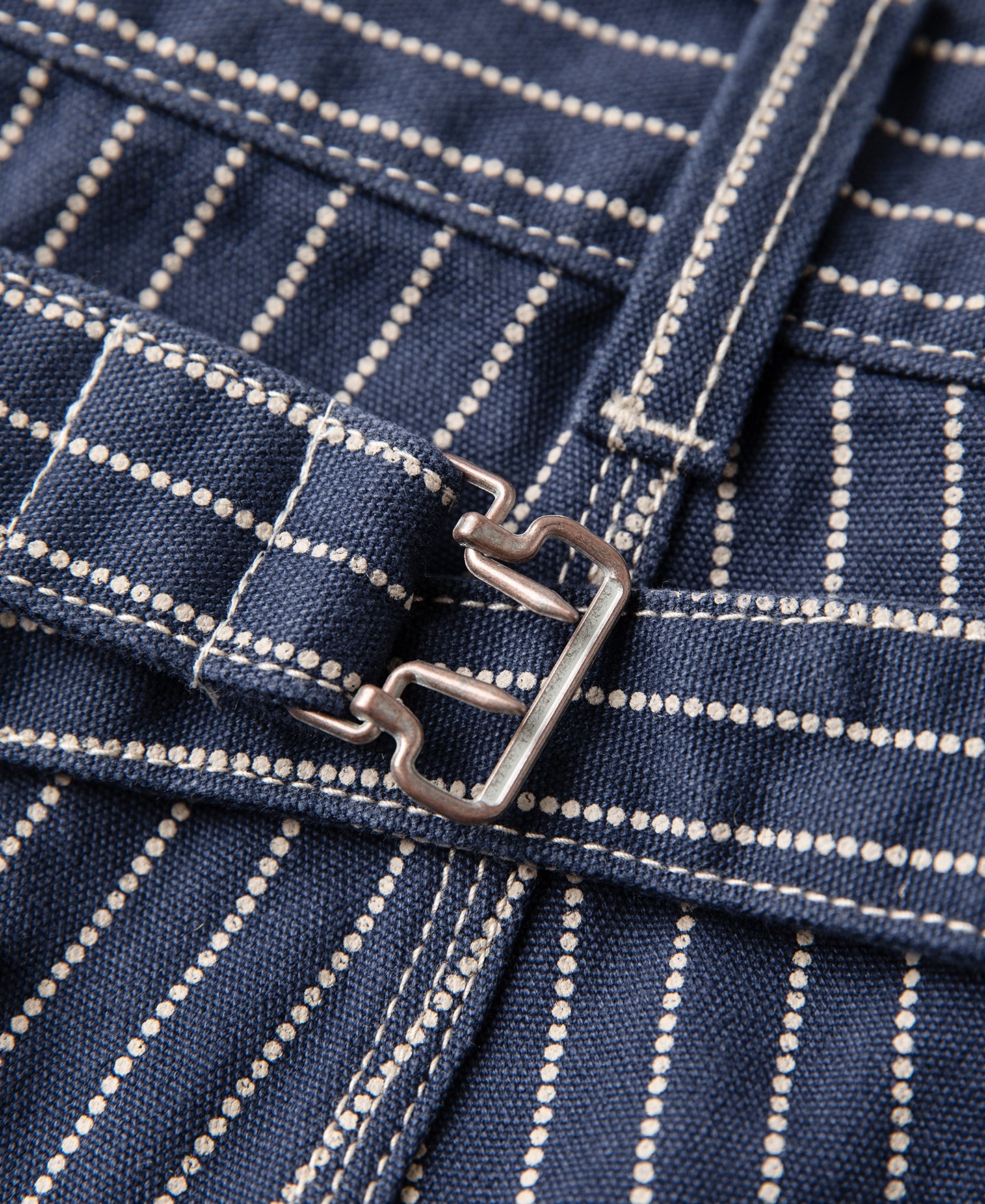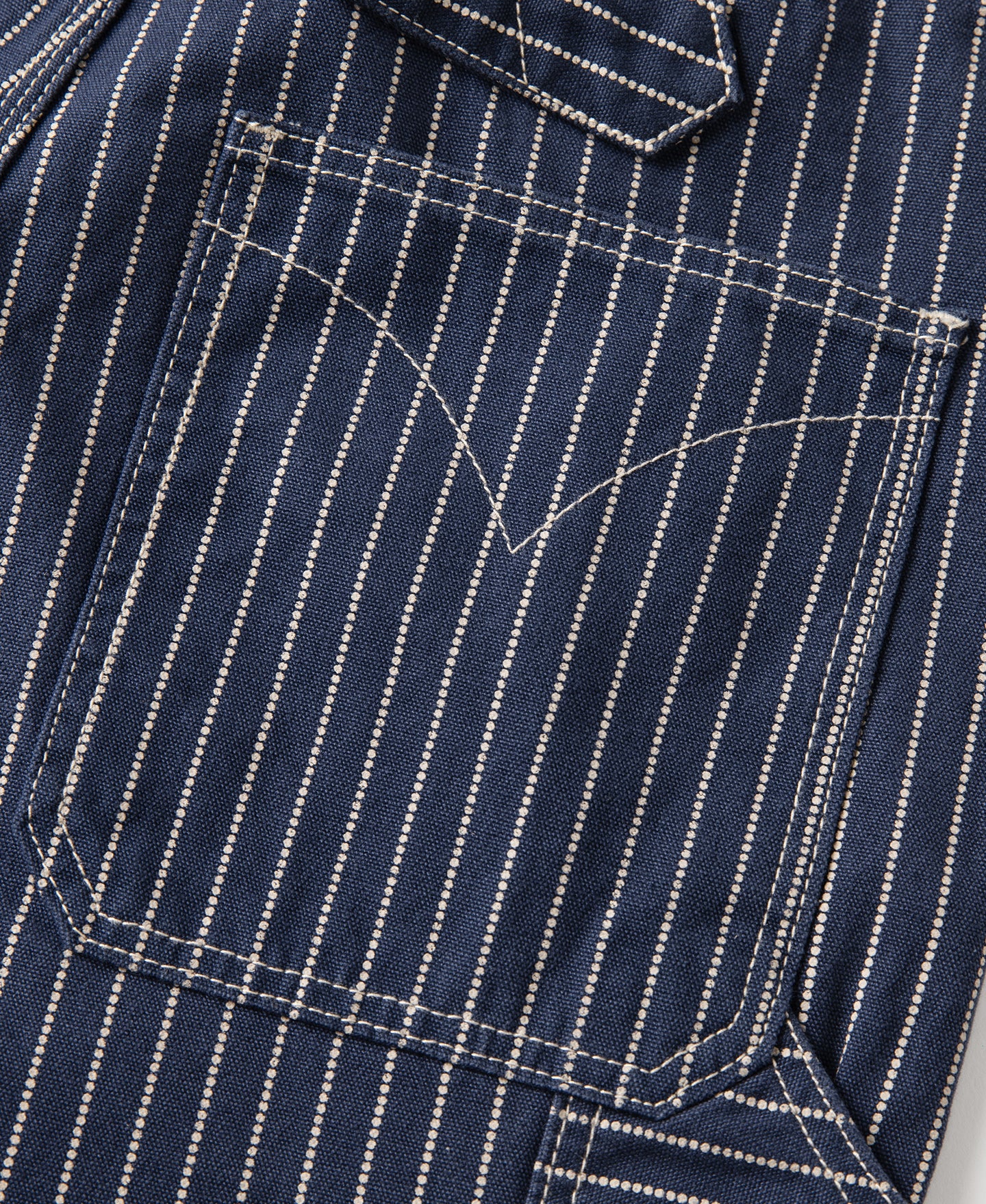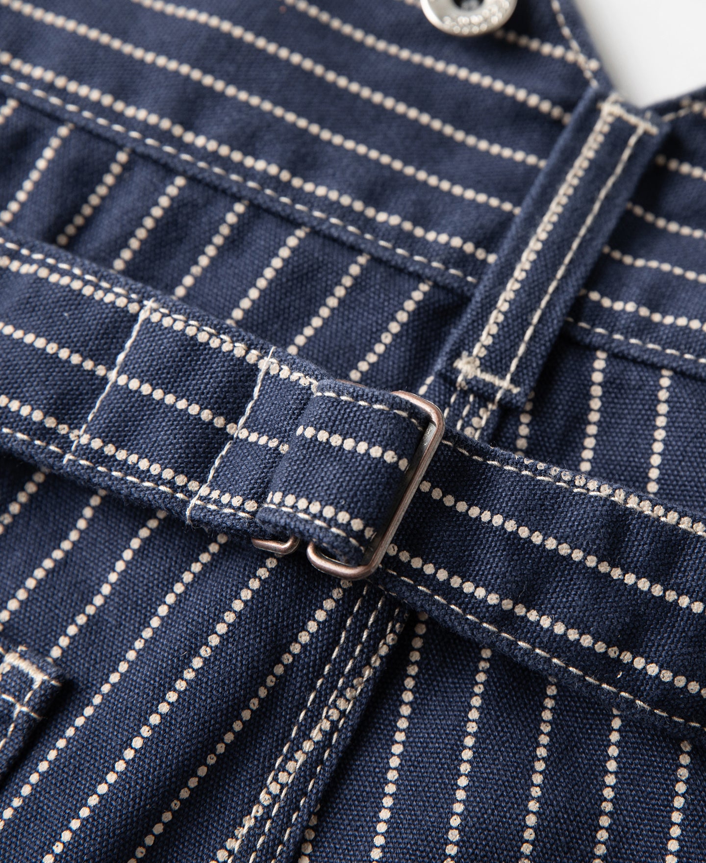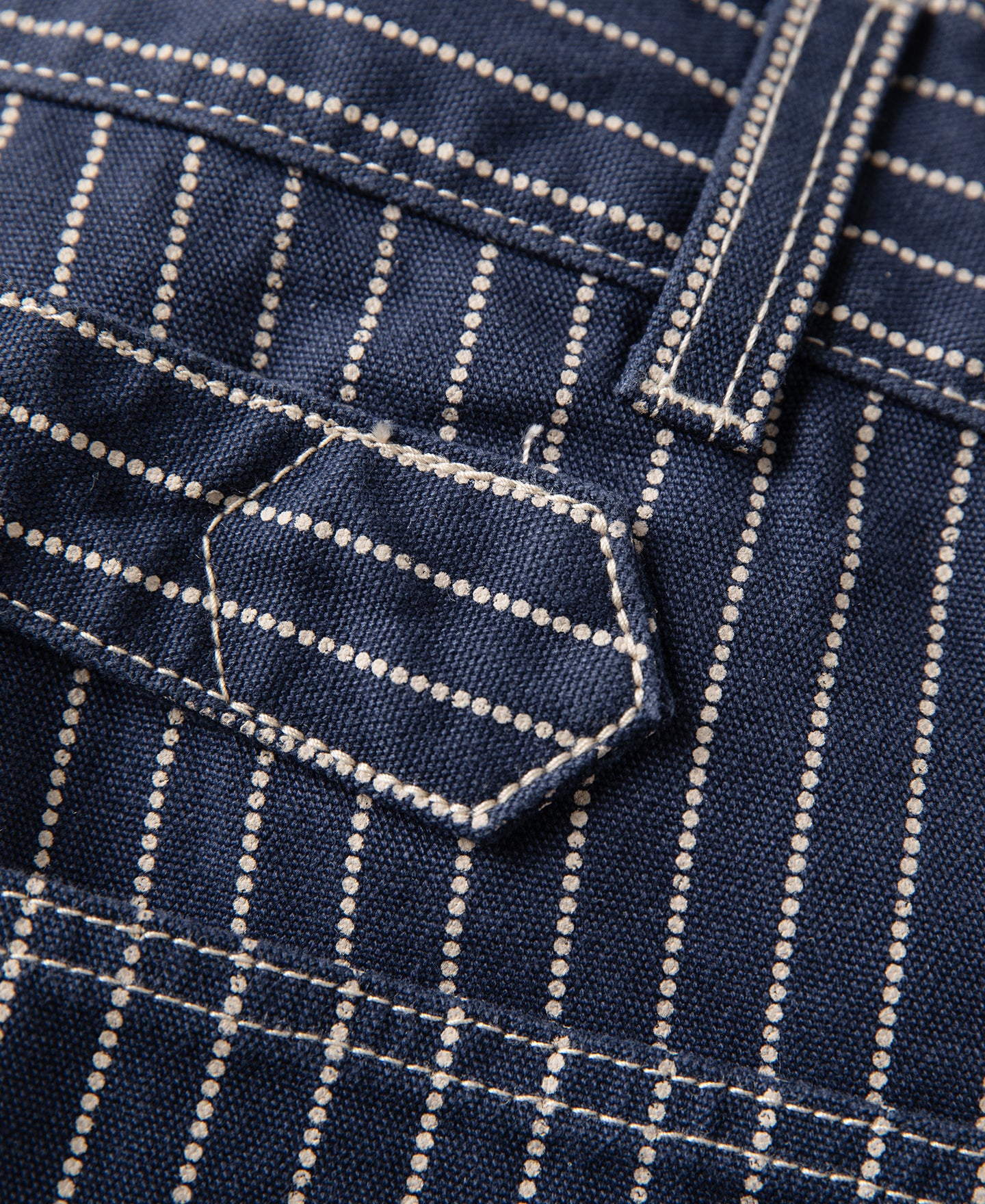 이 워배시 스트라이프 워크 팬츠는 내구성이 뛰어난 12온스 스트라이프 데님 소재로 제작되어 봄, 가을, 초겨울에 착용하기 좋습니다. 여유로운 스트레이트 레그 핏에 올리브 가지 모티프가 새겨진 7개의 합금 허리 단추와 뒷면의 구리 파리 버클로 길이 조절이 가능하며, 클래식 서스펜더 워크웨어의 시대를 초월하는 요소를 그대로 살렸습니다.