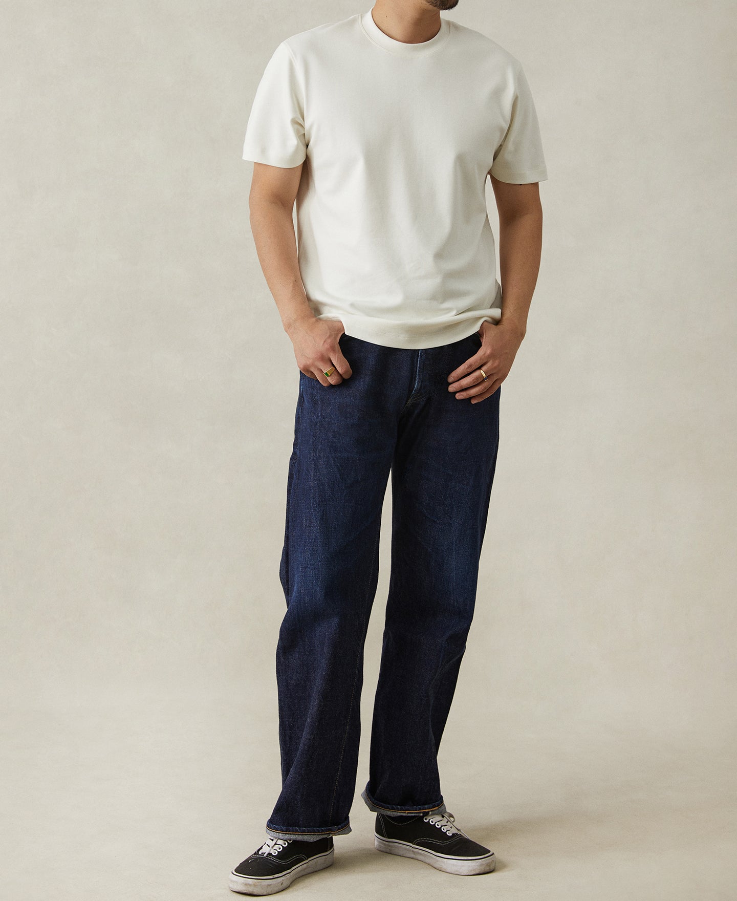 이 티셔츠는 17.0마이크론 메리노 울(7.7%), 면(40.6%), 식물성 모달(32.5%), 그리고 친환경 듀폰 소로나 섬유(19.2%)를 혼방하여 부드럽고 매끈하며 통기성이 좋은 촉감을 선사합니다. 원단은 자연적으로 냄새가 나지 않고 쾌적함을 유지하며, 편안한 신축성으로 형태 유지에 도움을 줍니다. 목선, 어깨, 암홀, 옆선 솔기는 내구성을 강화했으며, 소매와 밑단은 좁은 이중 니들 마감 처리가 적용되었습니다.