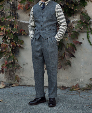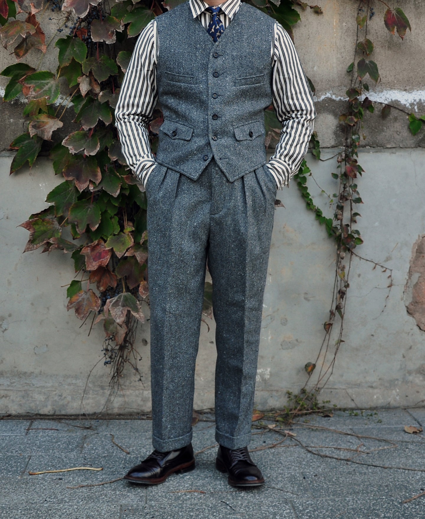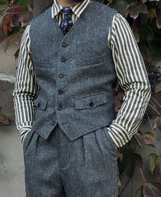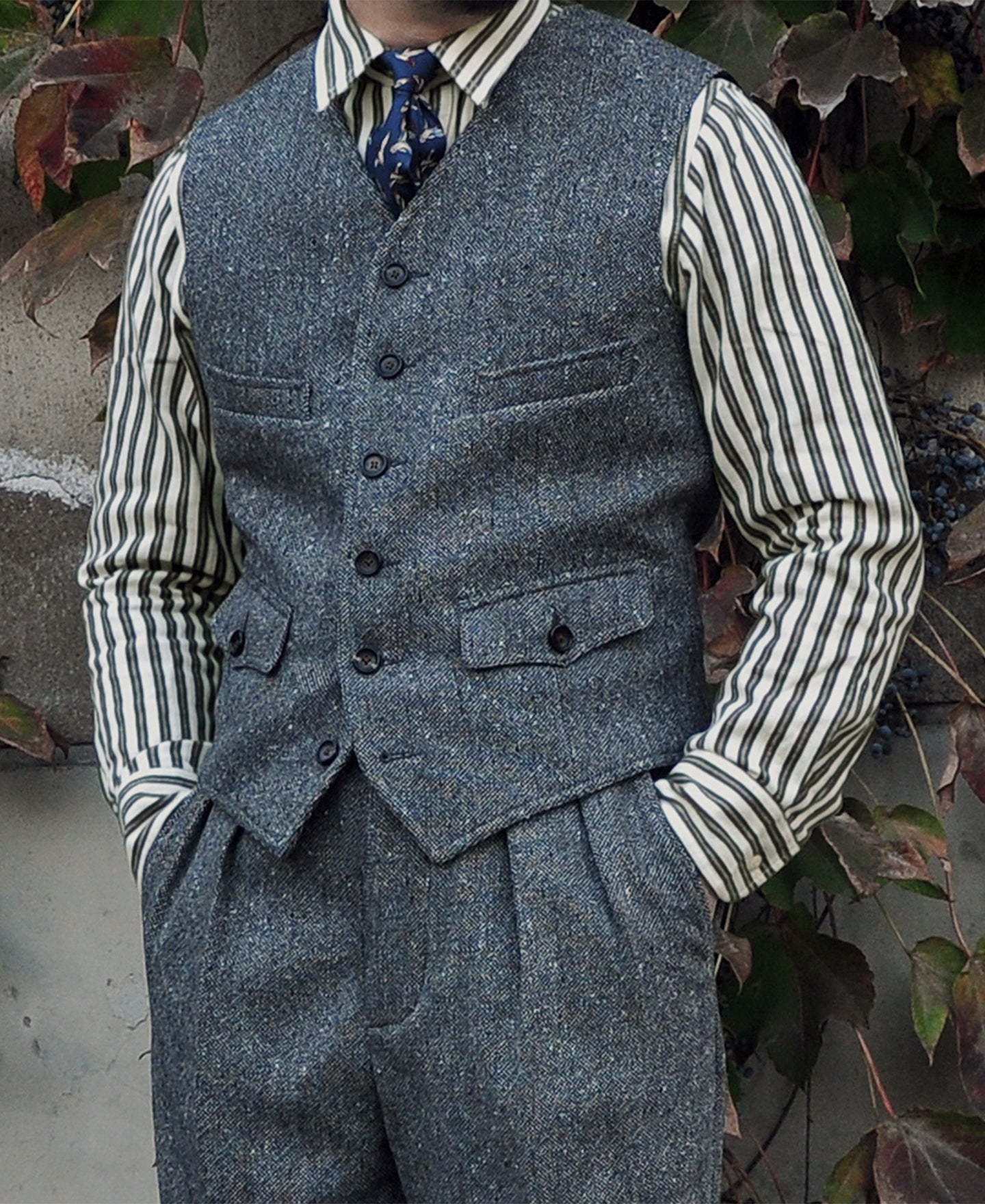 19세기 후반부터 20세기 초반 영국과 미국의 사냥 조끼에서 영감을 받아 실용성을 최우선으로 한 조끼입니다. 전통적인 조끼는 뒷면에 대비되고 저렴한 소재를 사용했지만 이 유형은 스타일과 기능의 균형을 유지합니다. 애뉴얼링은 전체적으로 따뜻하고 내구성이 뛰어난 원단을 사용했으며, 여러 개의 대형 포켓이 있어 편리합니다.