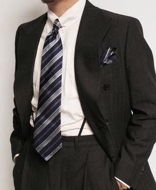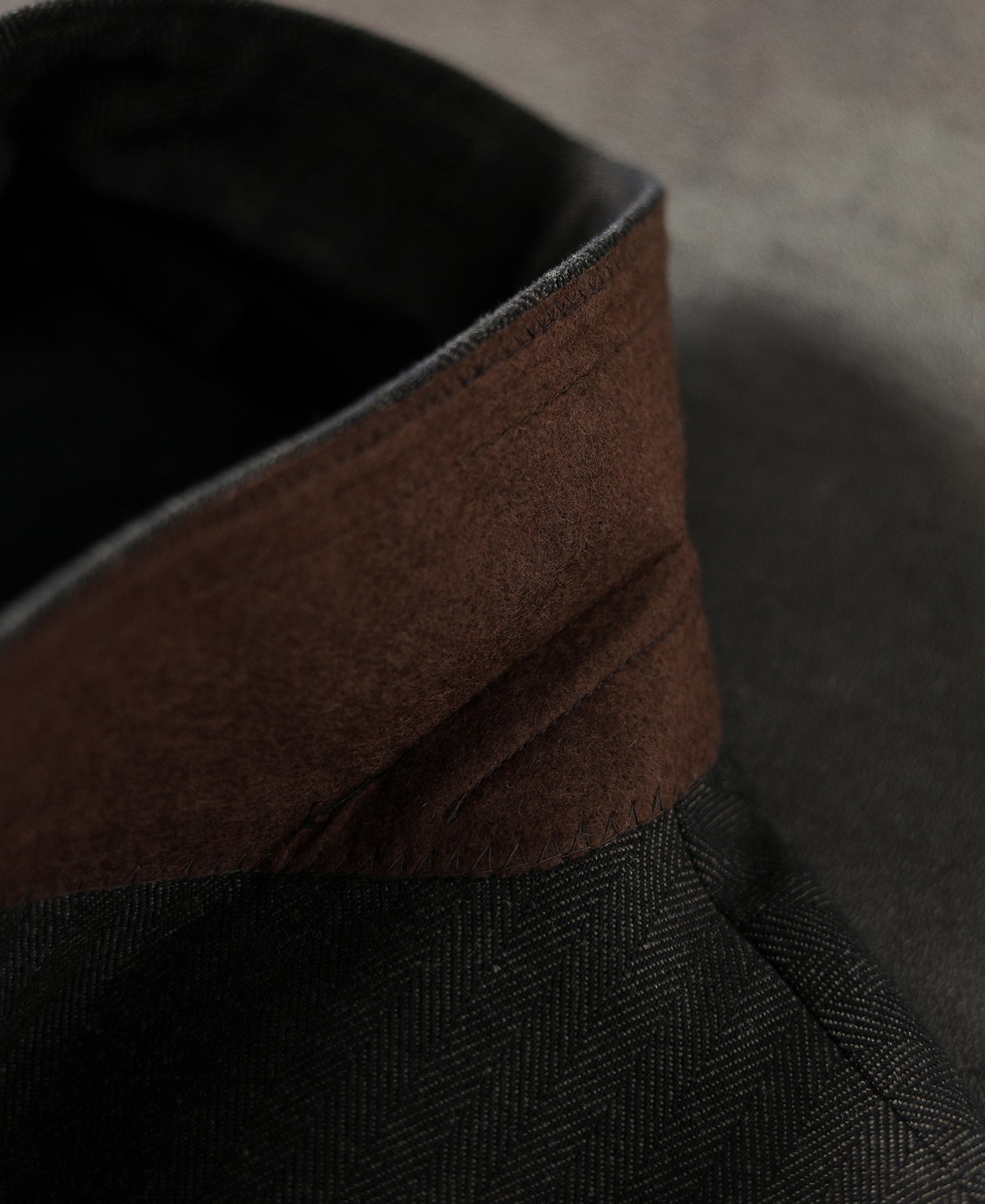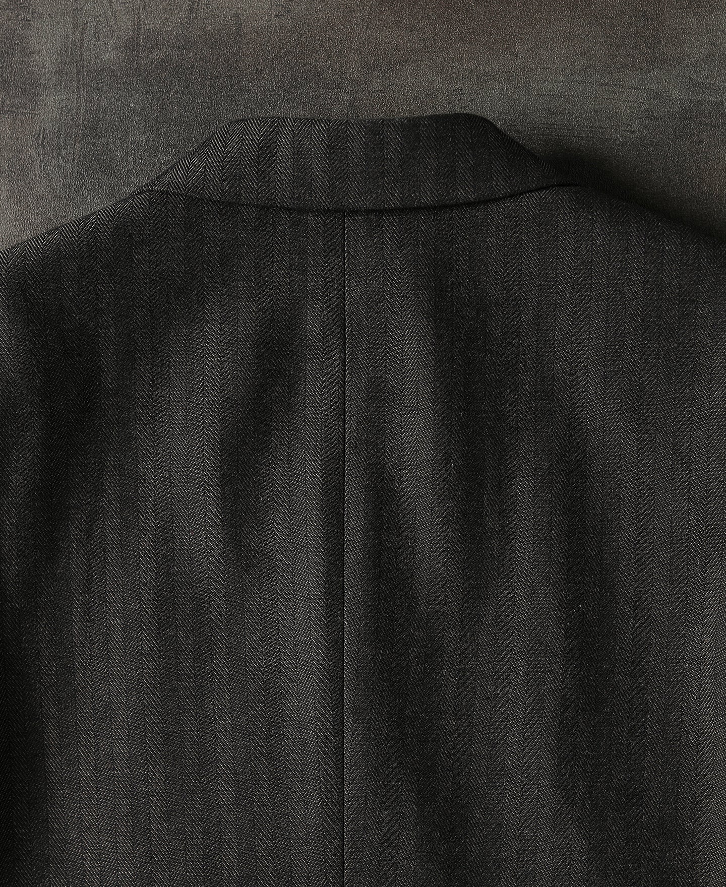 • 뒷트임 없이 약간 짧고 풍성한 핏이 특징이며, 넓은 피크 라펠이 독특한 분위기를 자아냅니다. 이러한 요소들이 어우러져 1940년대 예술가와 정치인들이 입었던 정장을 연상시키는 구조적인 룩을 완성하는 동시에, 매끈하고 깔끔한 핏을 원하는 현대인들의 요구를 충족합니다. 테일러드 팬츠와 함께 단독으로 스타일링하여 다재다능하게 활용할 수 있습니다.