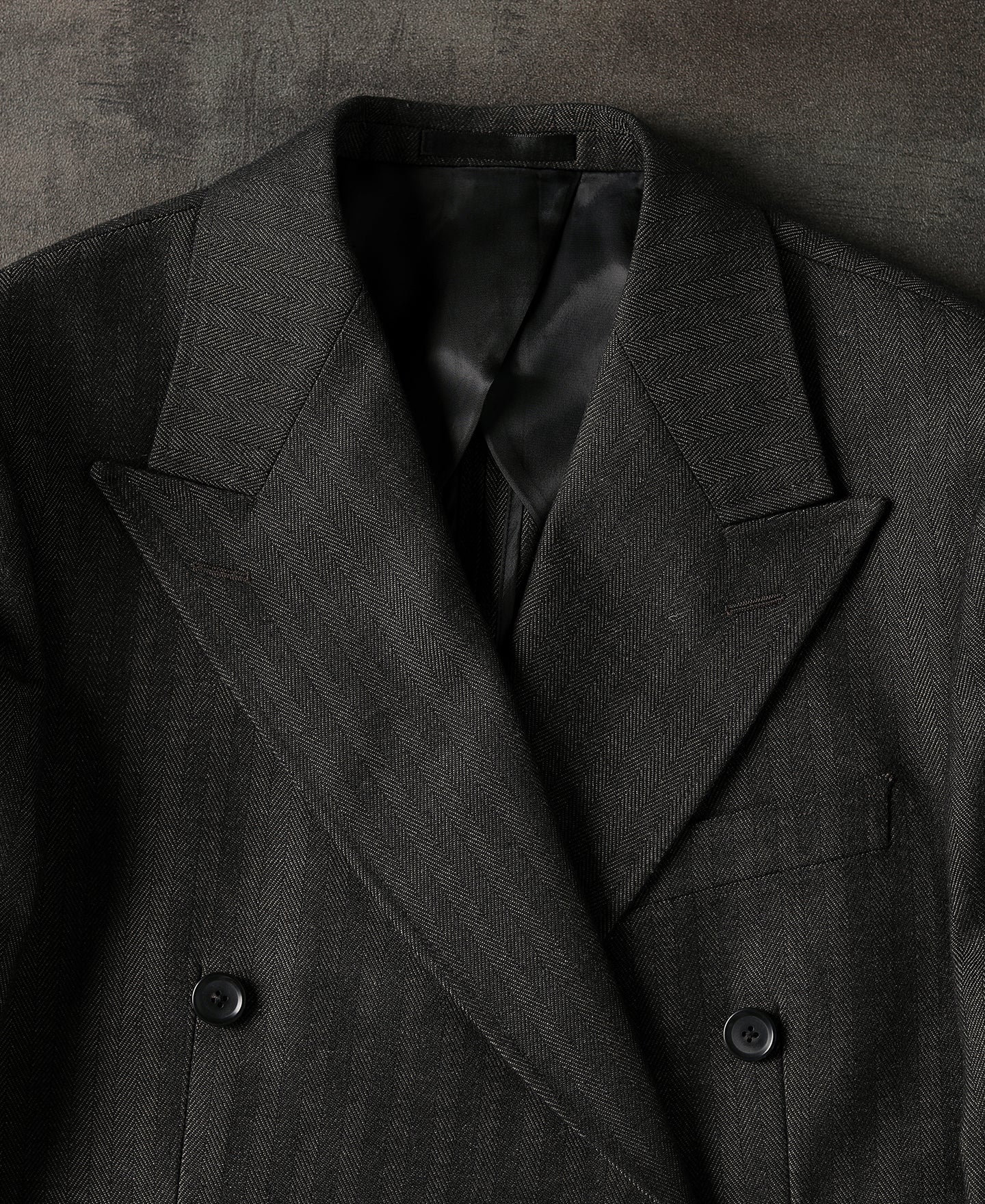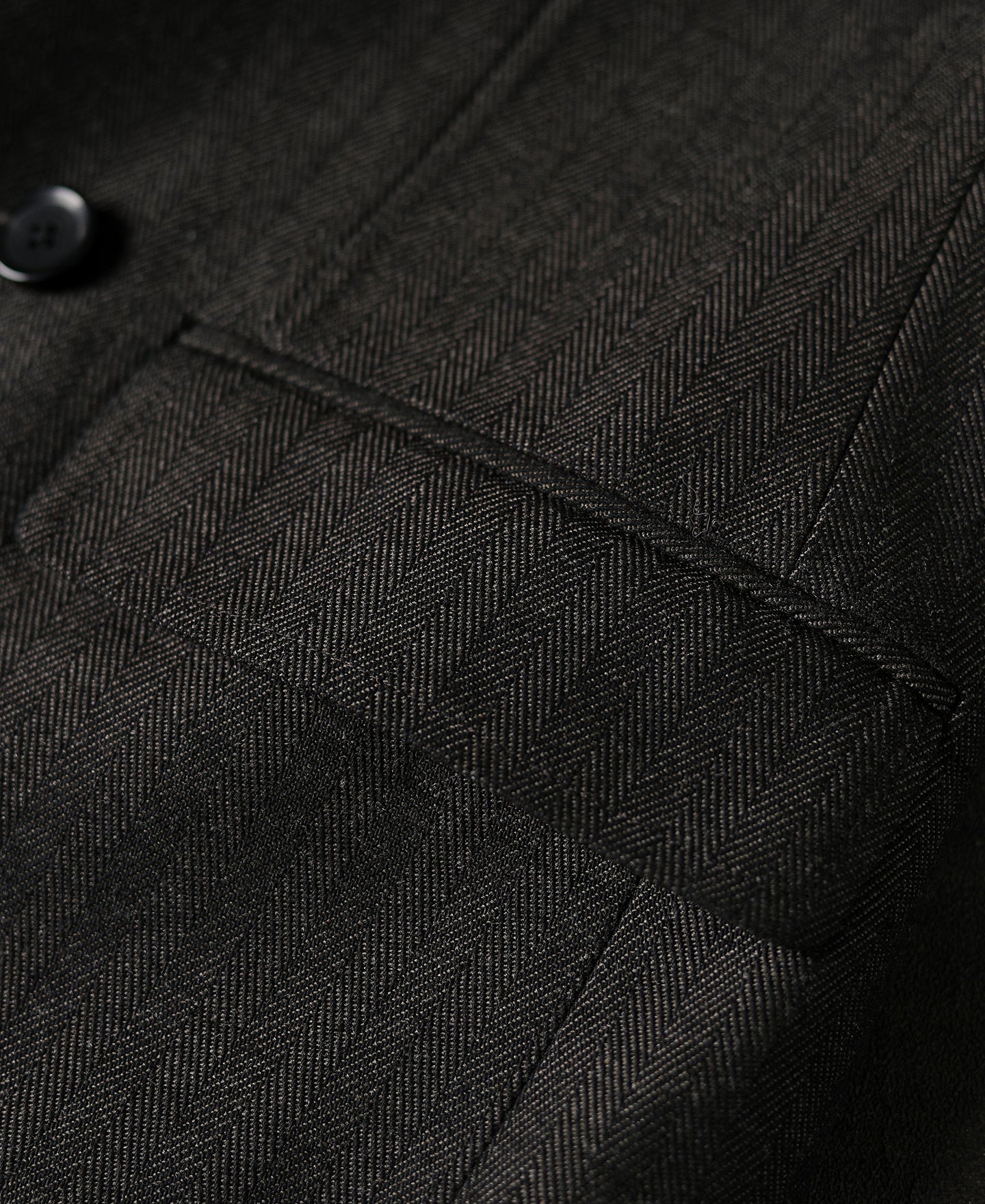 뒷트임 없이 약간 짧고 풍성한 핏이 특징이며, 넓은 피크 라펠이 독특한 분위기를 자아냅니다. 이러한 요소들이 어우러져 1940년대 예술가와 정치인들이 입었던 정장을 연상시키는 구조적인 룩을 완성하는 동시에, 매끈하고 깔끔한 핏을 원하는 현대인들의 요구를 충족합니다. 테일러드 팬츠와 함께 단독으로 스타일링하여 다재다능하게 활용할 수 있습니다.