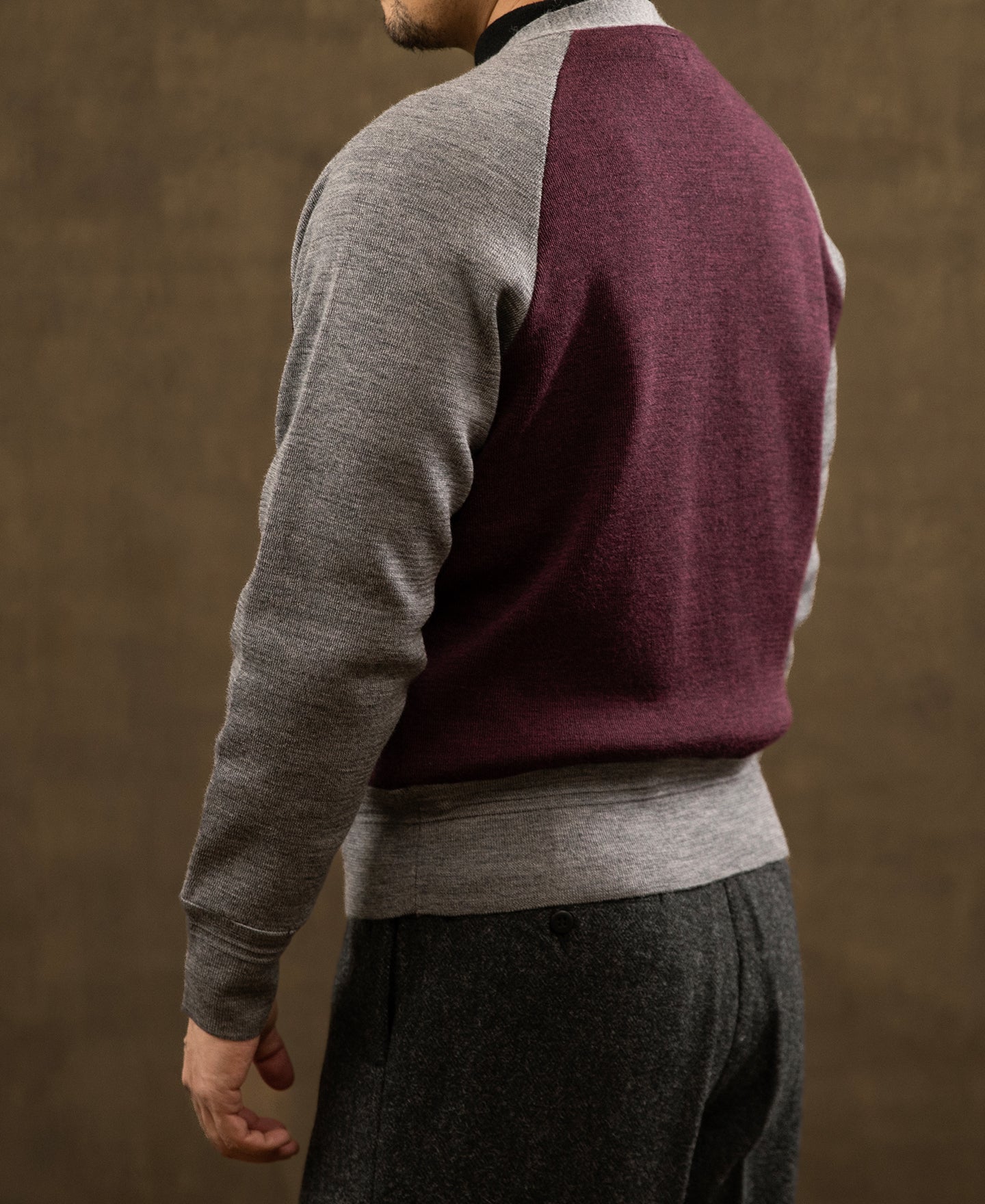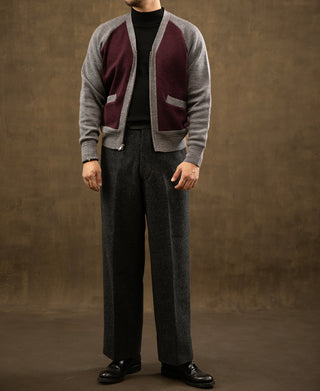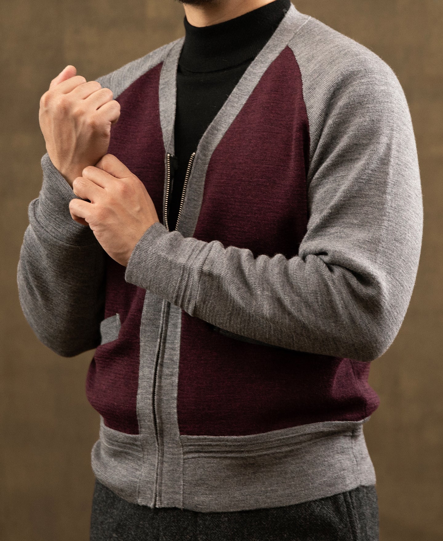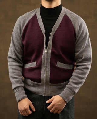 Lot 913 1940년대 대비 울 카디건 - 와인 레드/그레이