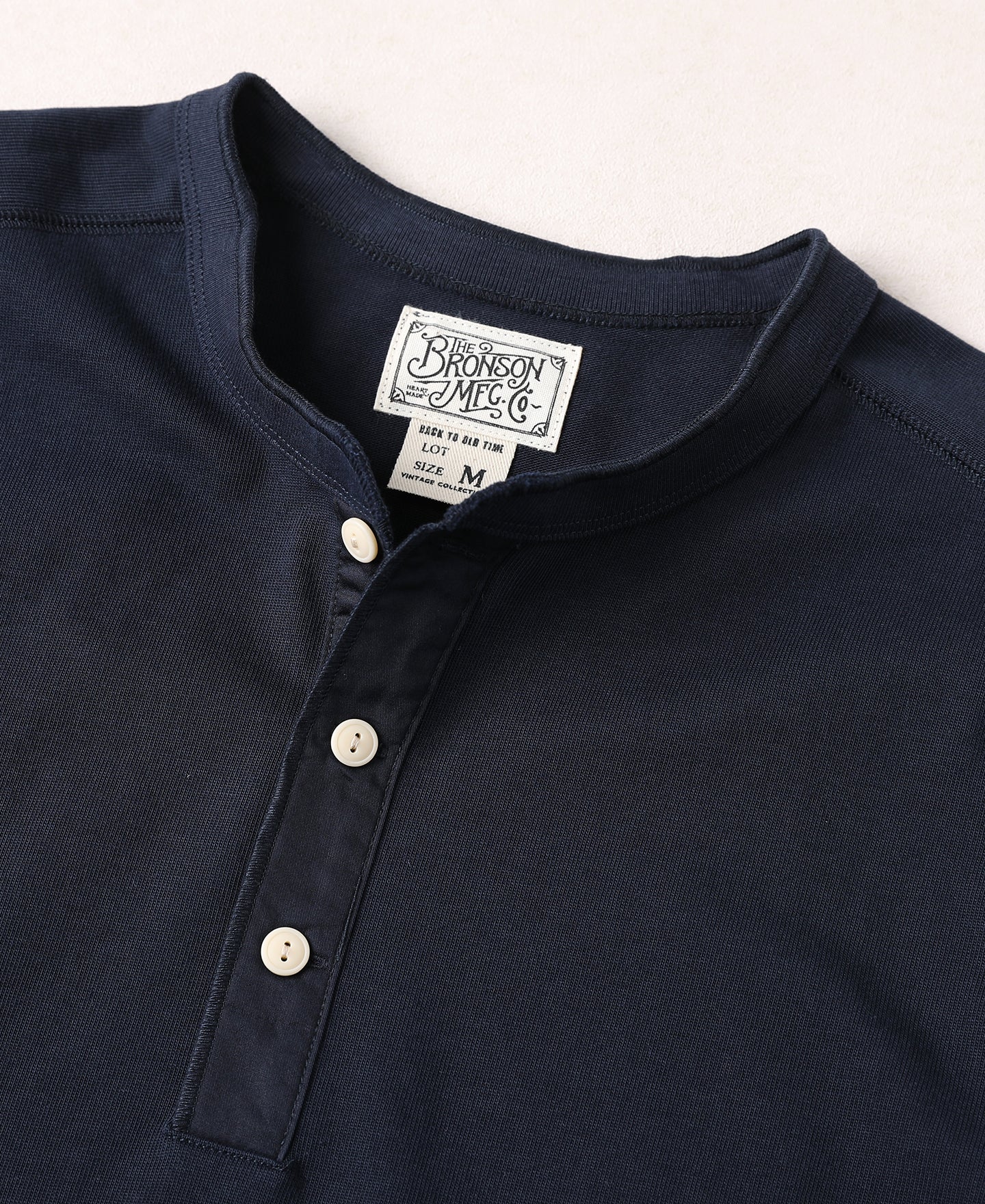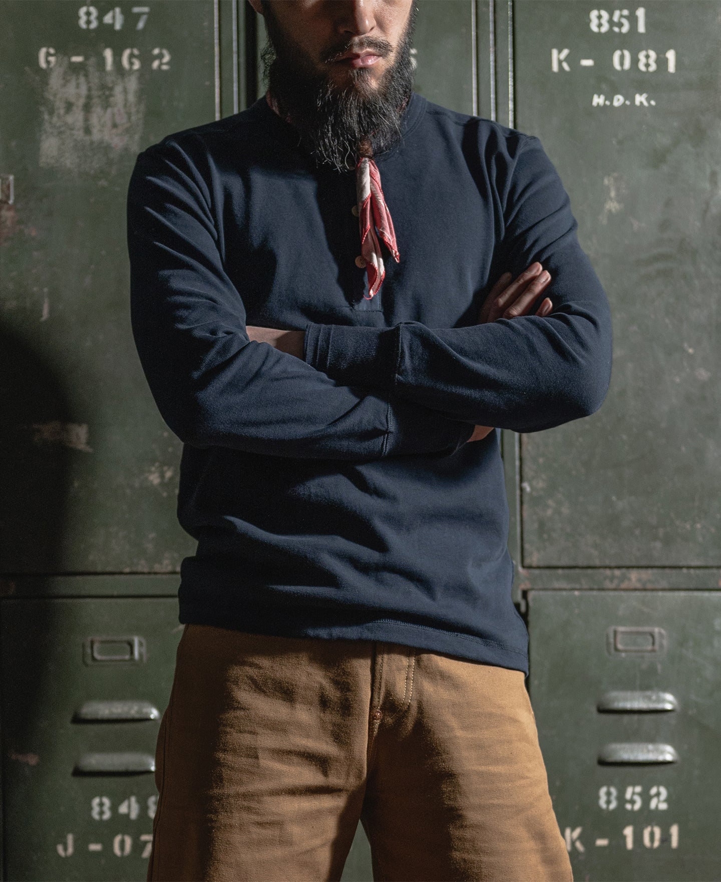 빈티지 긴팔 헨리 셔츠 - 네이비