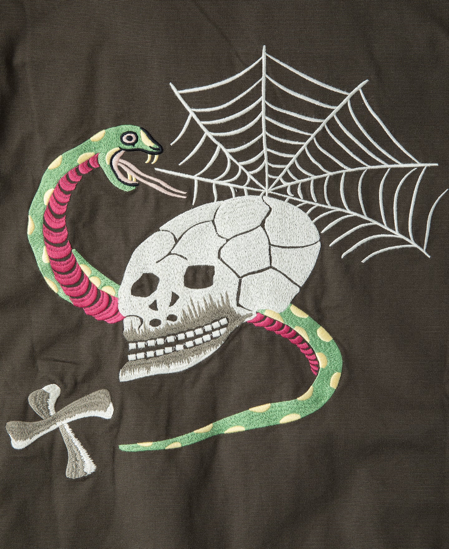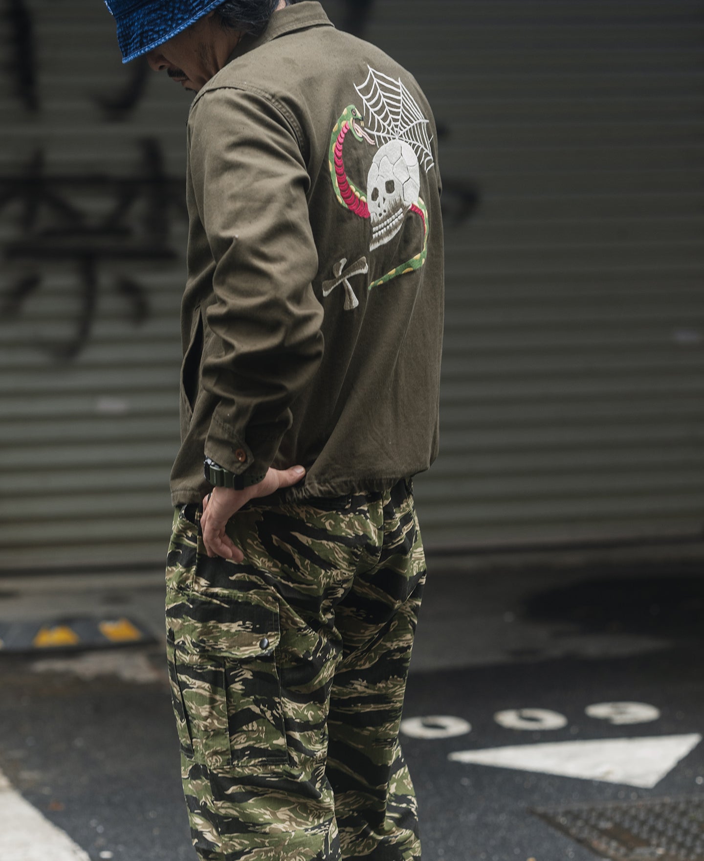스카잔(suka-jan)이라고도 알려진 기념품 재킷은 전후 일본 점령 시대까지 거슬러 올라가는 활기차고 풍부한 역사를 가지고 있습니다. 해외에 주둔하는 군인들은 자신이나 사랑하는 사람을 위해 이 재킷을 만들고 현지 모티브와 이미지로 수를 놓아 기념품으로 집에 가져갈 것입니다.