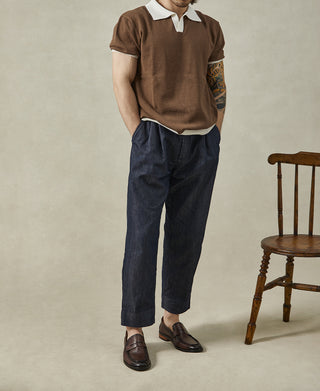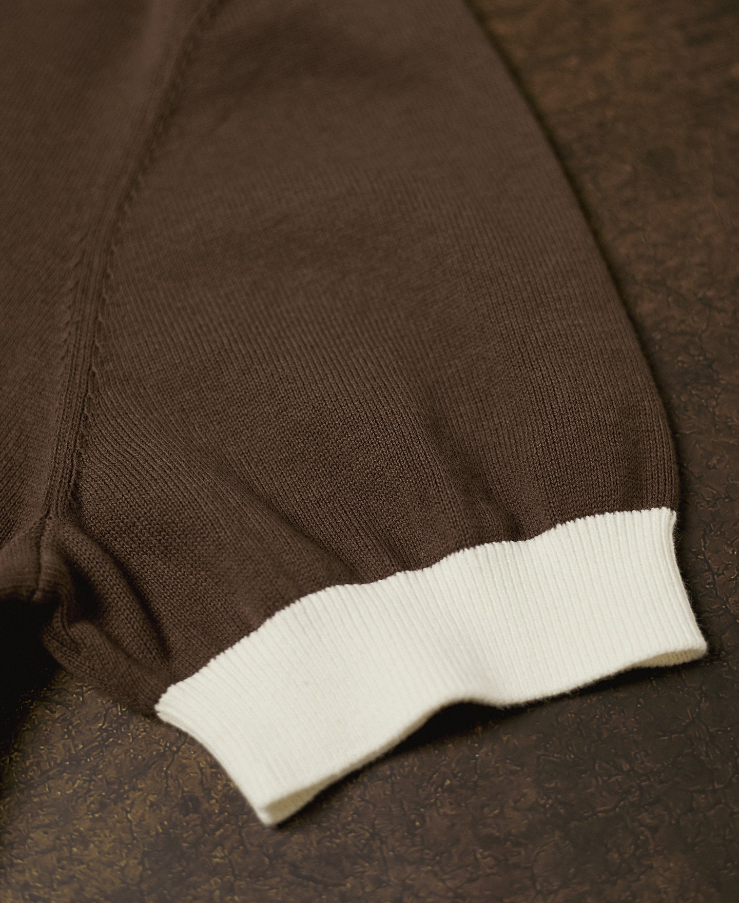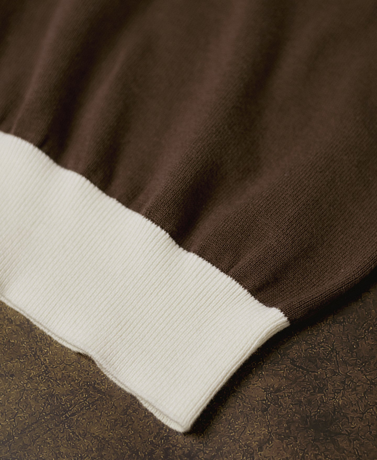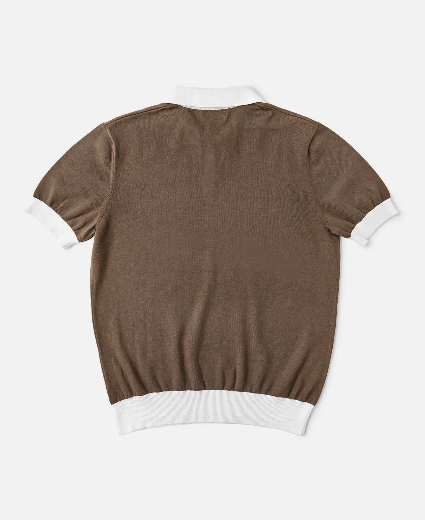 투톤 조니 칼라 코튼 폴로 셔츠 - 화이트/브라운