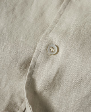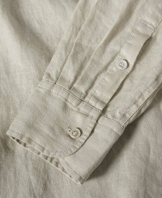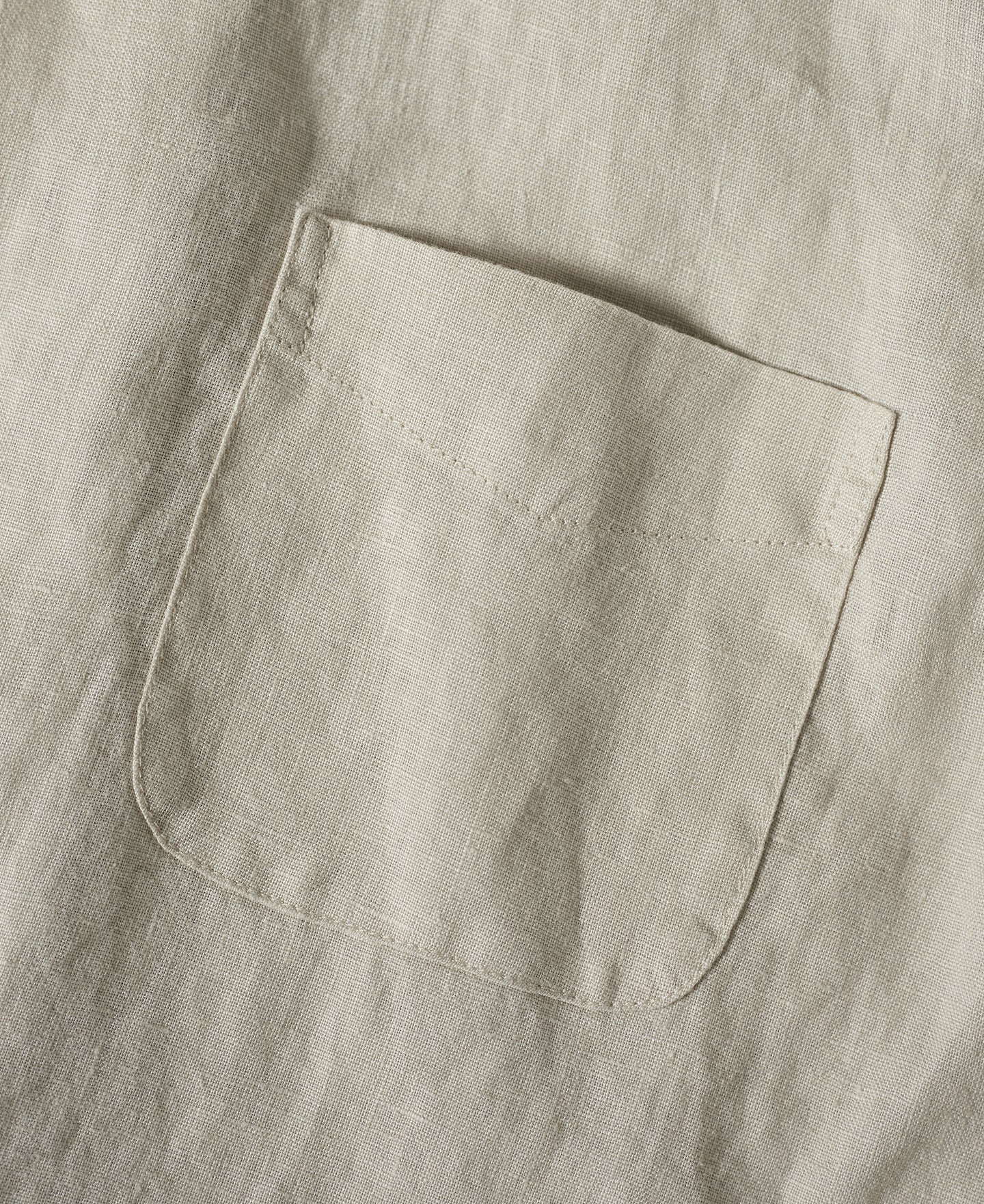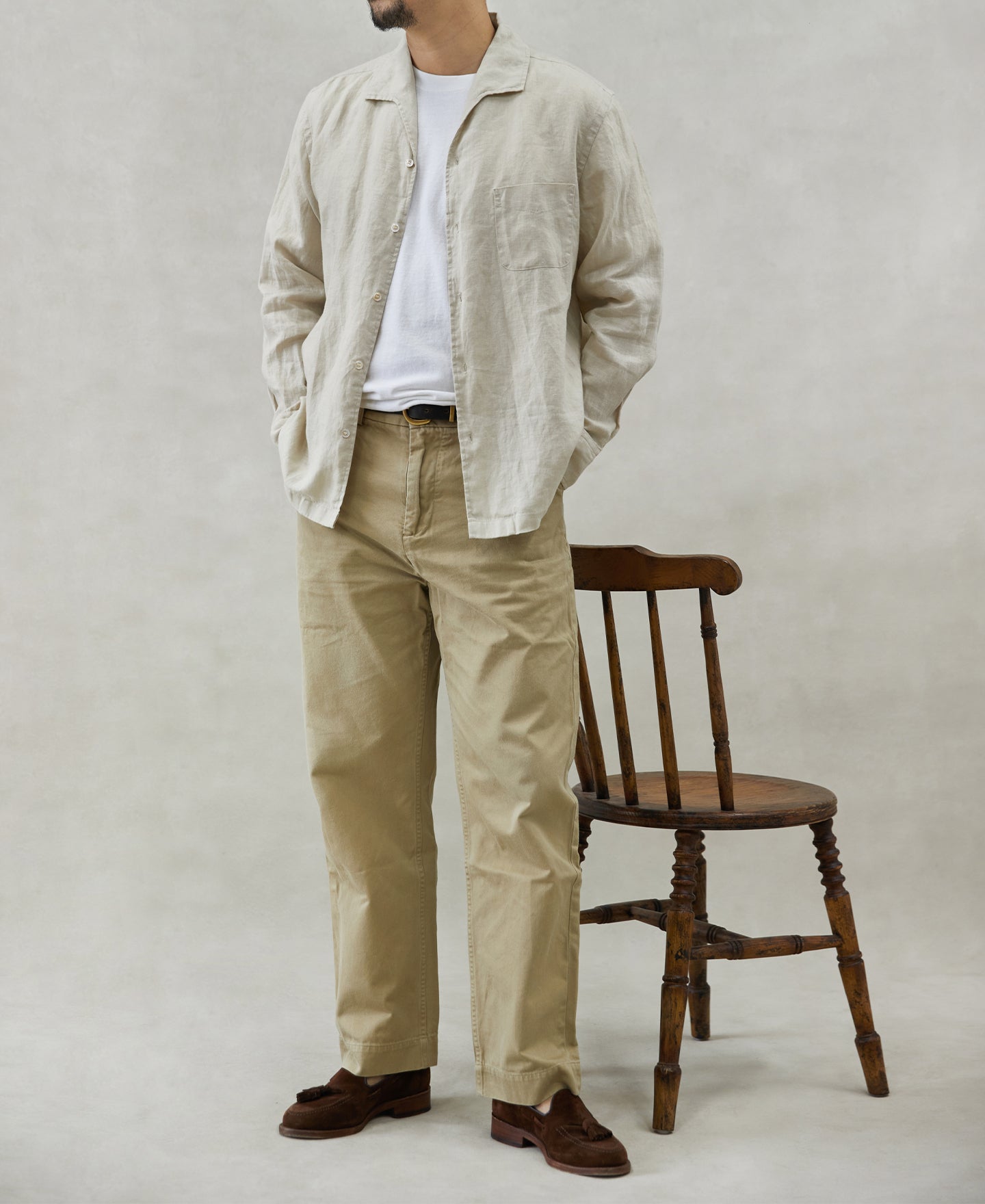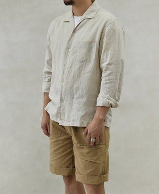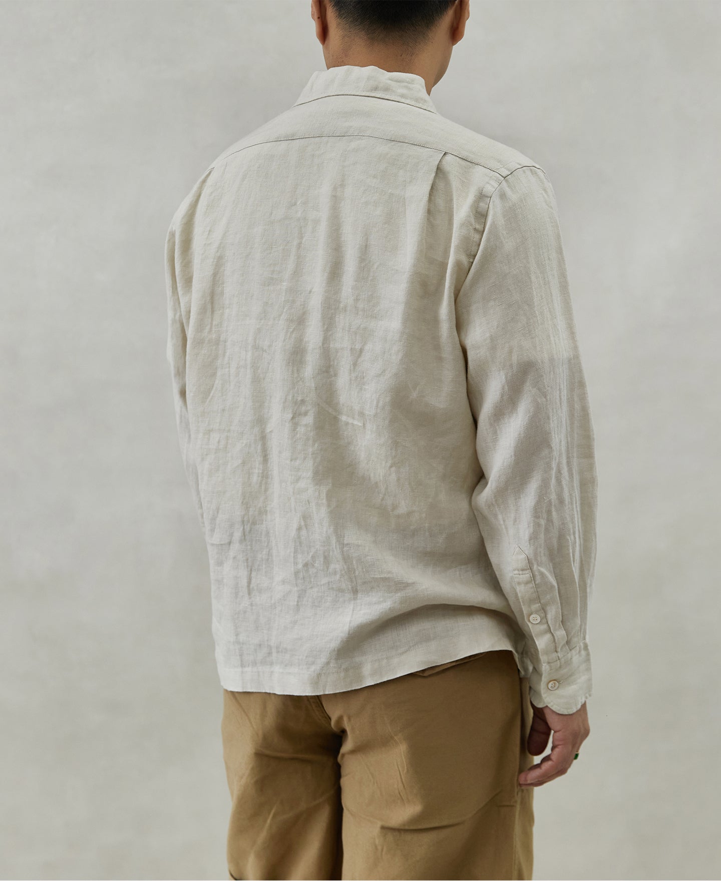 • This long-sleeve shirt takes inspiration from Time Catcher's popular short-sleeve version introduced last year, which drew from the 1950s Italian collar shirt style. It features a regular fit complemented by a classic one-piece collar. Crafted from linen, it offers both comfort and a natural aesthetic. Shell buttons add a harmonious touch, while the reinforced collar ensures stability. The linen fabric feels crisp yet cozy, and its vintage appeal will only grow with wear and wash.