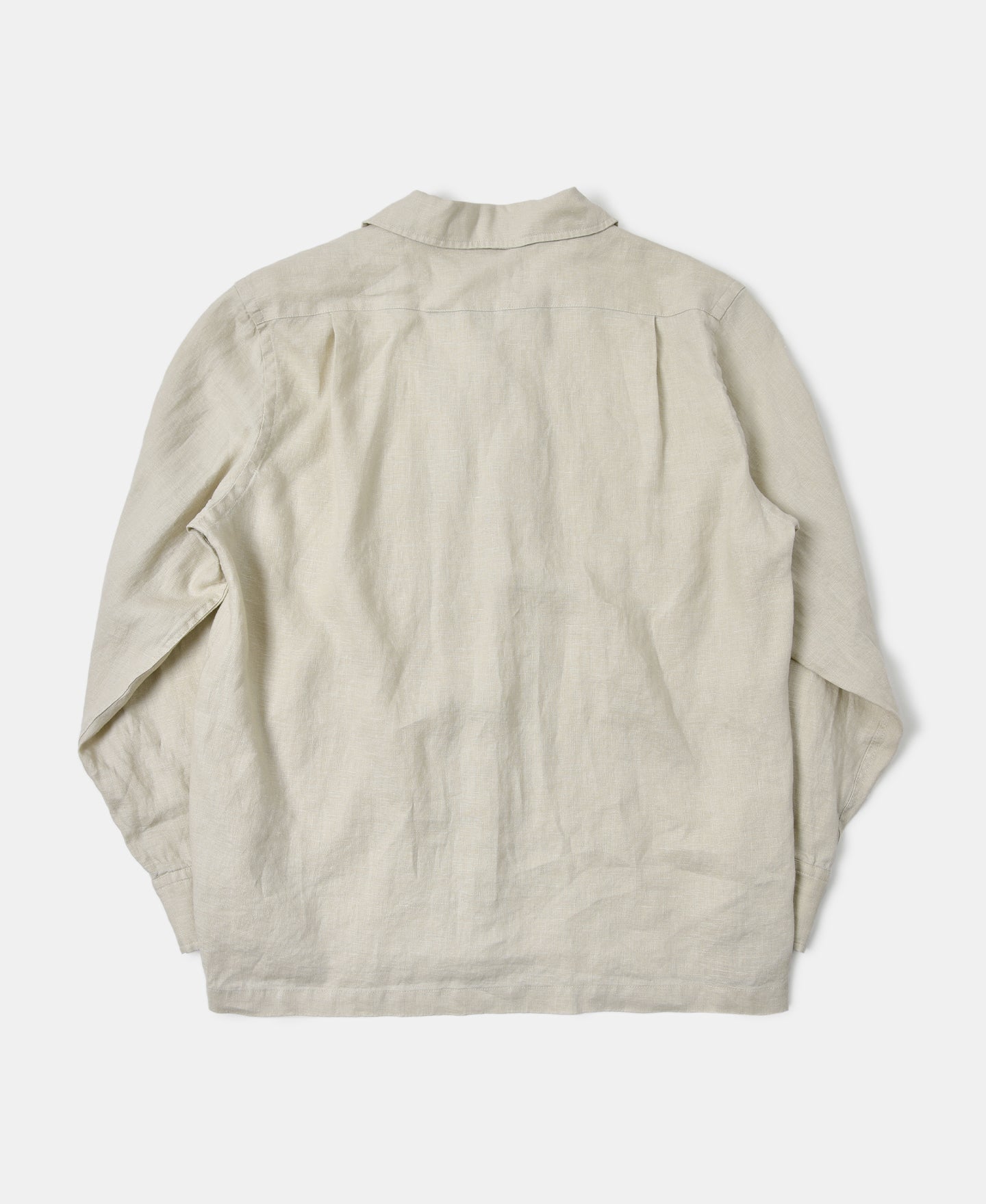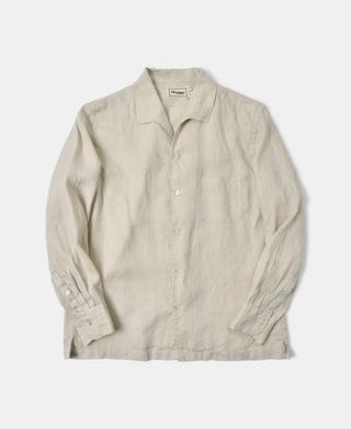 This long-sleeve shirt takes inspiration from Time Catcher's popular short-sleeve version introduced last year, which drew from the 1950s Italian collar shirt style. It features a regular fit complemented by a classic one-piece collar. Crafted from linen, it offers both comfort and a natural aesthetic. Shell buttons add a harmonious touch, while the reinforced collar ensures stability. The linen fabric feels crisp yet cozy, and its vintage appeal will only grow with wear and wash.
