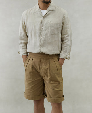1950s Italian Collar Long-Sleeve Linen Shirt - Apricot
