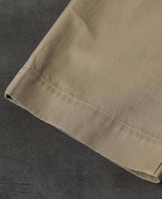 This pair of trousers is based on the 1950s U.S. Army issue chinos, but adopts a slightly tapered silhouette. It is tailored to fit at the thighs and gradually narrows from the knees, presenting a more modern fashion style, reminiscent of Steve McQueen in The Great Escape.