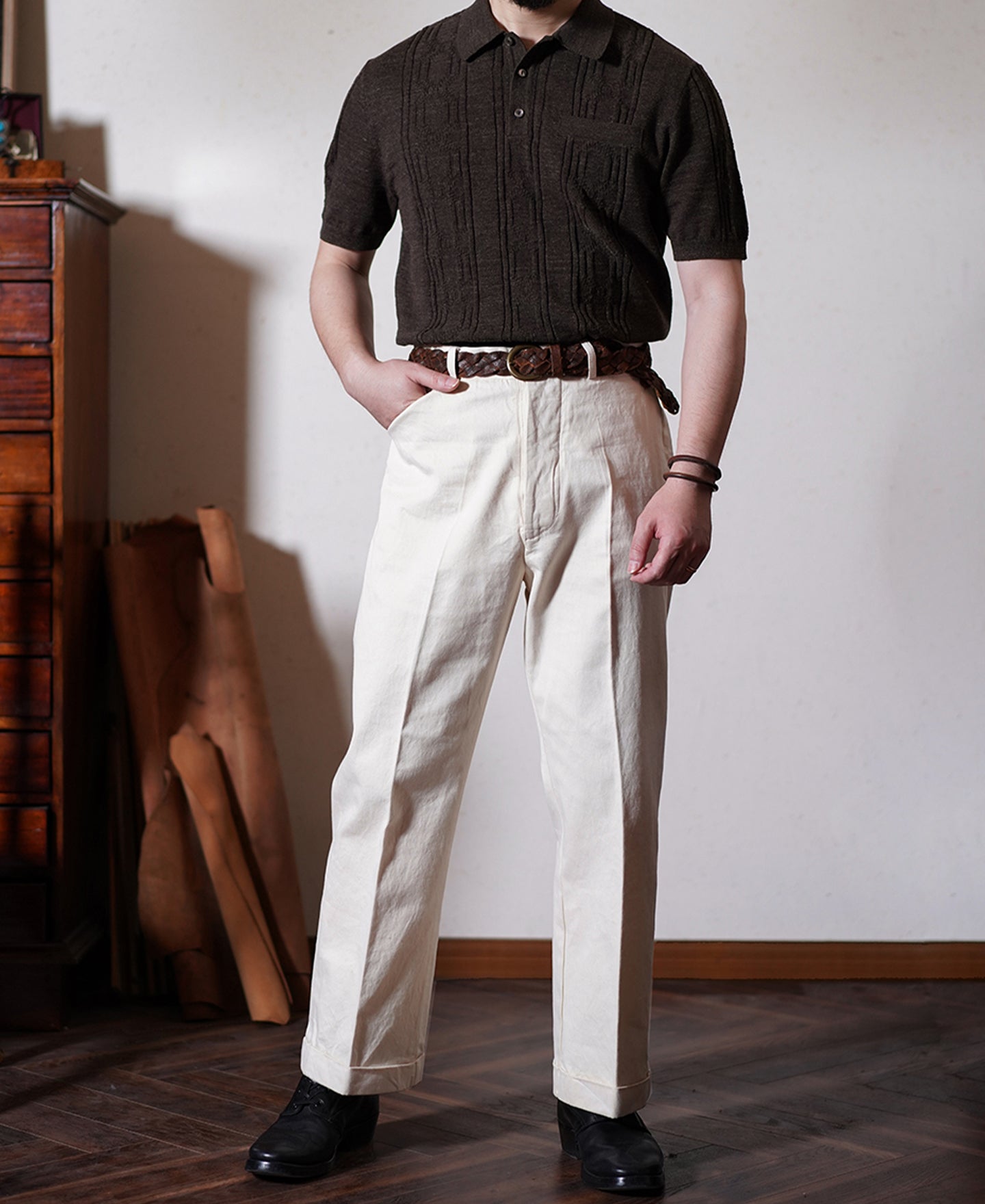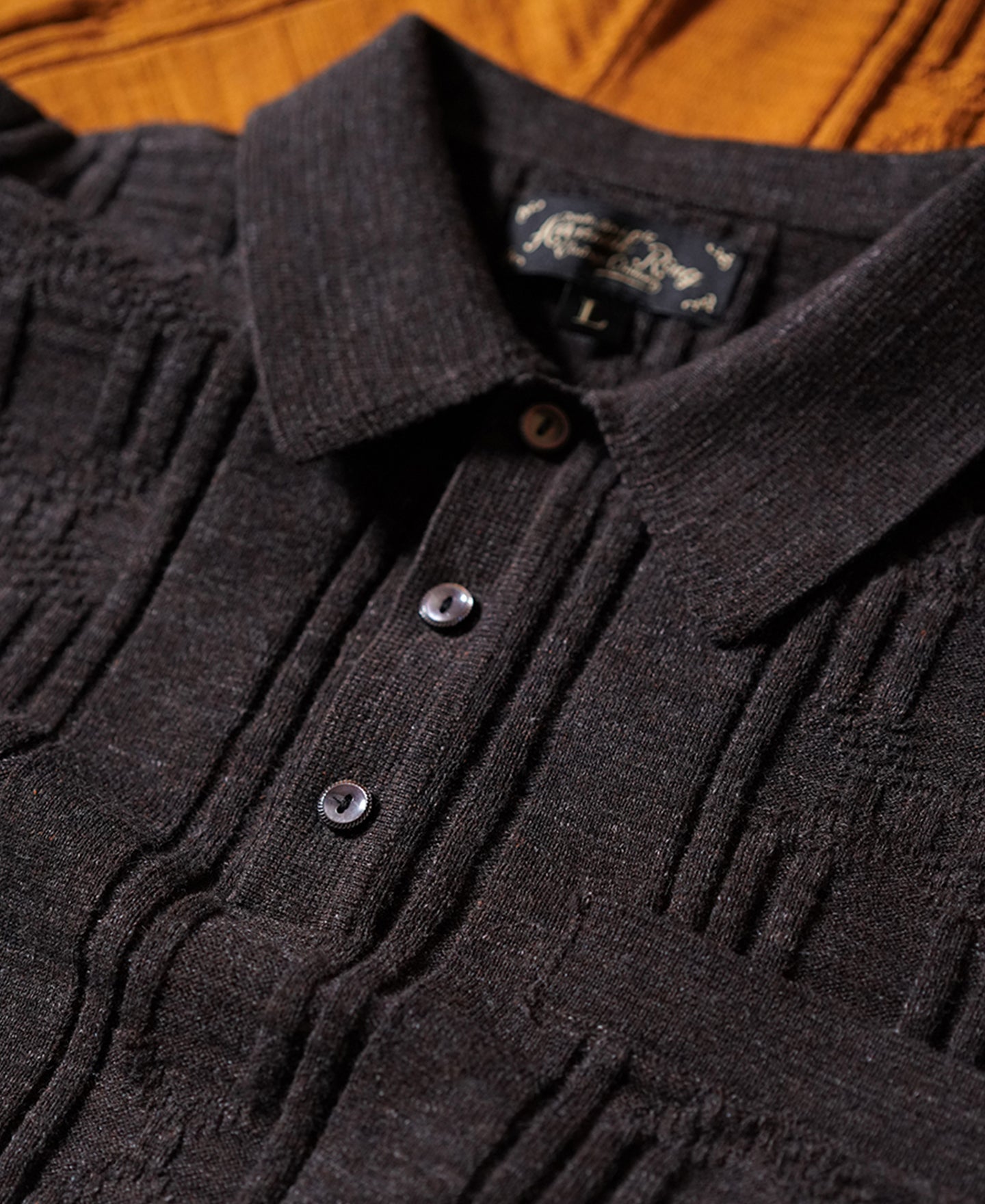 This polo was inspired by classic knitwear from the 60s and 70s. Retro chain-like patterns and a decorative chest pocket add a playful touch. Crafted with slub yarns for a soft yet structured feel, it ensures comfort and breathability. Each polo is meticulously finished with finely crafted mother-of-pearl buttons, available in contrasting black and white hues, adding an extra touch of refinement to this versatile piece.