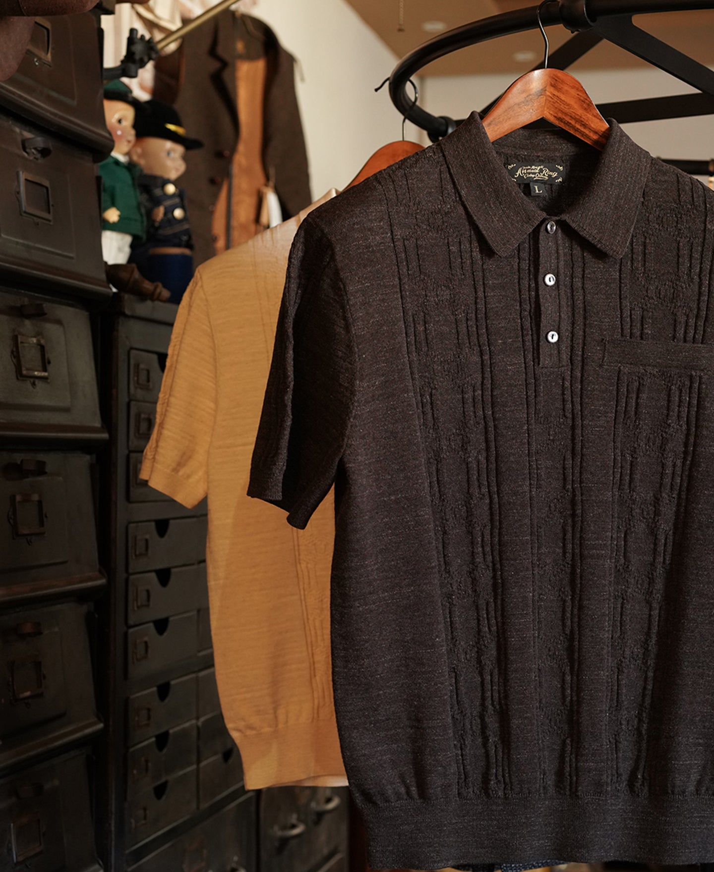 1960s Jacquard Slub Cotton Polo Shirt - Coffee