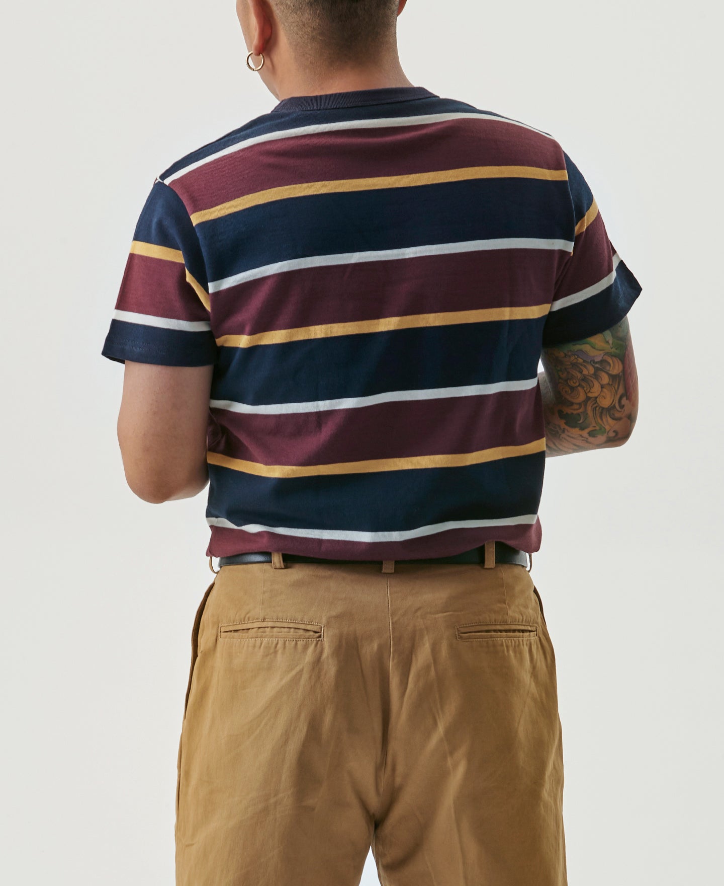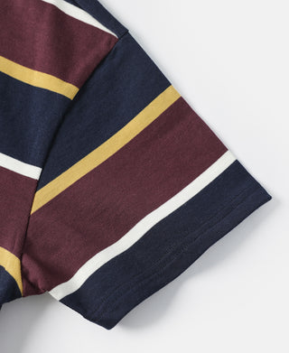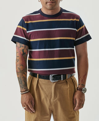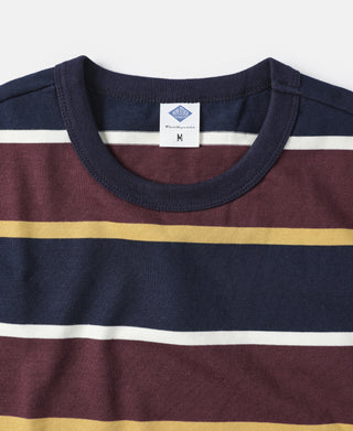 9.8 oz IVY Style Striped T-Shirt - Burgundy Red/Navy