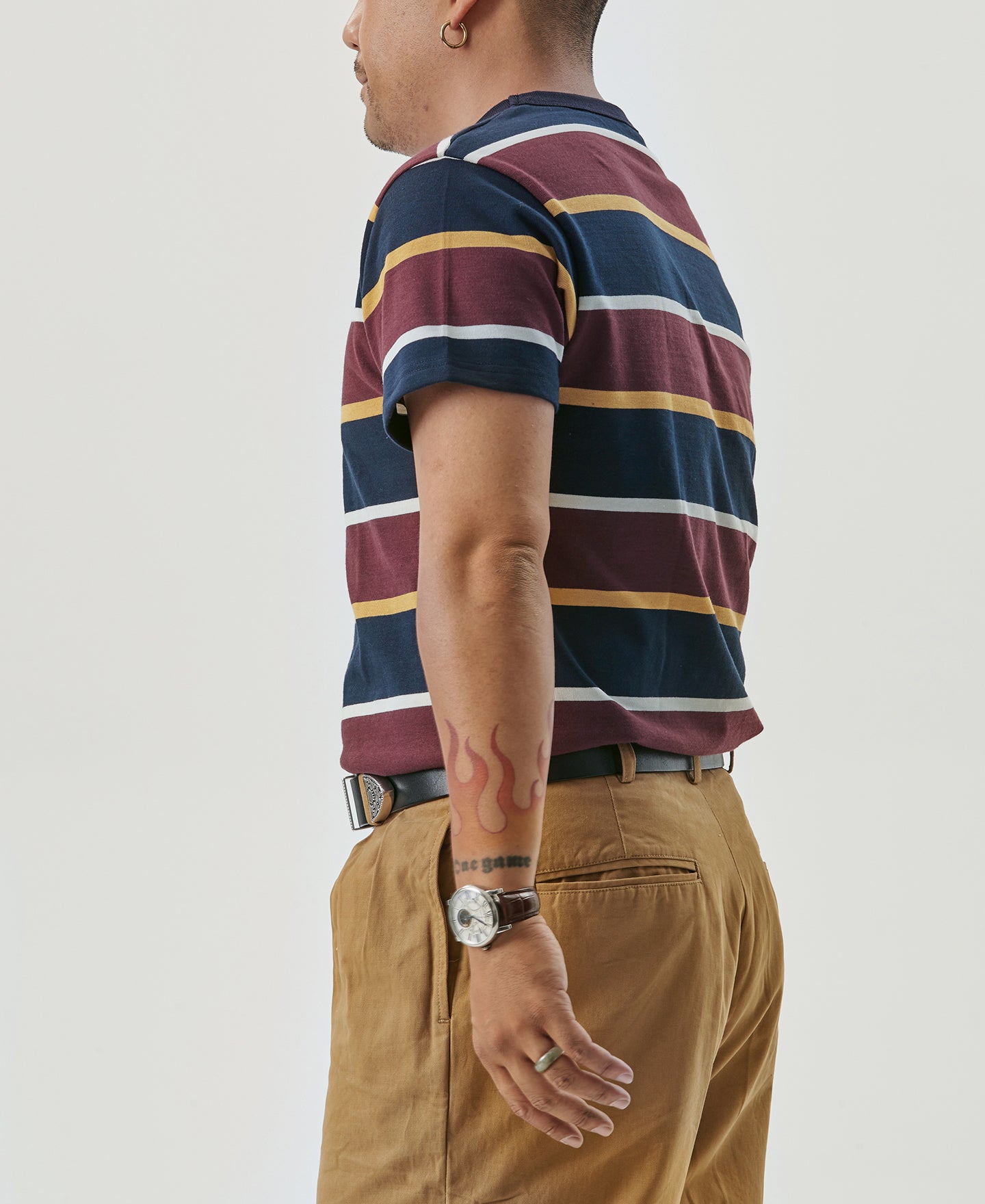 This is an IVY style stripe T-Shirt, made of 9.8 oz cotton, and uses the classic IVY style color scheme, the fabric texture is good, soft and comfortable.