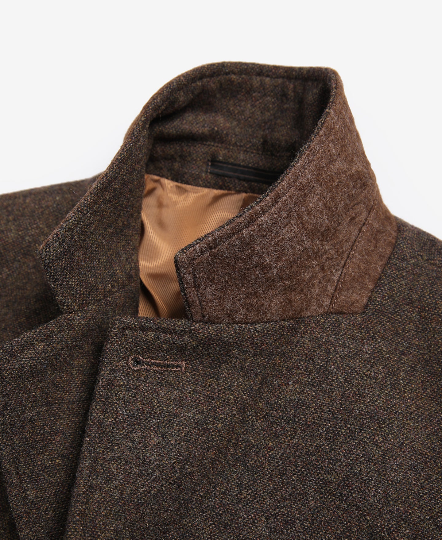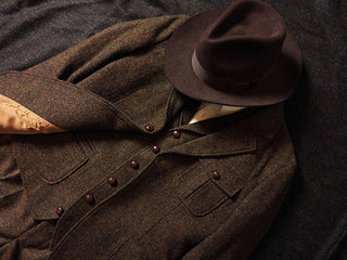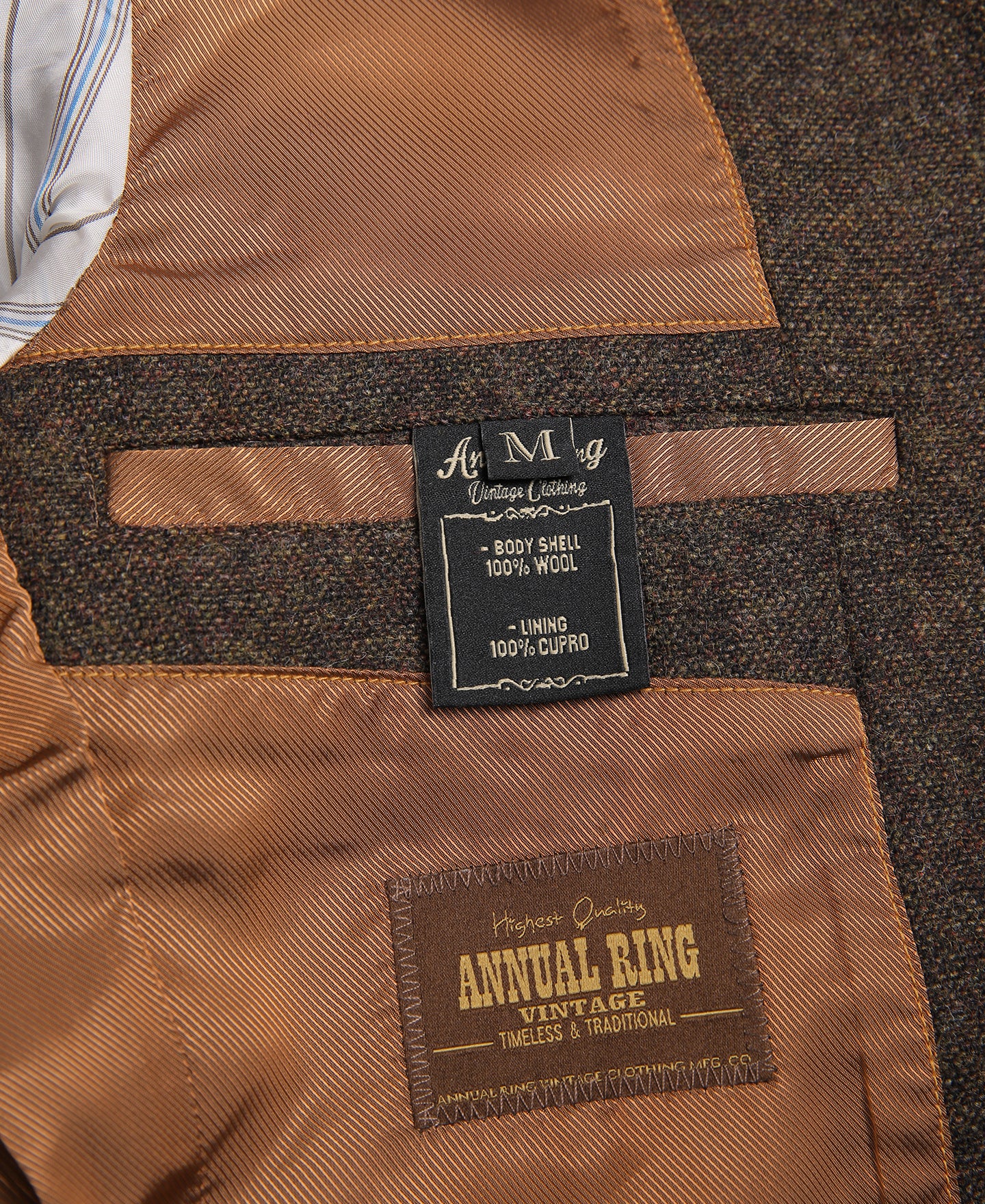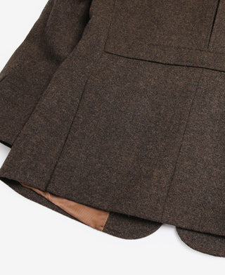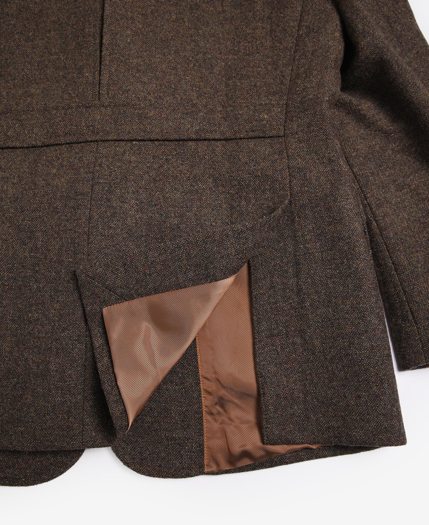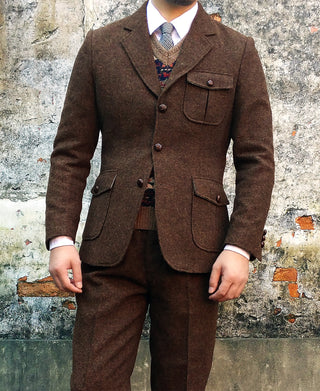 This Half Norfolk Jacket is made of 480g brown tweed (100% wool), and with hand-woven cowhide buttons. The lining is made of Japan Bemberg cuprammonium rayon.