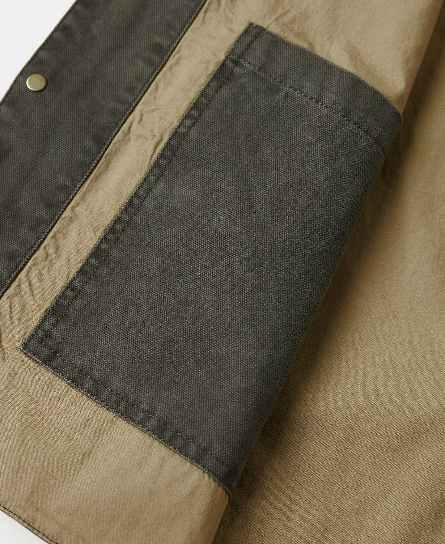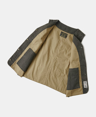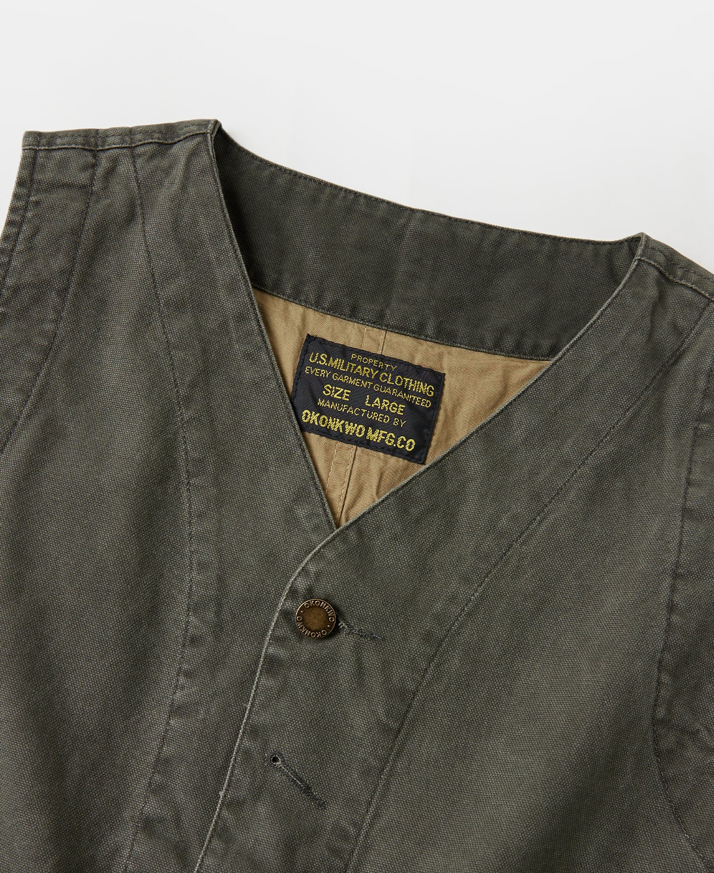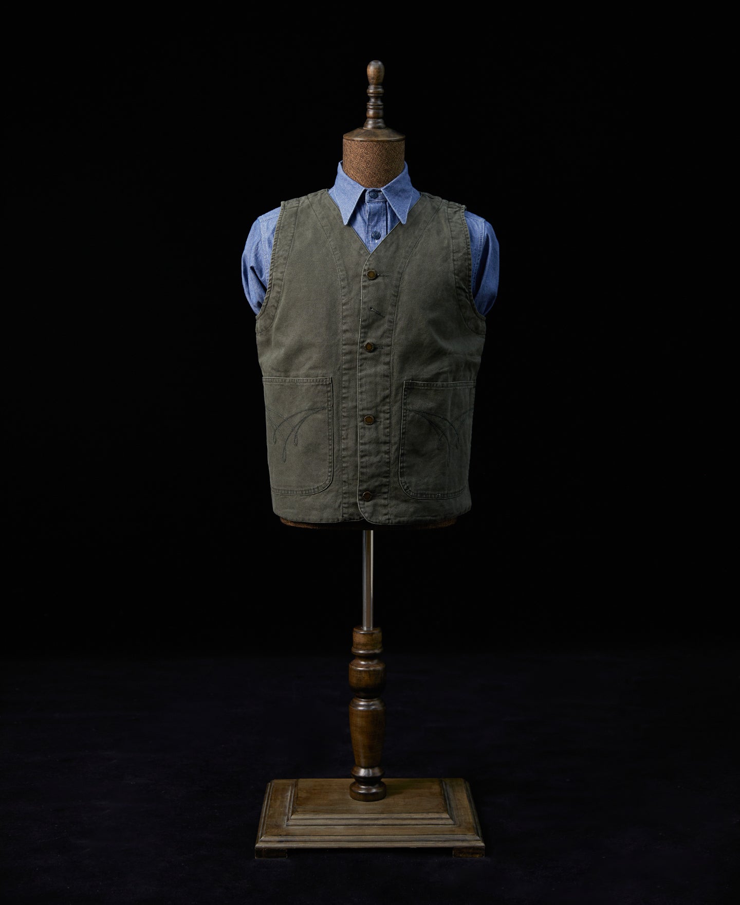 This workwear-inspired vest is made from 12oz high-density canvas. The fully lined interior, double-layered design features a V-neck and two waist patch pockets adorned with embroidery details. The back includes a signature adjustable buckle for a functional and timeless look.