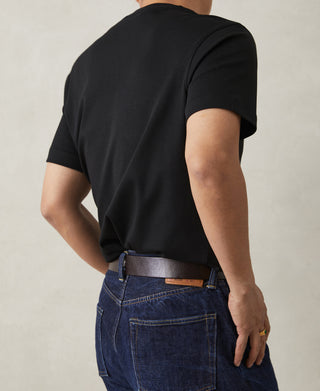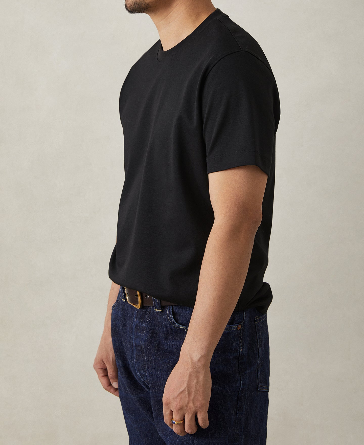 This tee is made from a blend of 17.0-micron Merino wool (7.7%), cotton (40.6%), plant-based origin Modal (32.5%), and eco-friendly DuPont Sorona fiber (19.2%), giving it a soft, smooth, and breathable feel. The fabric naturally resists odors and stays fresh, while also offering plenty of comfortable stretch to maintain its shape. The neckline, shoulders, armholes, and side seams are reinforced for extra durability, and the cuffs and hem feature a narrow double-needle finish.