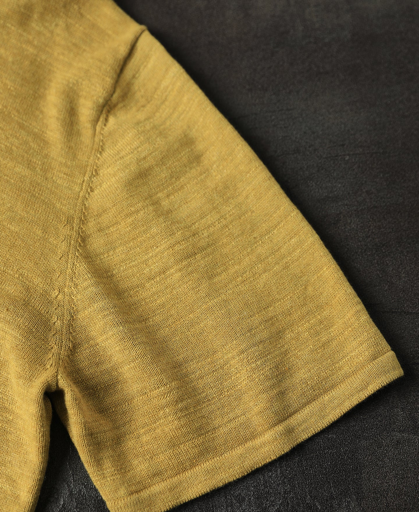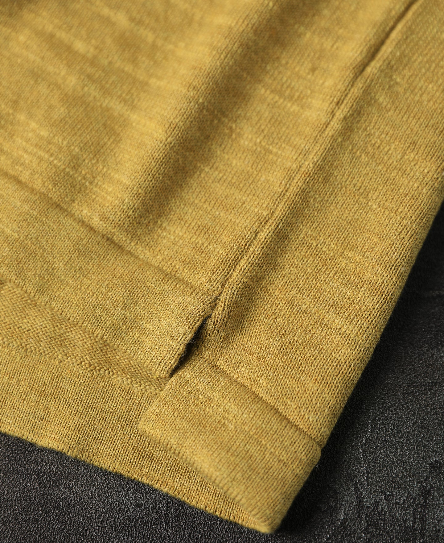 Crafted from custom-spun slub cotton yarn, this shirt is designed to be soft and skin-friendly. The collar features a single button for a clean, minimalist look that ensures a comfortable fit without feeling tight. This design aims to highlight a more elegant silhouette and a comfortable touch. The hem has side slits, and the back length is 1 inch longer than the front, creating a relaxed and naturally retro style.