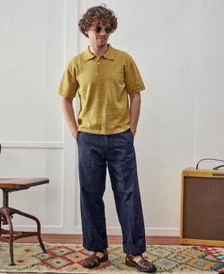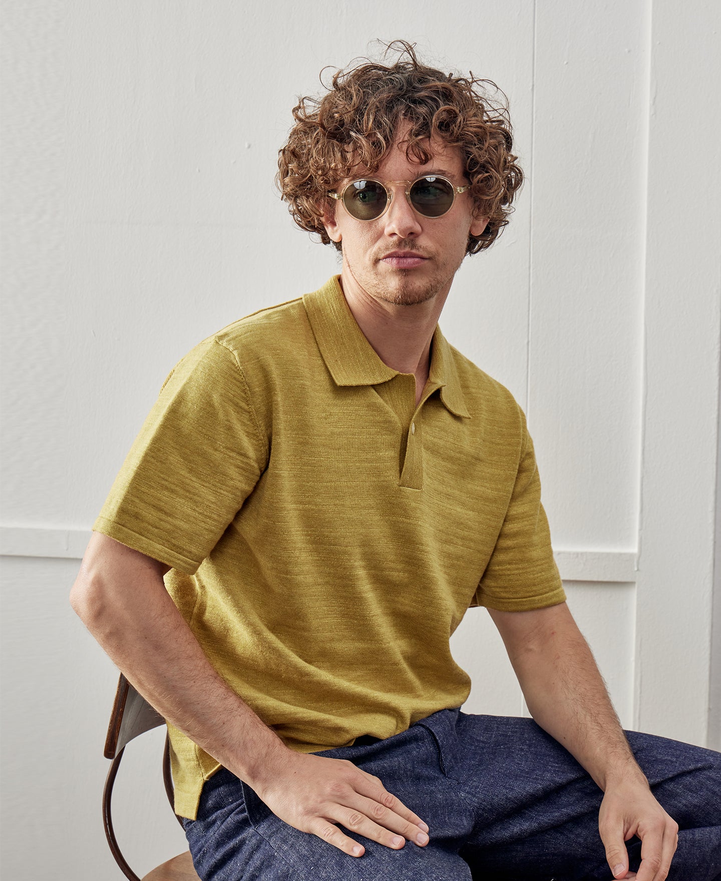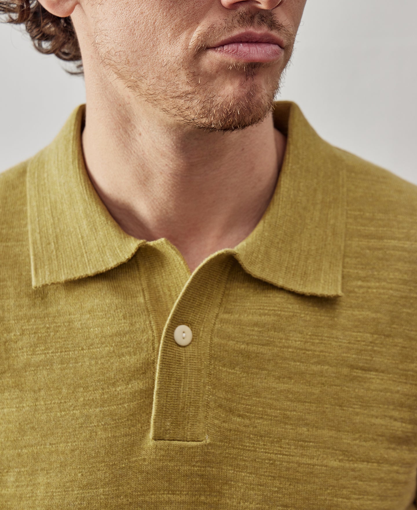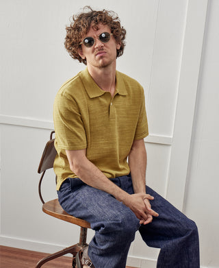High-low Hem Slub Cotton Polo Shirt - Gold