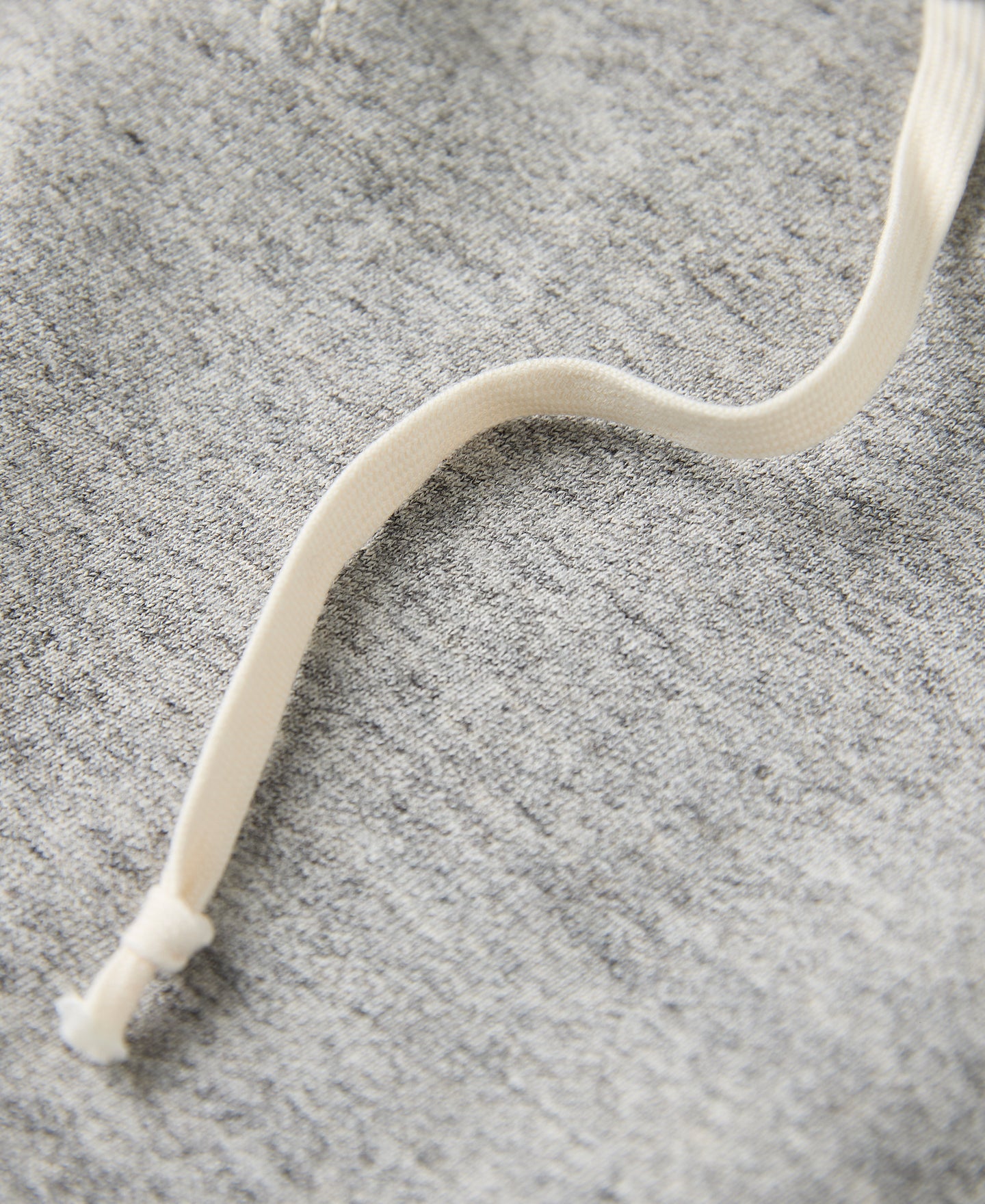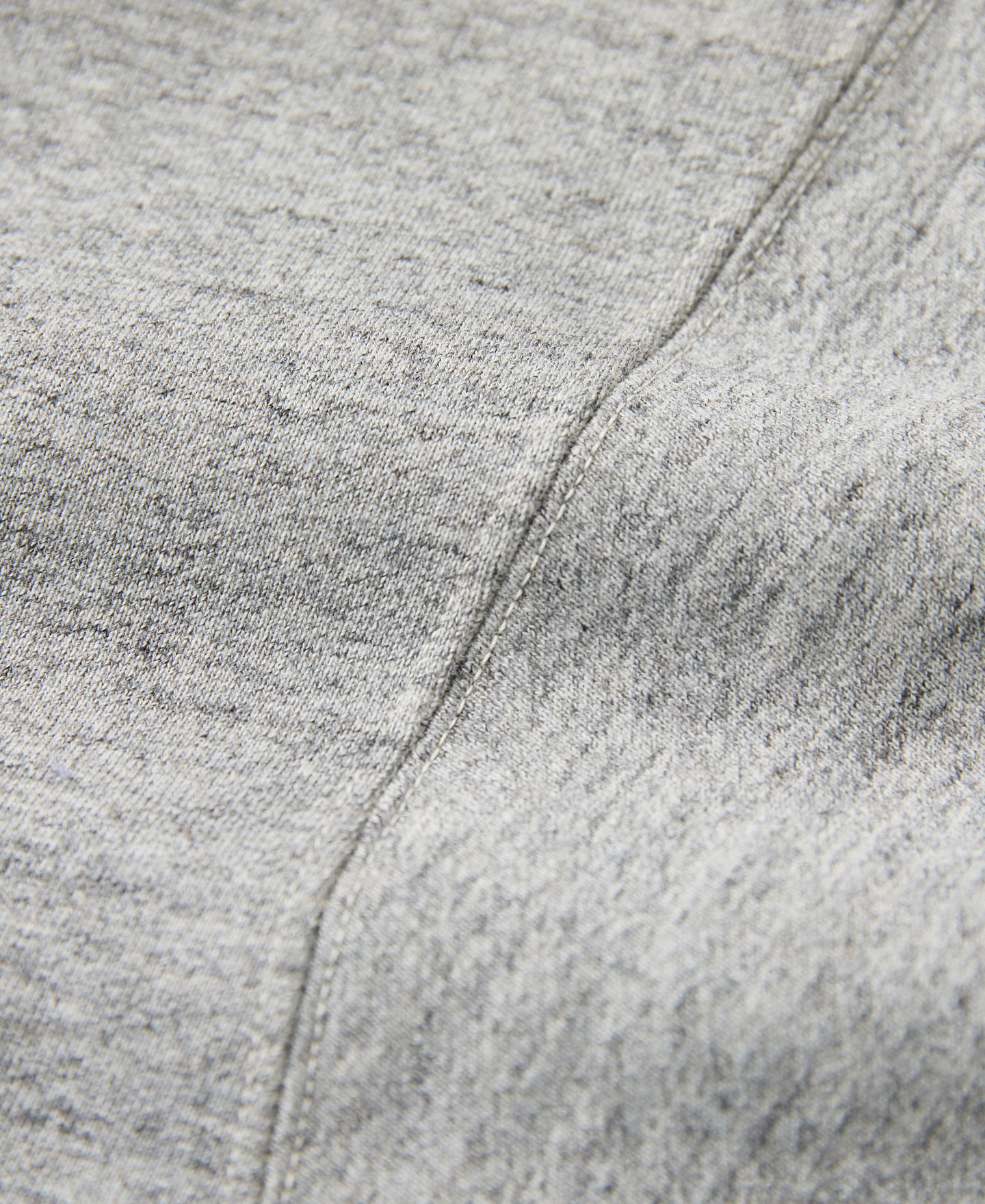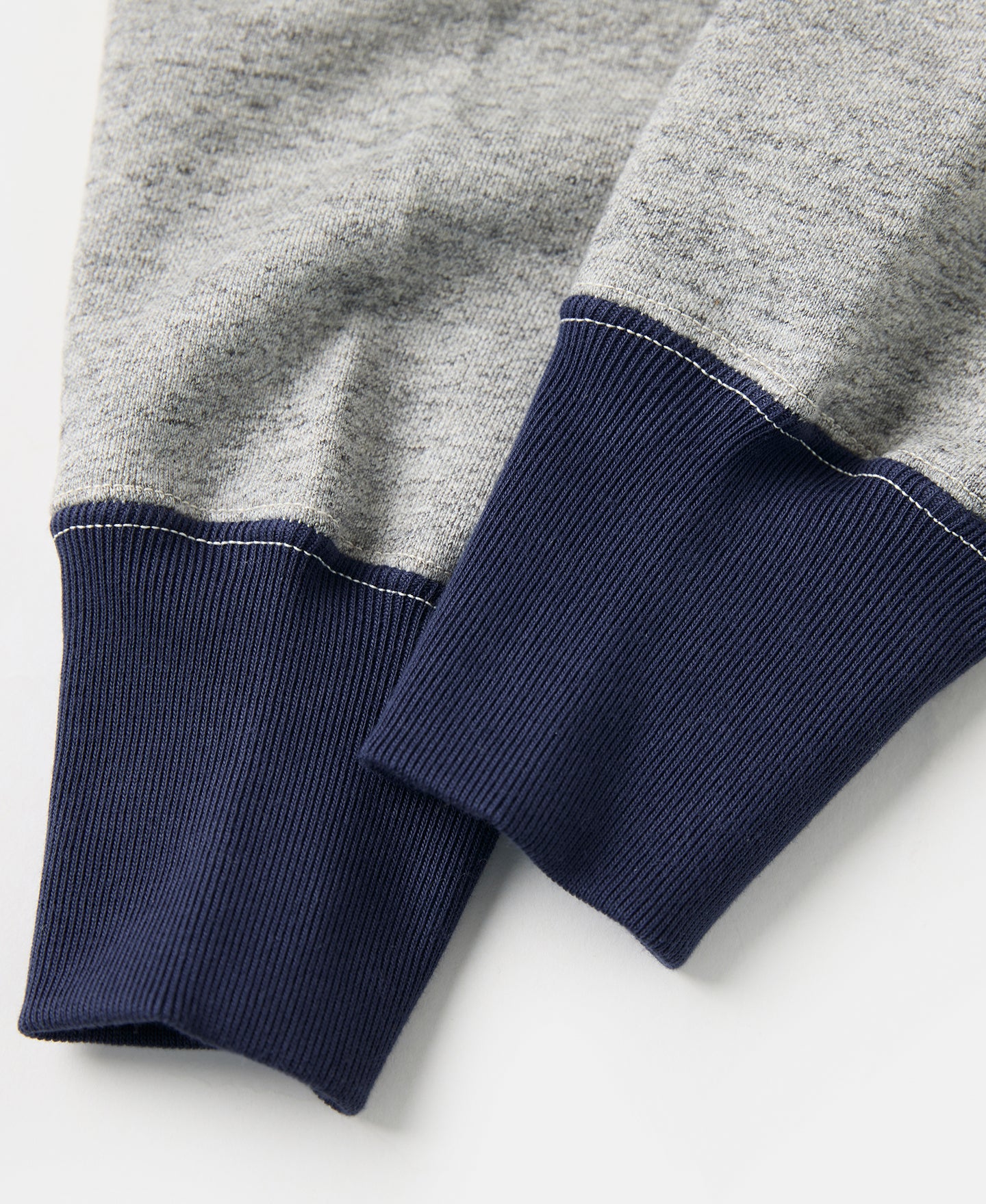 • The "After Hoodie" is a unique style where the hood is sewn onto the neckline after the crewneck sweatshirt is constructed, offering a retro feel. This design includes a double V-gusset at the front and back of the collar for added durability and stretch, as well as a convenient kangaroo pocket at the front. The combination of heather gray and oatmeal color blocking gives it a classic, nostalgic look, while the construction ensures extra warmth and comfort around the neck.