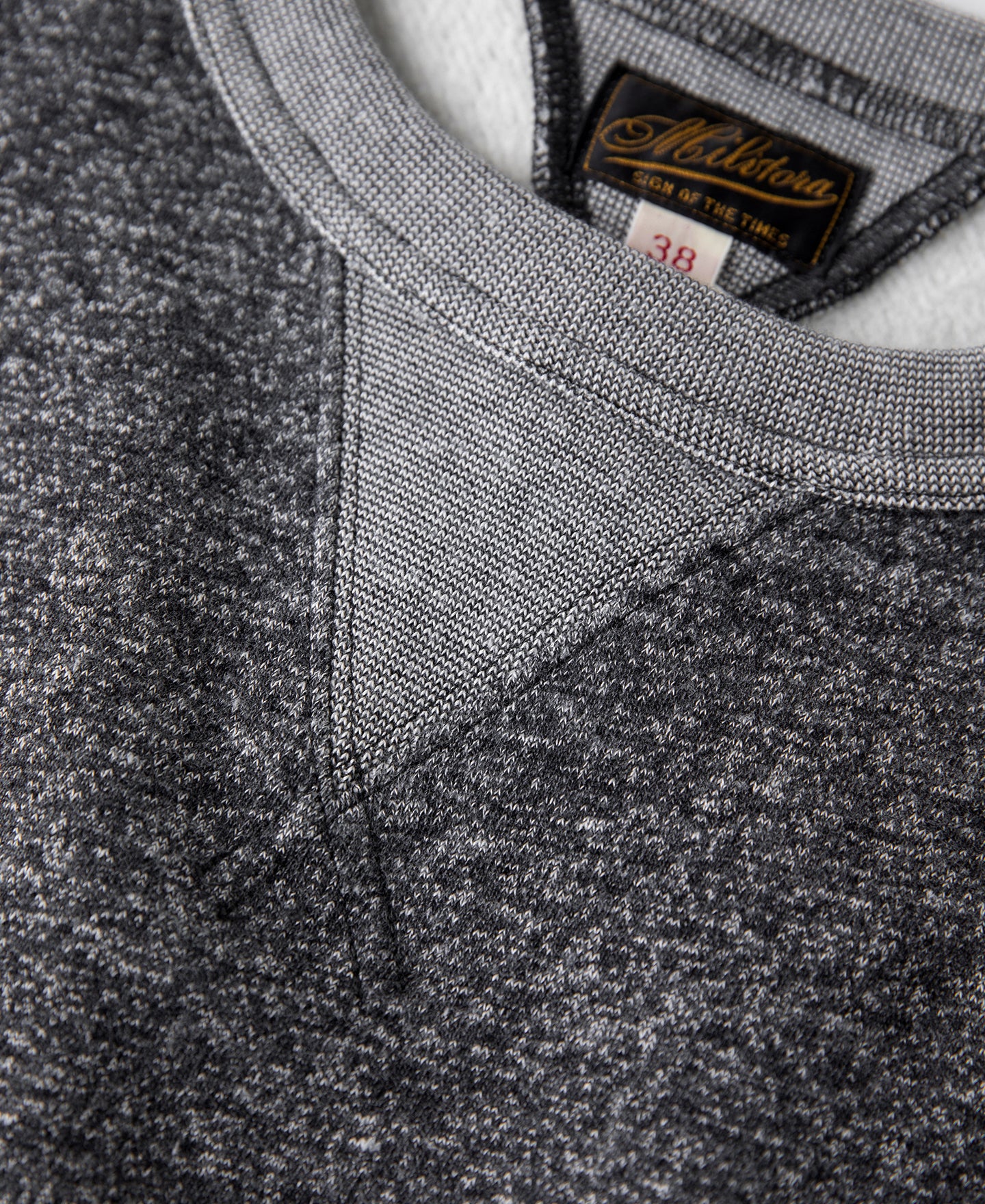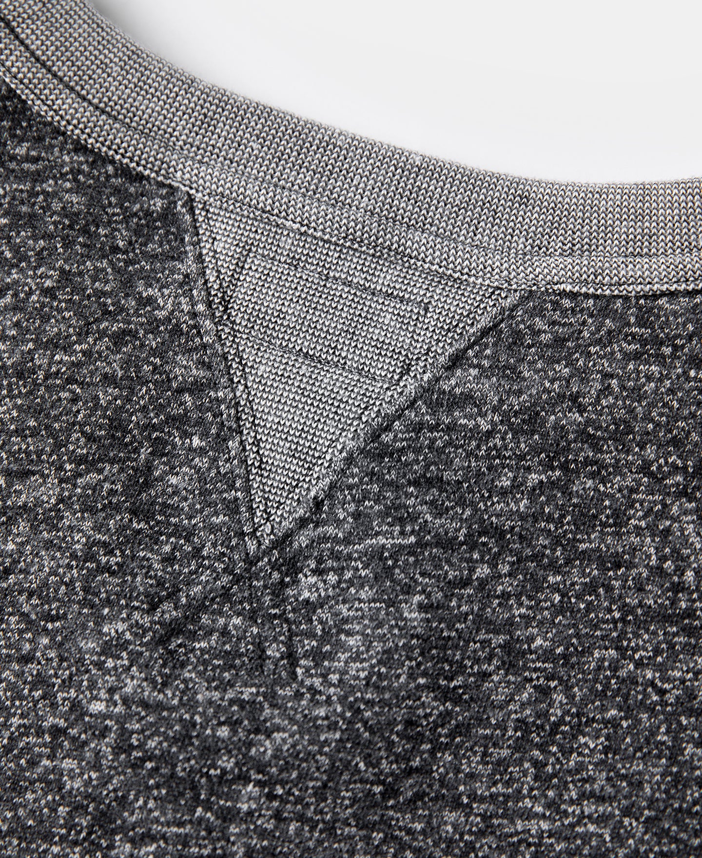 Crafted from substantial gray pure brushed cotton fleece, this sweatshirt offers a regular fit and timeless crewneck silhouette. A subtle V-insert at the collar and contrasting ribbed cuffs and hem add refined vintage detail.