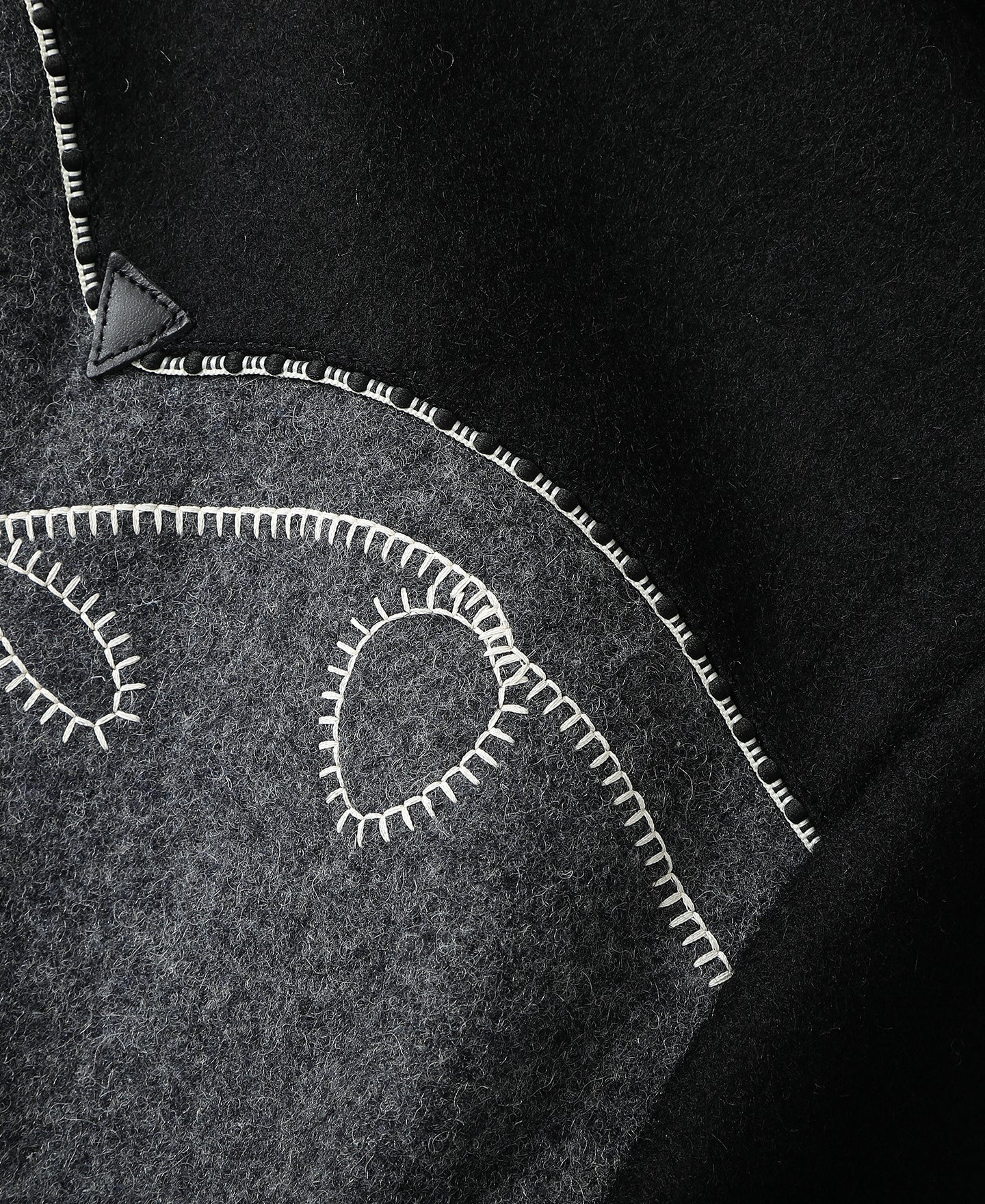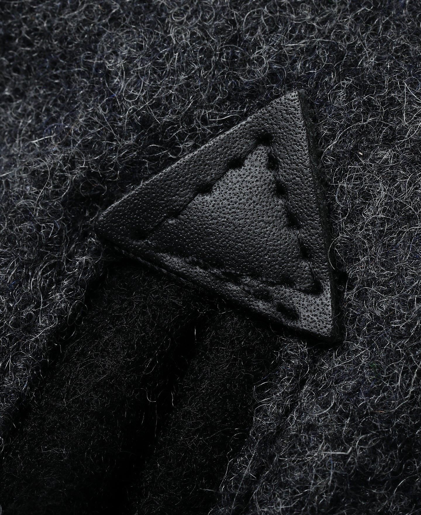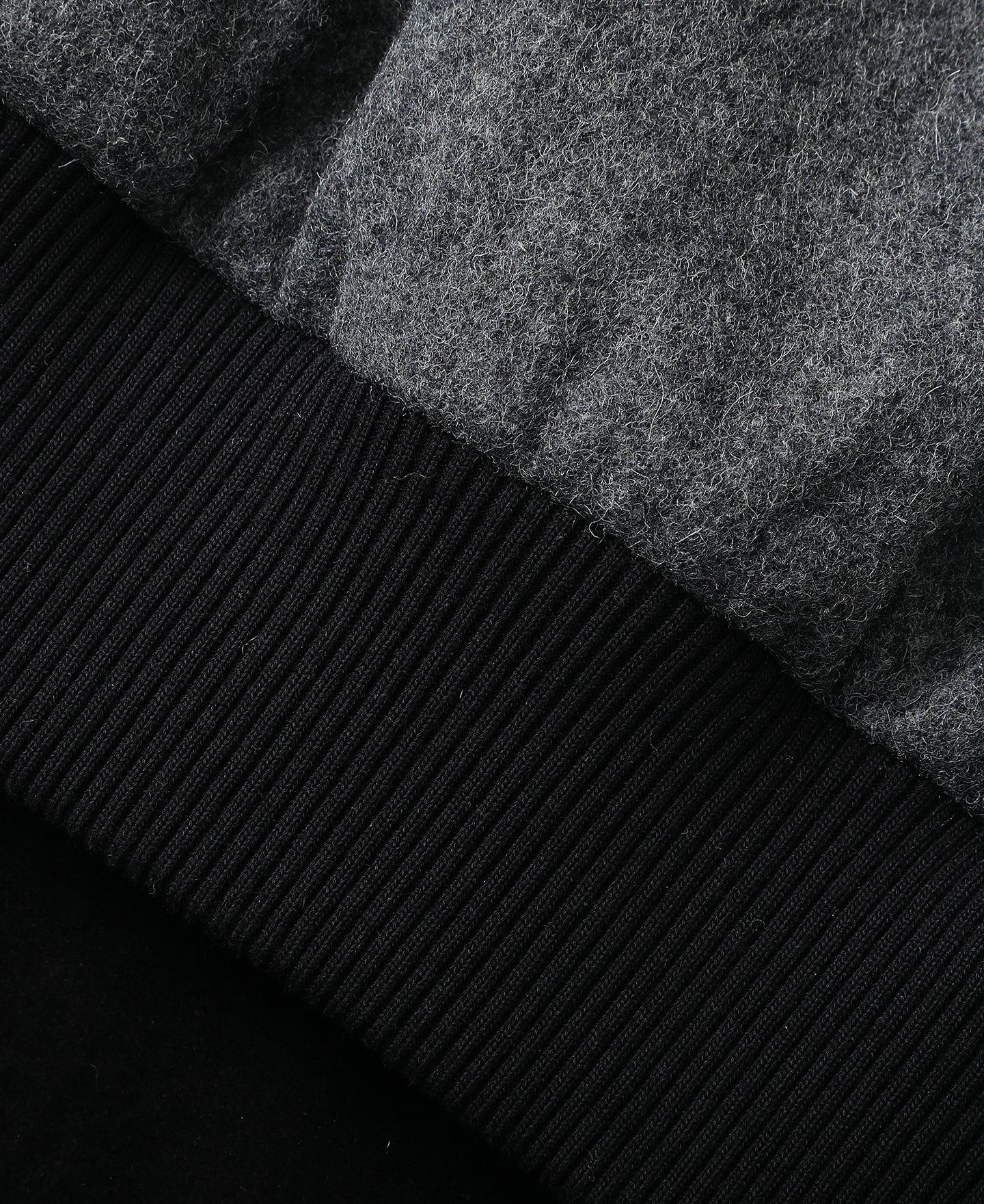 Crafted from a substantial 880g wool-polyester blend in gray and black color-block, it features a luxurious 100% acetate satin lining for a smooth, lustrous interior. This piece offers a refined take on a casual icon, balancing structured warmth.