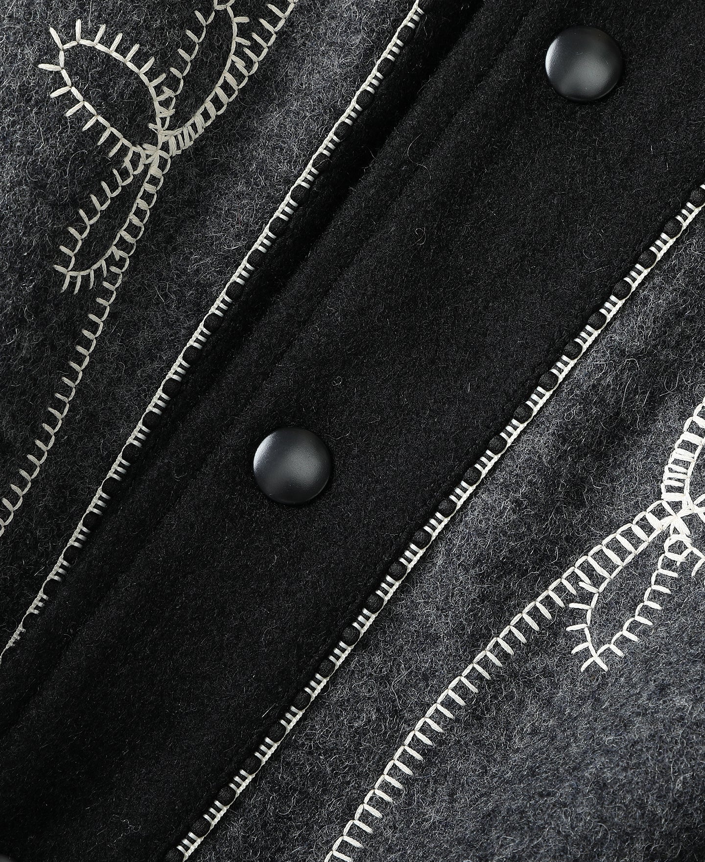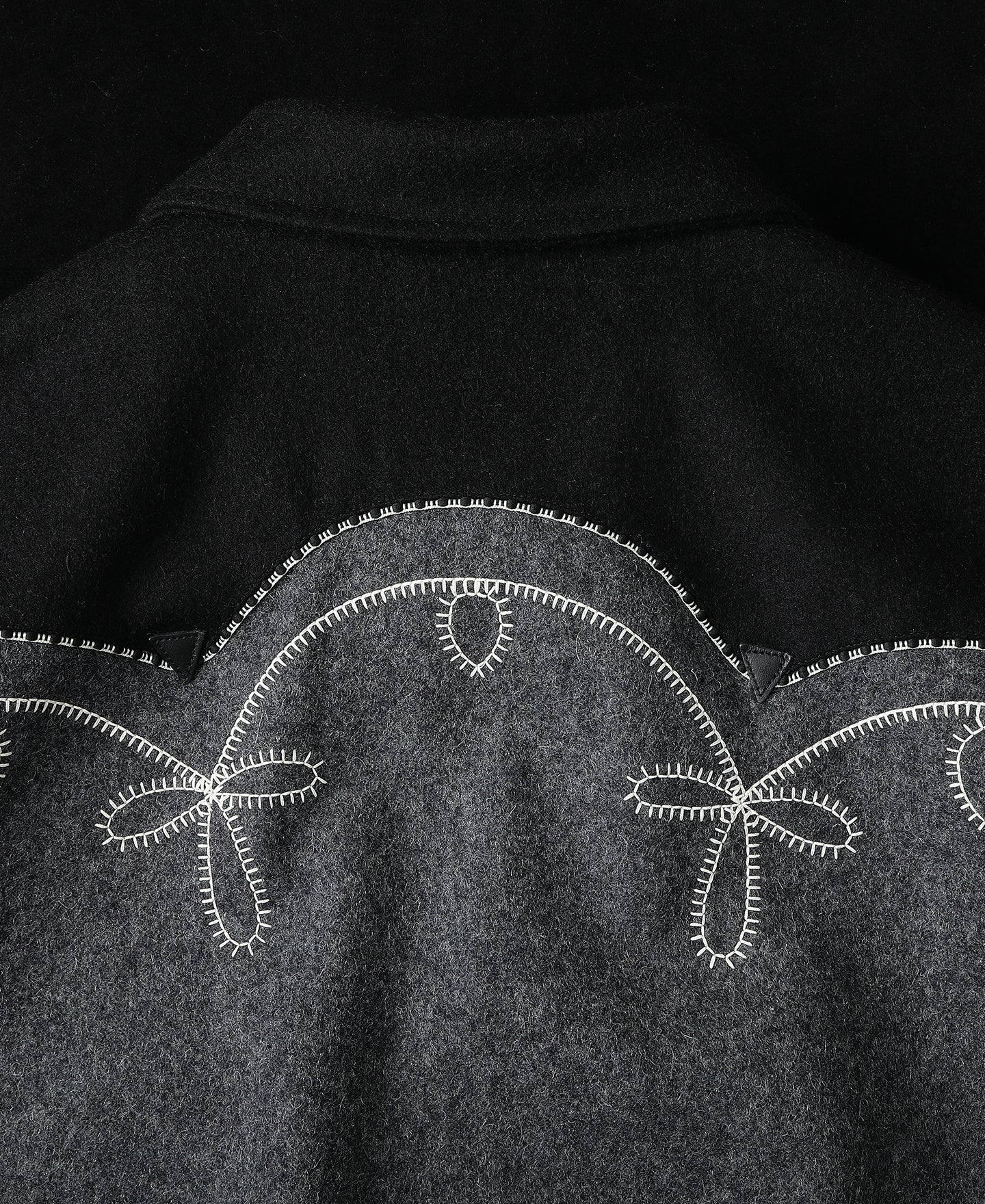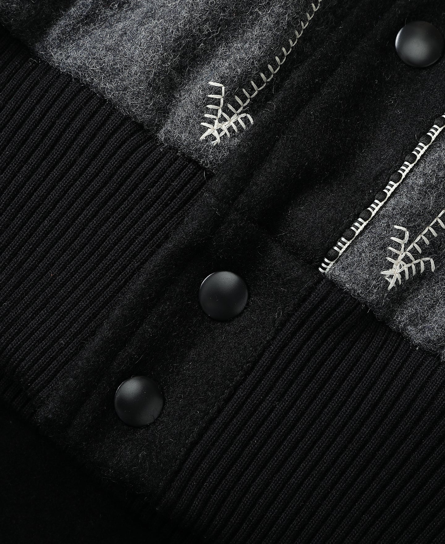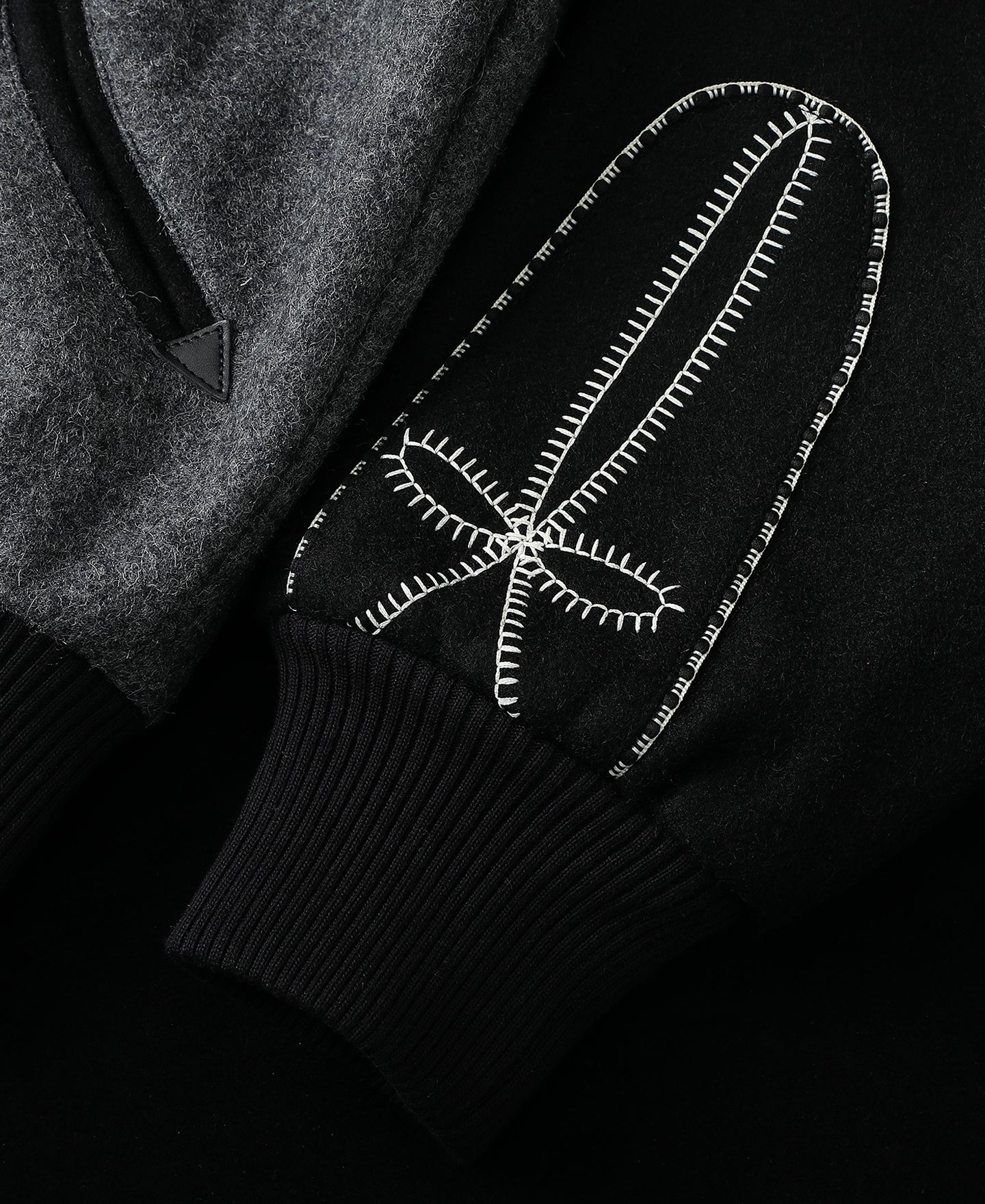 Crafted from a substantial 880g wool-polyester blend in gray and black color-block, it features a luxurious 100% acetate satin lining for a smooth, lustrous interior. This piece offers a refined take on a casual icon, balancing structured warmth.