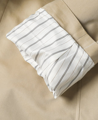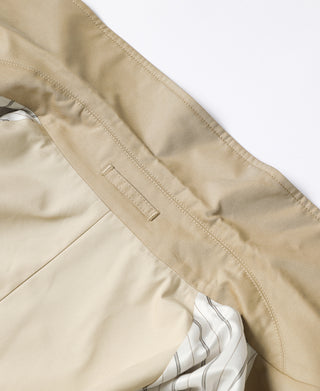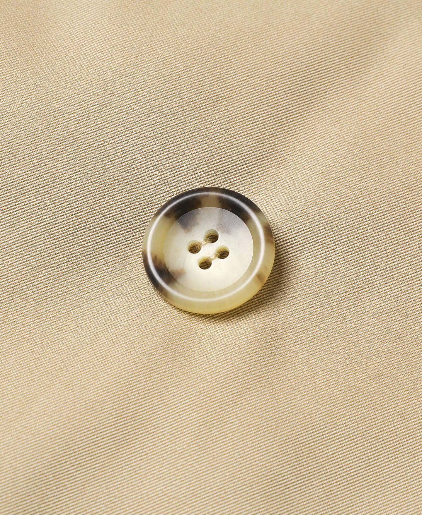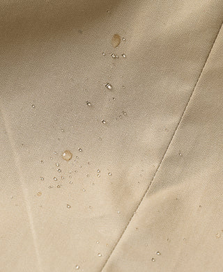 • This classic Balmacaan coat features a relaxed fit that is both lightweight and stylish. It includes a curved support collar with a wind-blocking under-collar flap, leather-covered cuff fastener buckle, a hidden button placket, and a rear vent for added mobility. Crafted from custom-woven, high-density two-tone Tamamushi twill fabric, it’s treated with an Archroma coating, offering protection against splashes and light rain. A timeless choice for everyday wear.